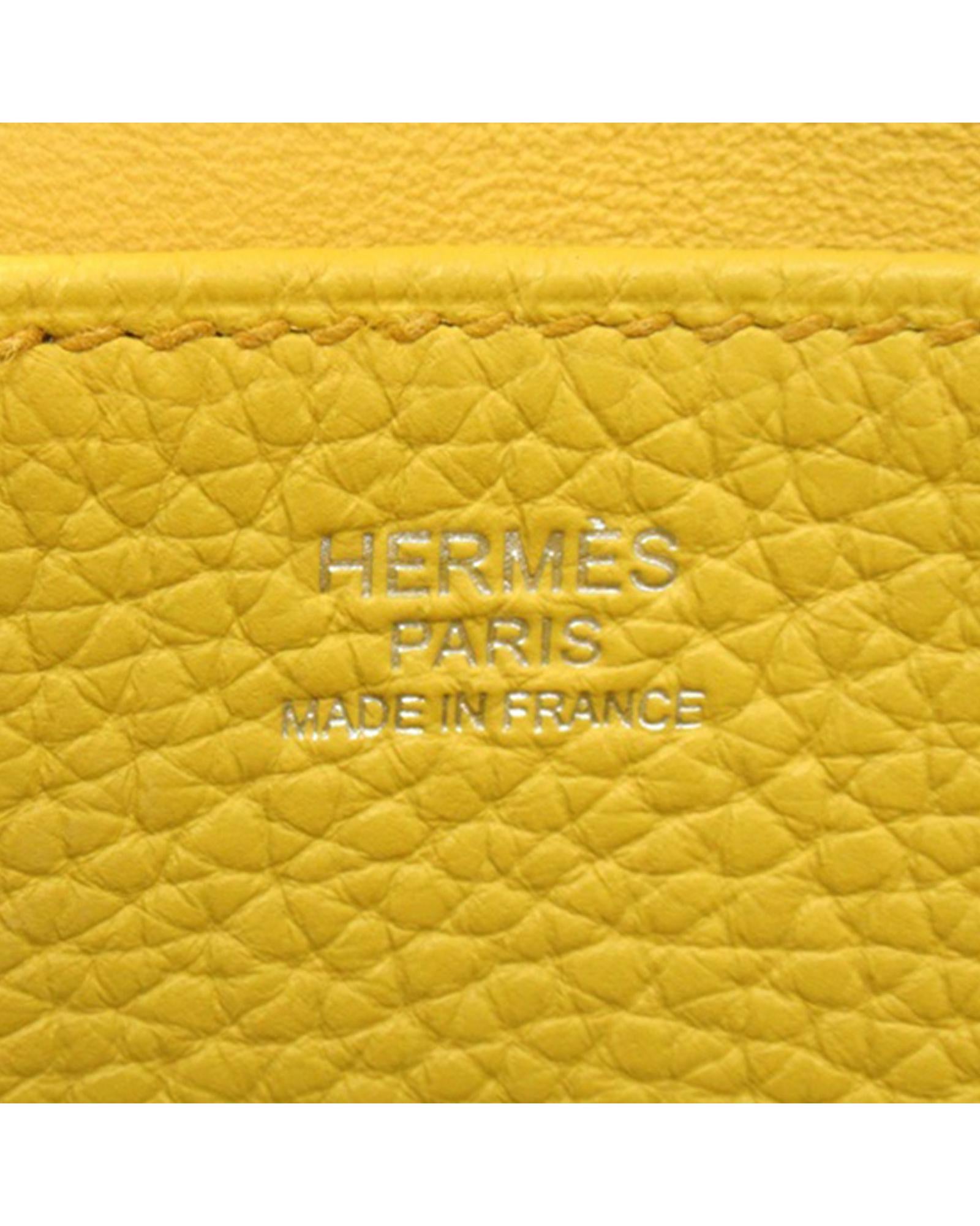 The Halzan 25 features a Taurillon Clemence leather body flat leather handles a detachable flat leather shoulder strap an open top exterior front and back slip pockets and an interior slip pocket.Brand: Hermes