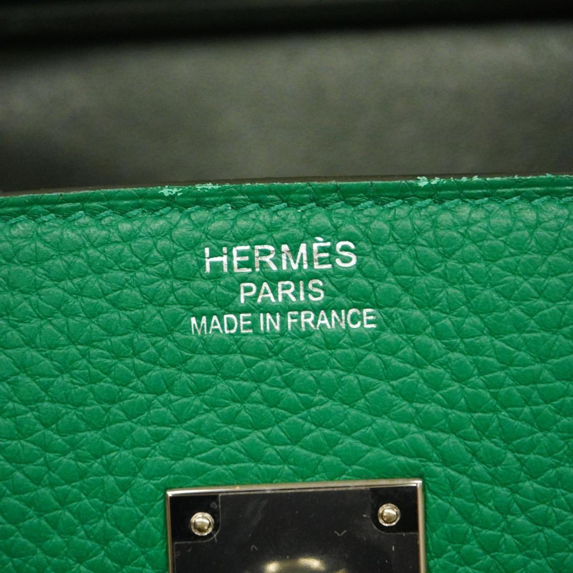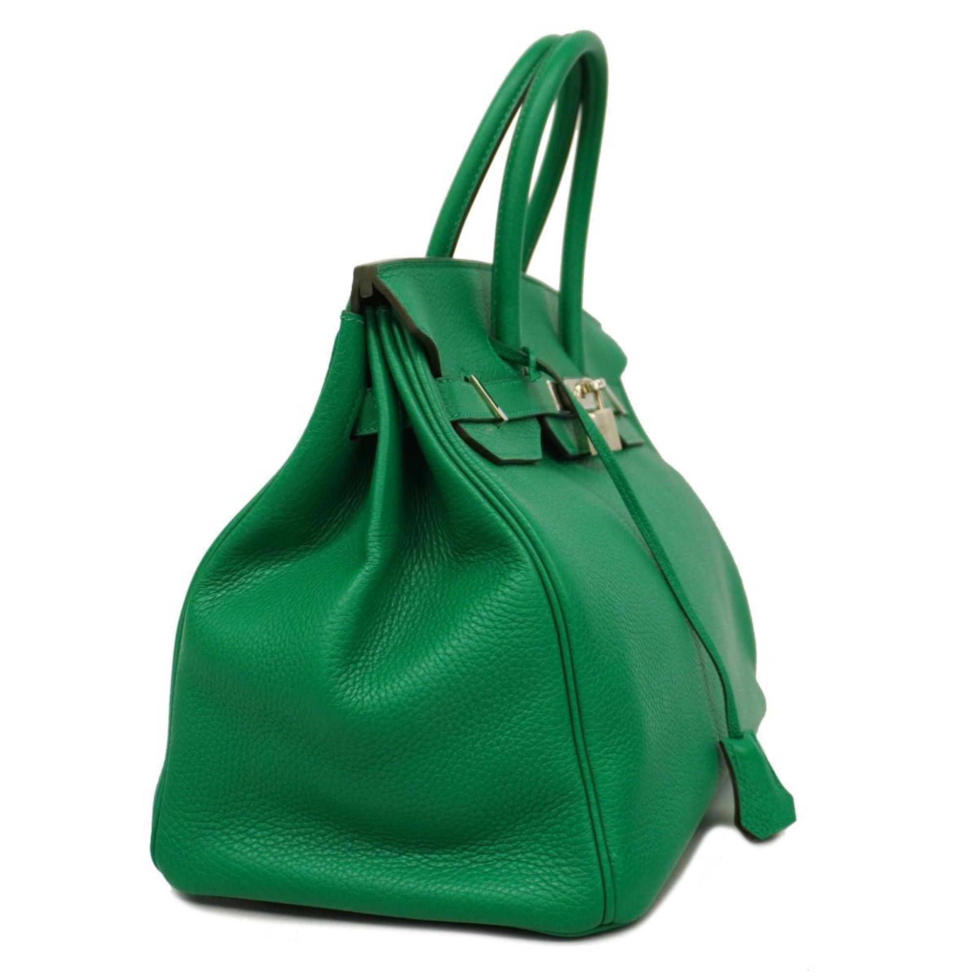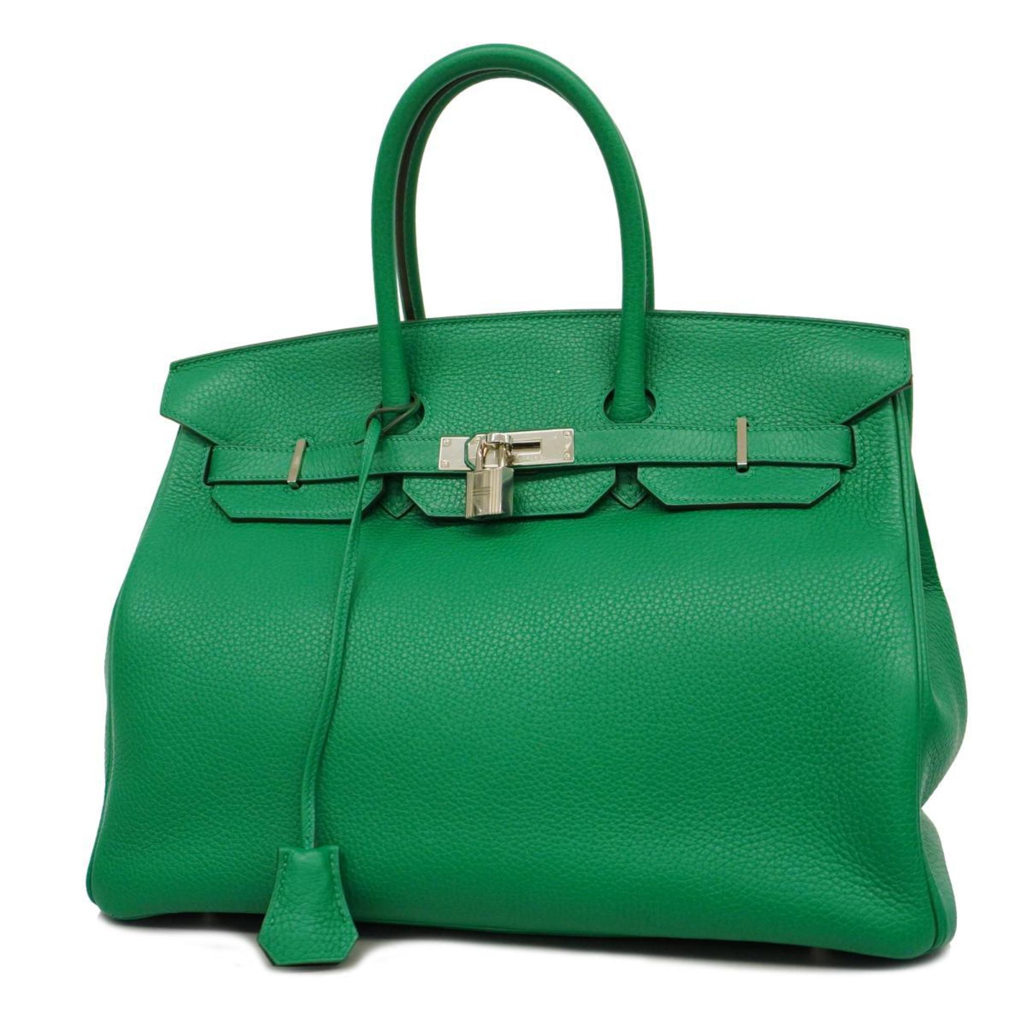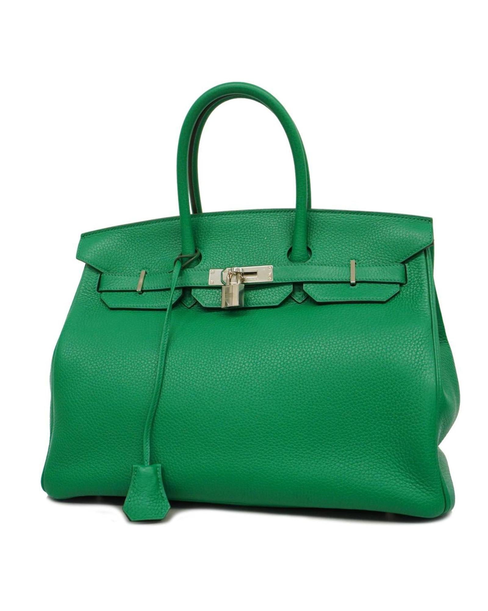 The handbag Birkin 35 of the famous brand Hermes made of leather an elegant and timeless design is a fashion accessory suitable for women. With its green color is its high quality material this handbag is both functional and aesthetic.