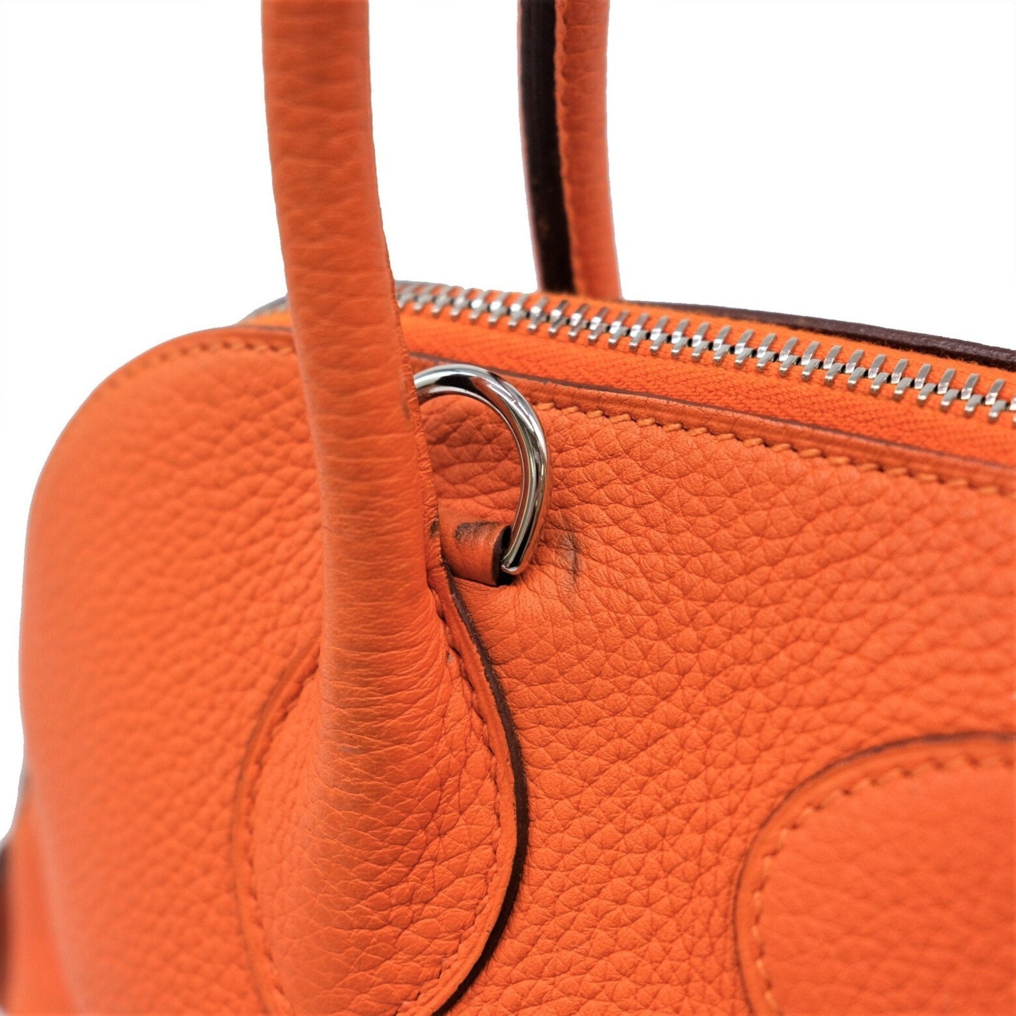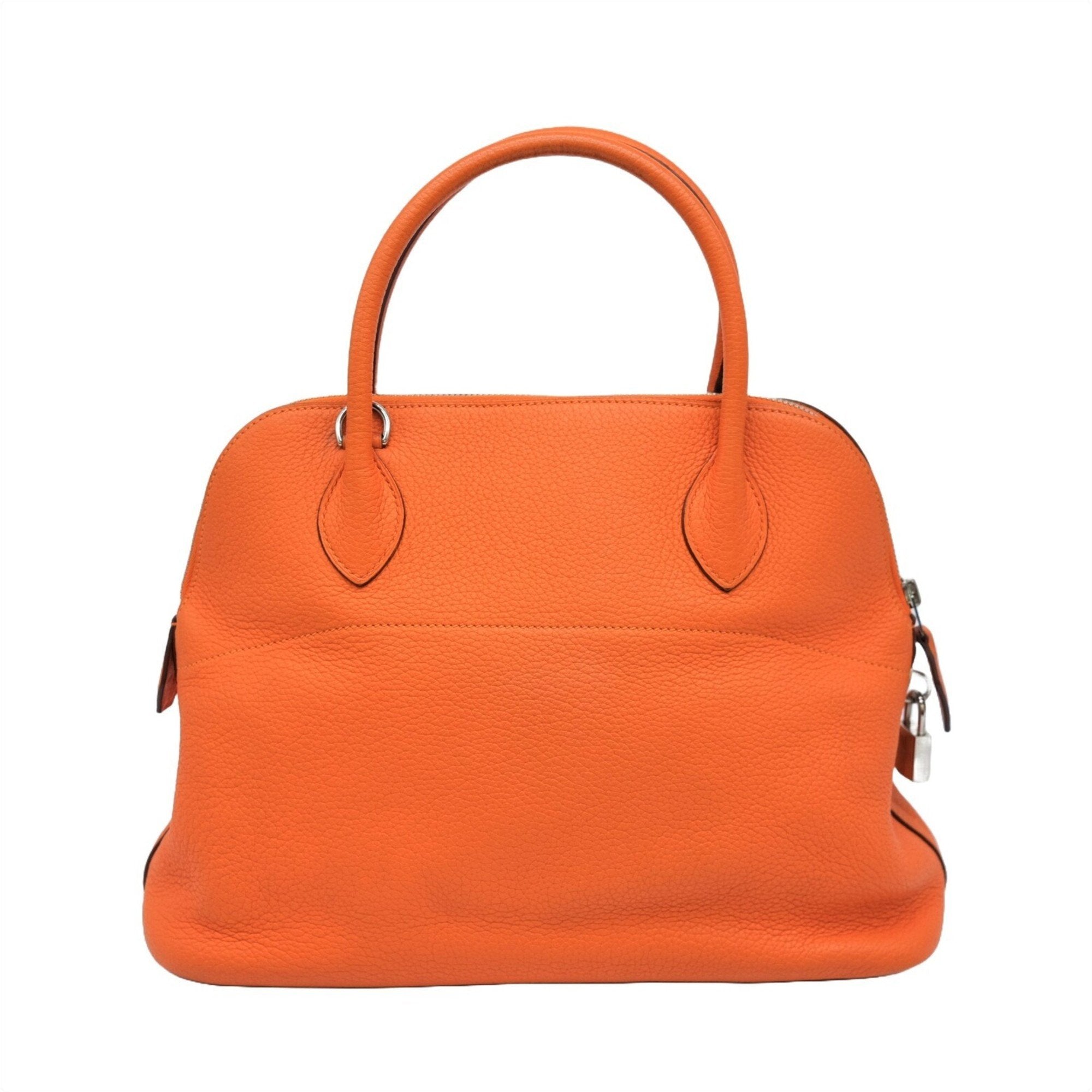 The Hermes Bolide bag is a luxury accessory designed for women. Made from high-quality Clemence taurillon leather this bag embodies the elegance and refinement of the Hermes brand. It can be carried by hand or over the shoulder offering versatility and style. Its “Feu” color a bright orange characteristic of the Hermes house gives it a touch of sophistication and boldness.