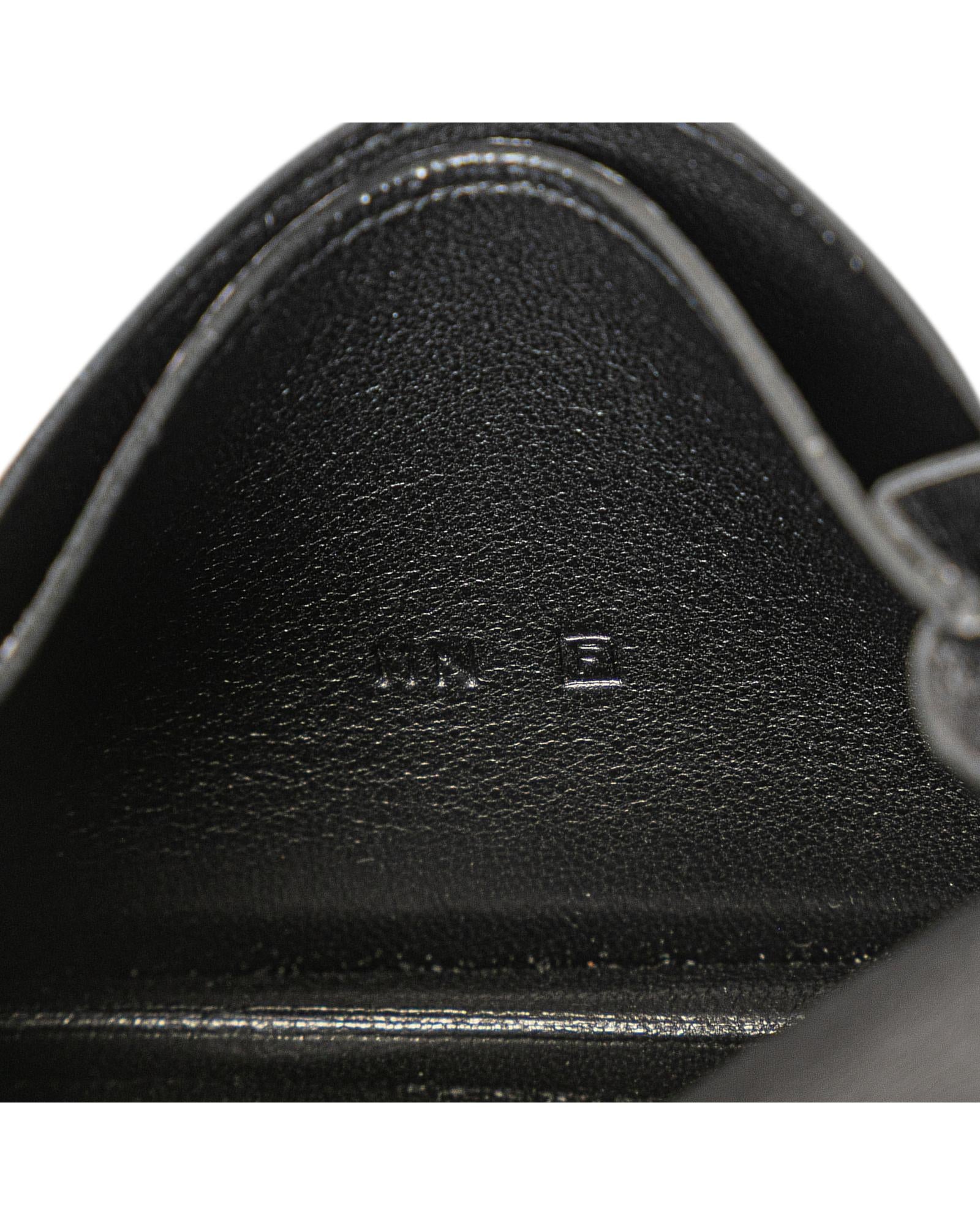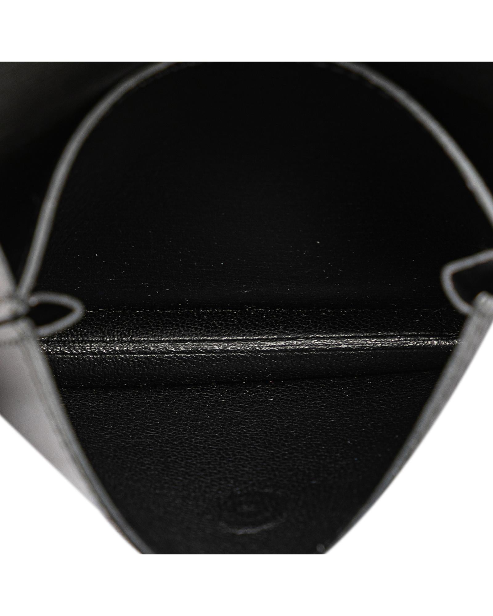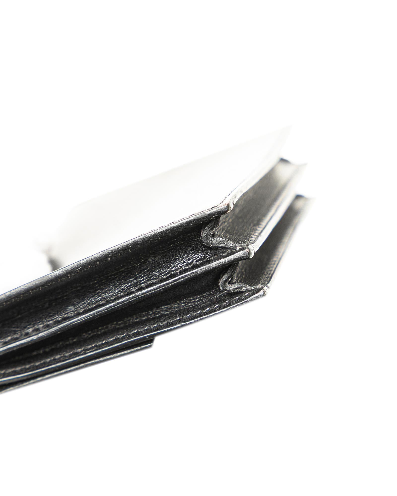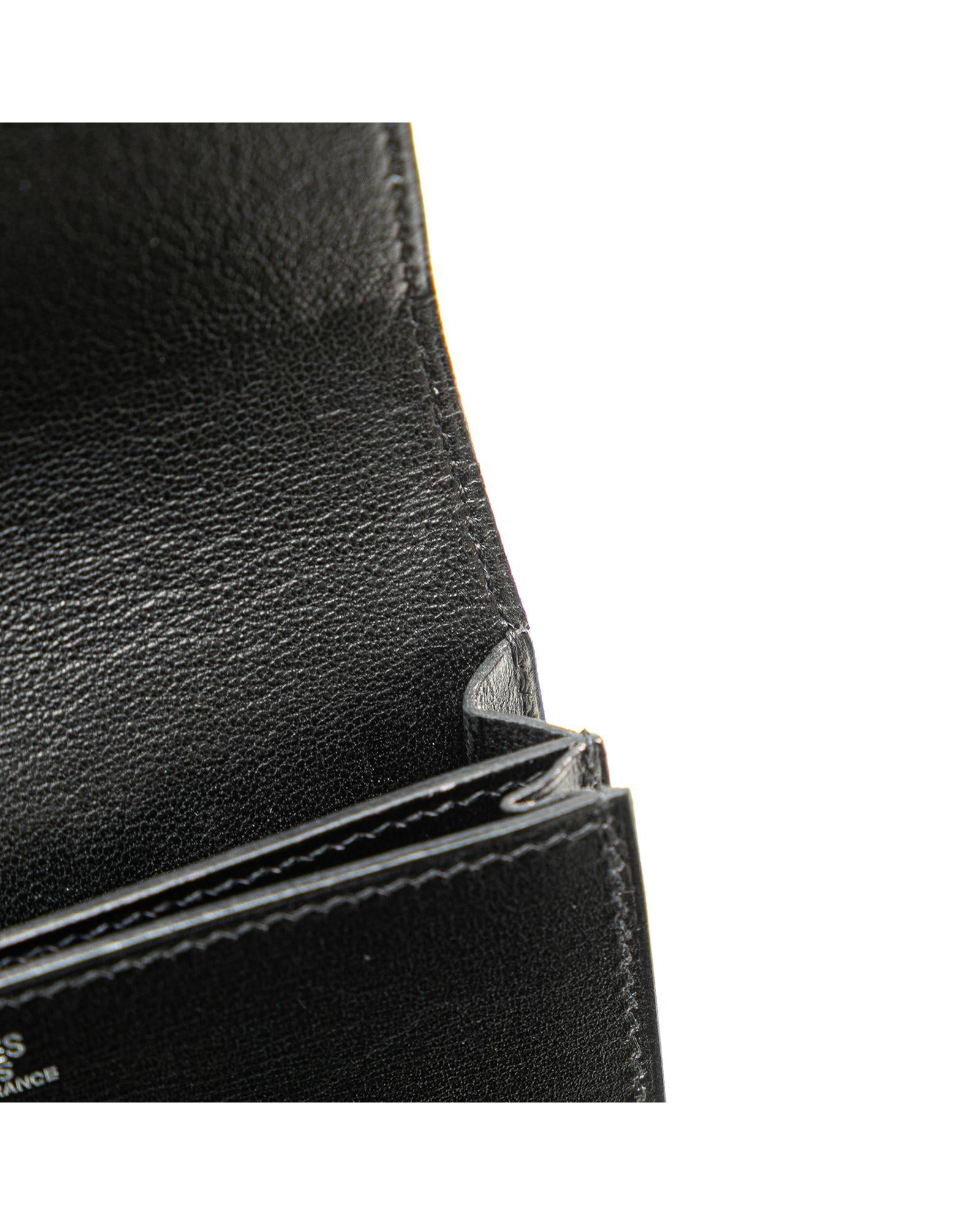 This card holder features a leather body a front flap with snap closure and interior slip compartments