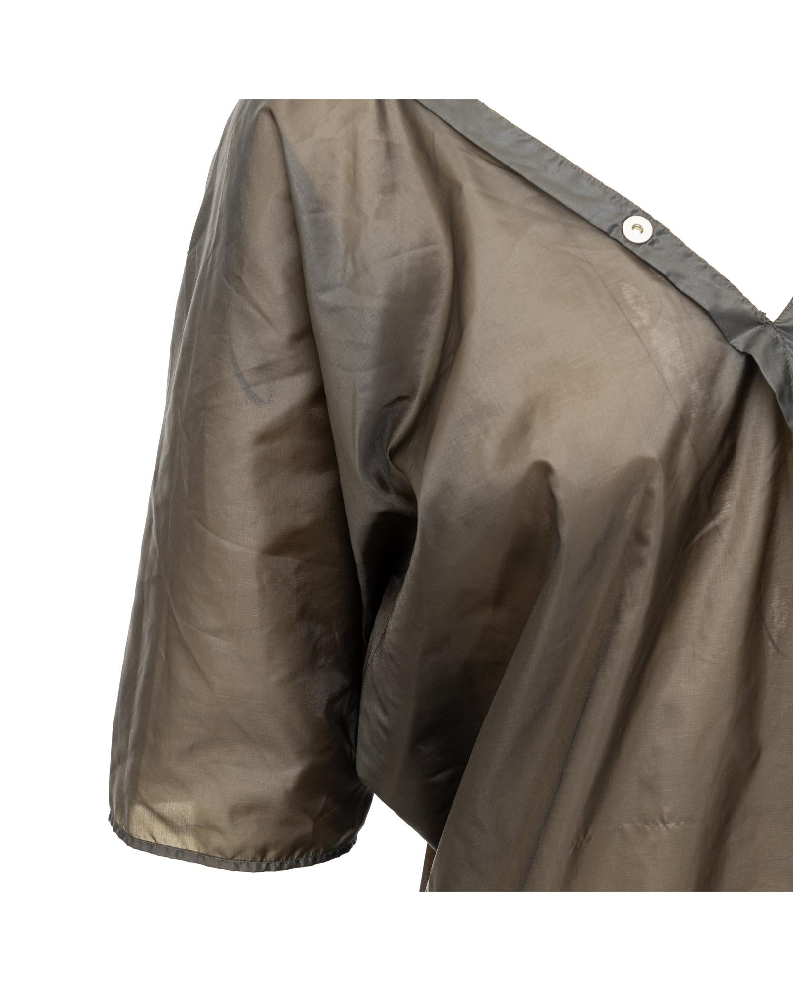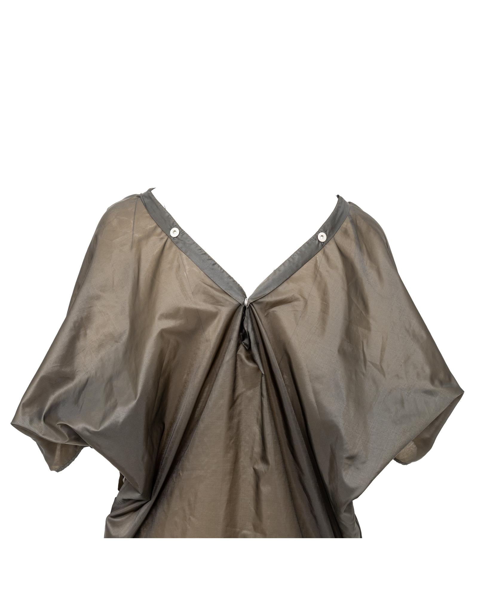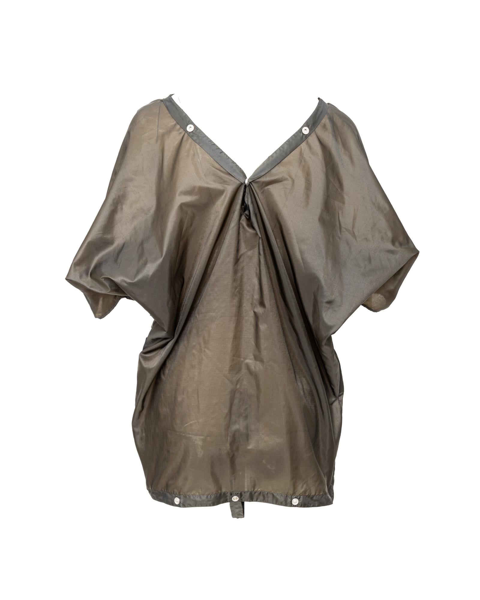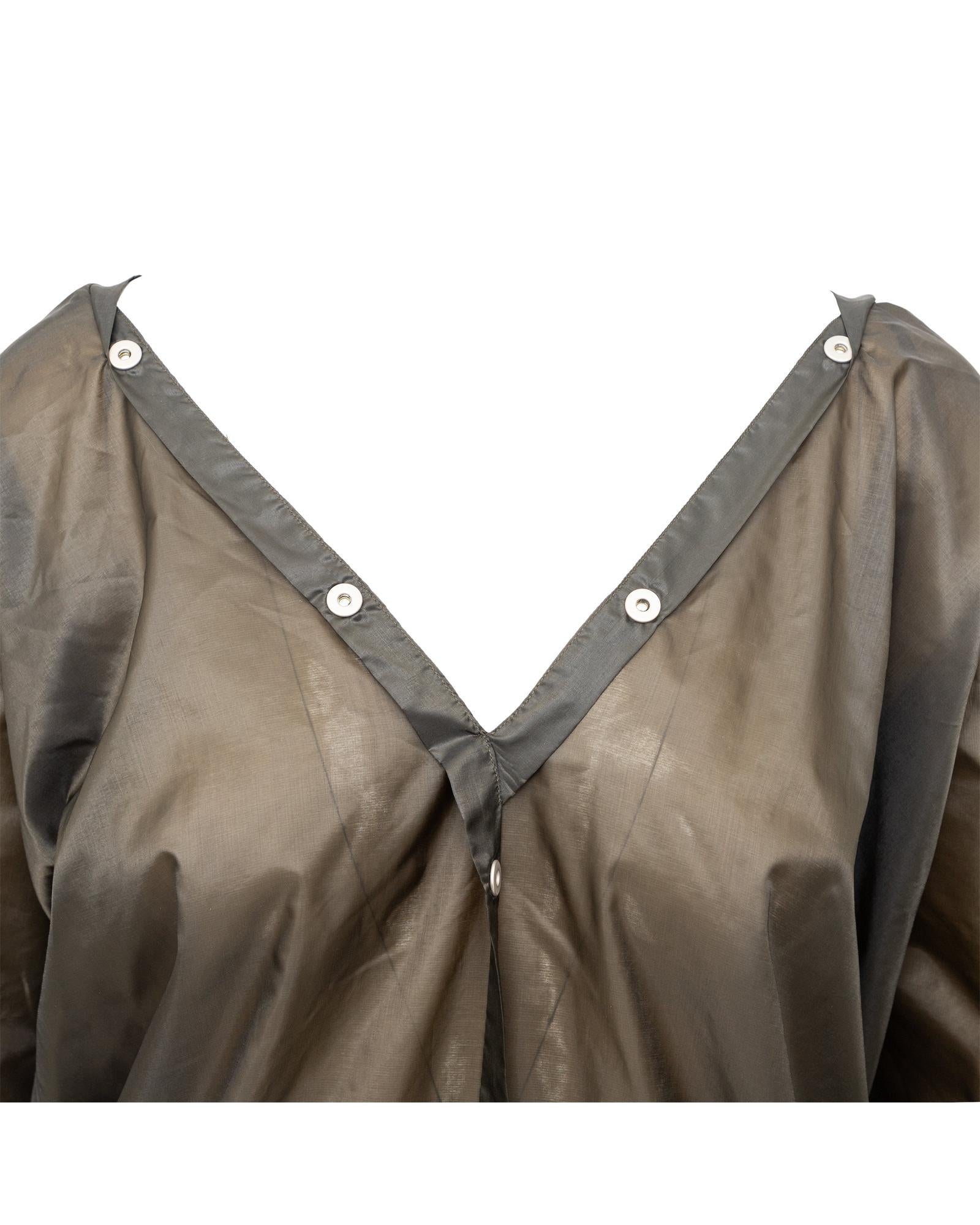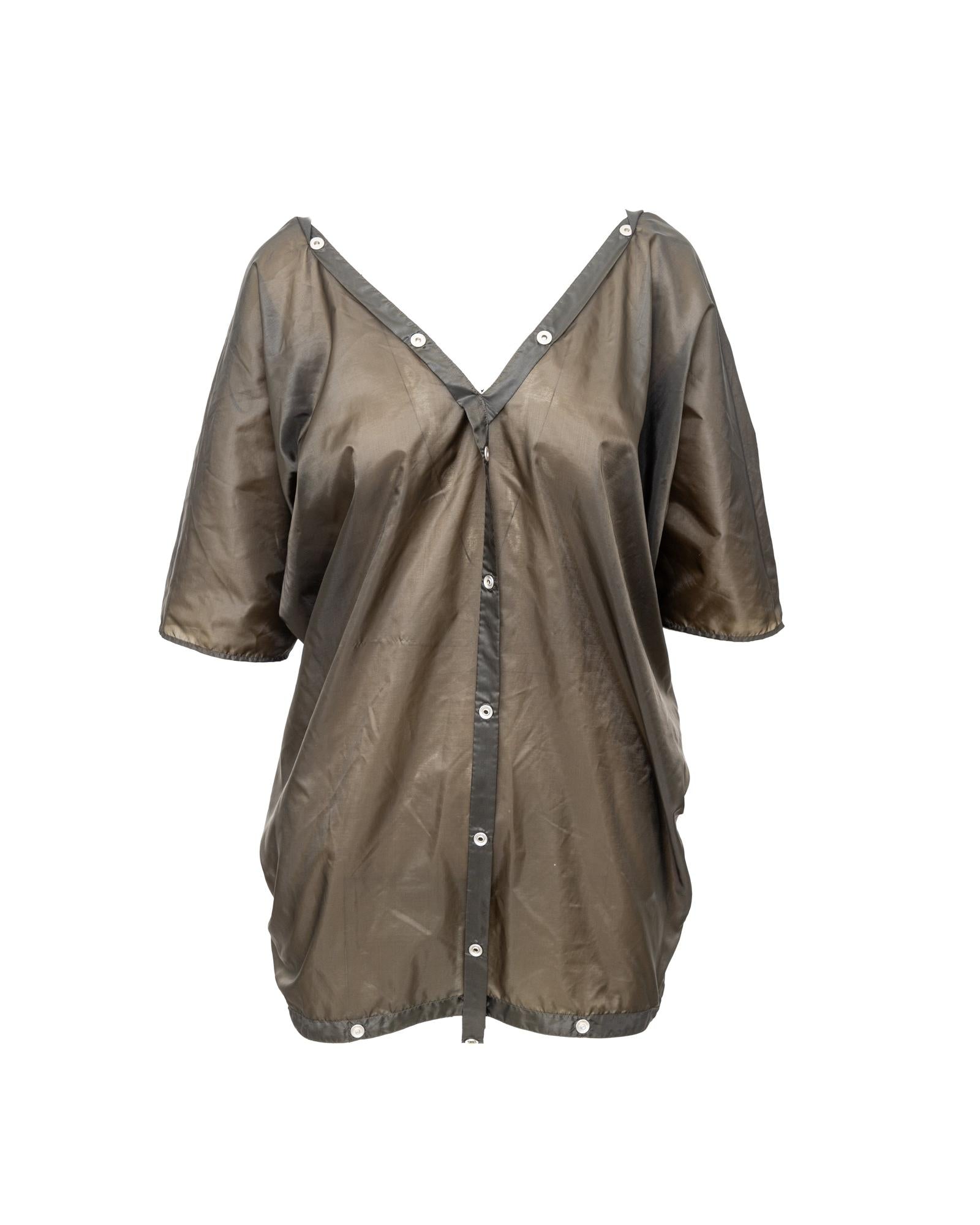 Semi-Sheer Nylon V-Neck Top with Eyelets and Snap Buttons