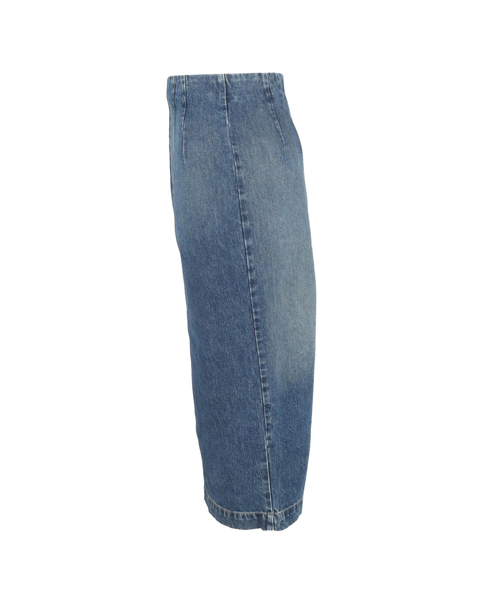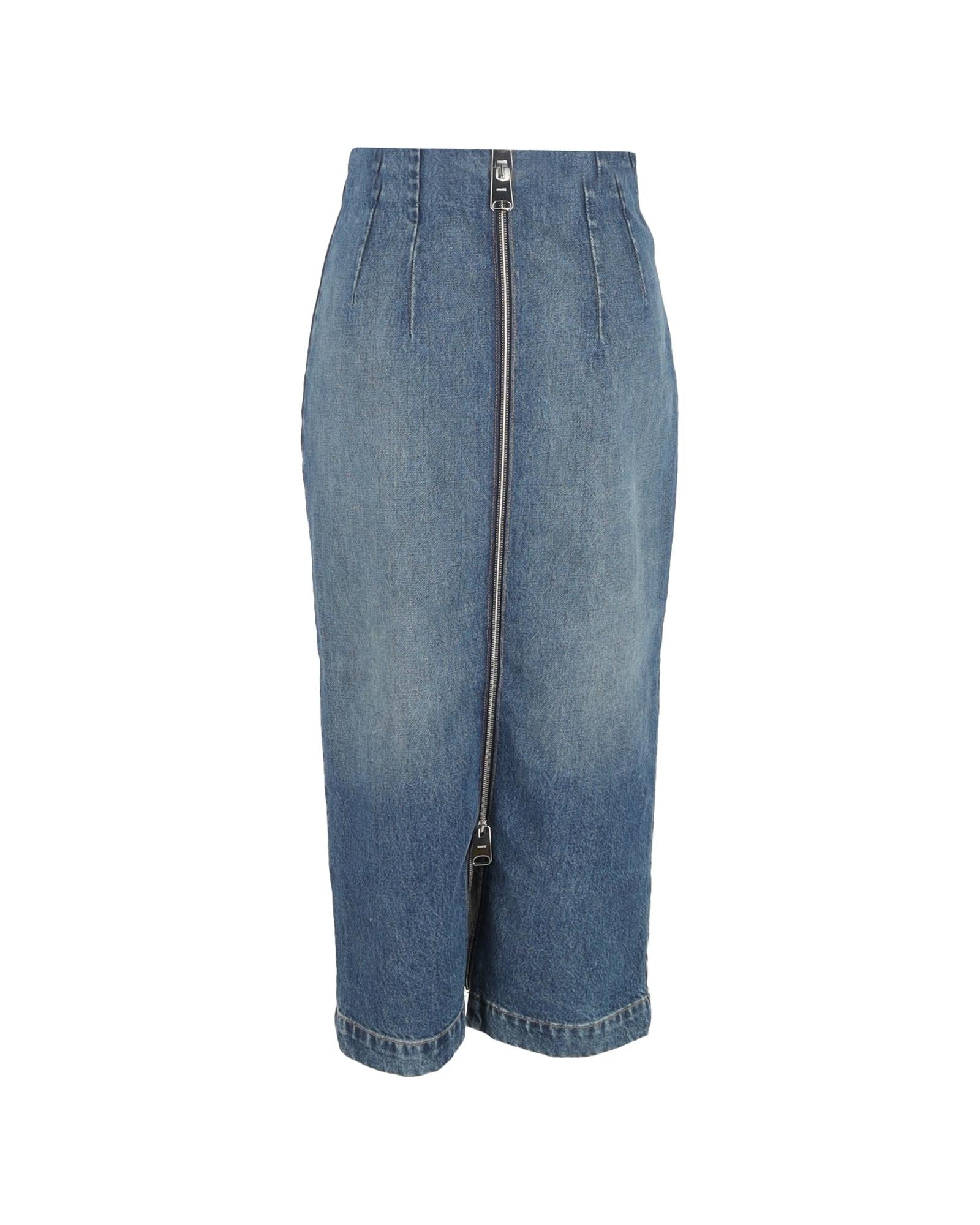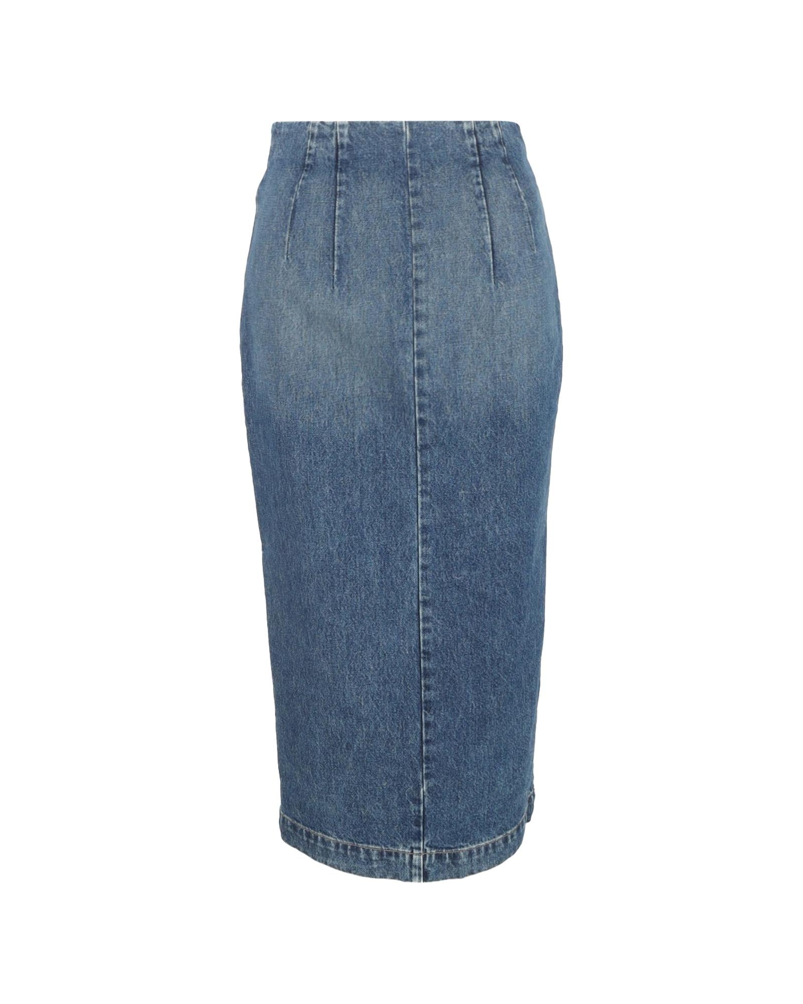 • Khaite The Ruly Zipped Midi Pencil Skirt in Blue Cotton Denim