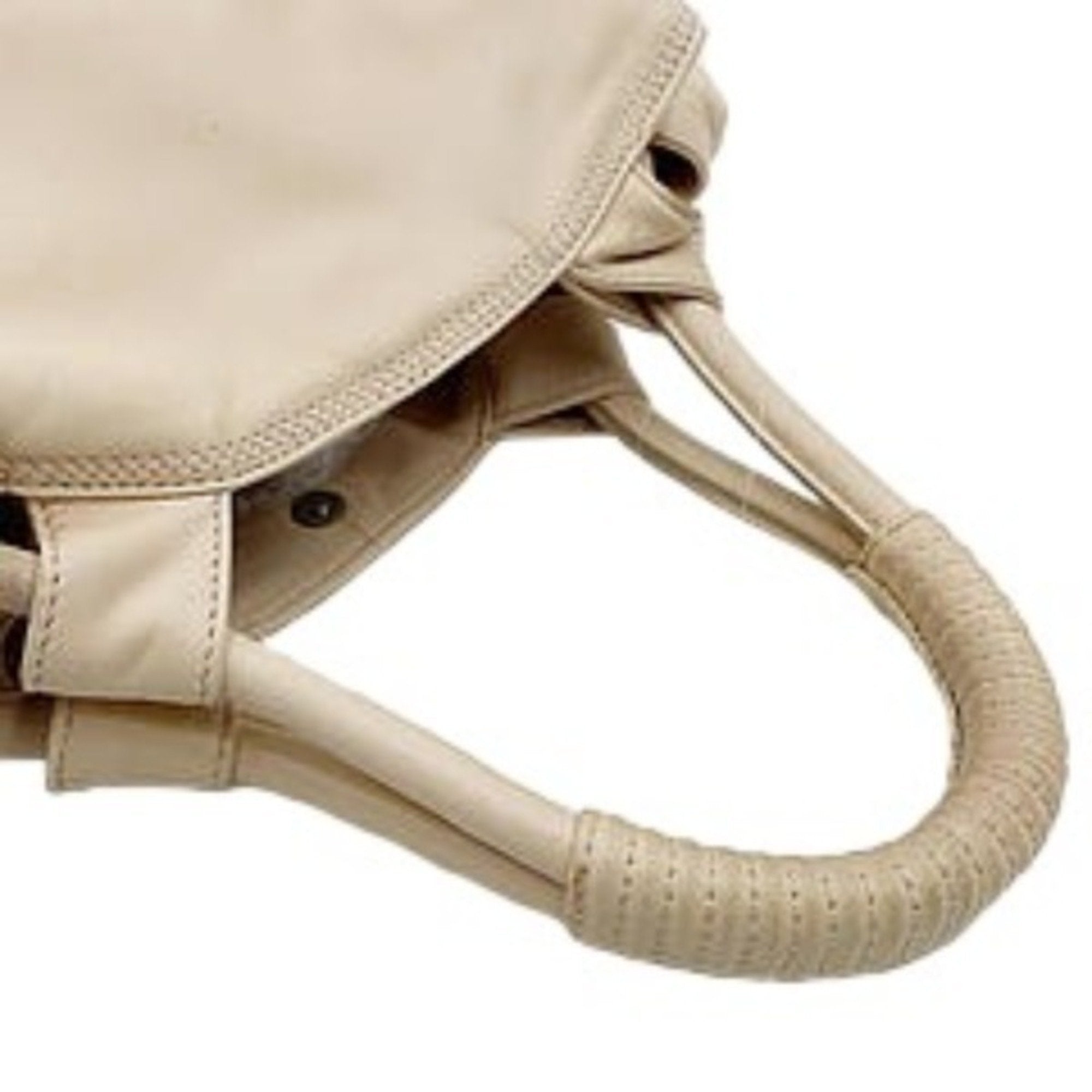 Elegant Beige Leather Bag with Dust Bag by a Renowned Luxury Brand