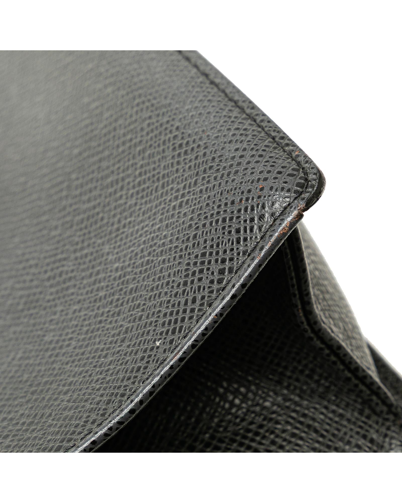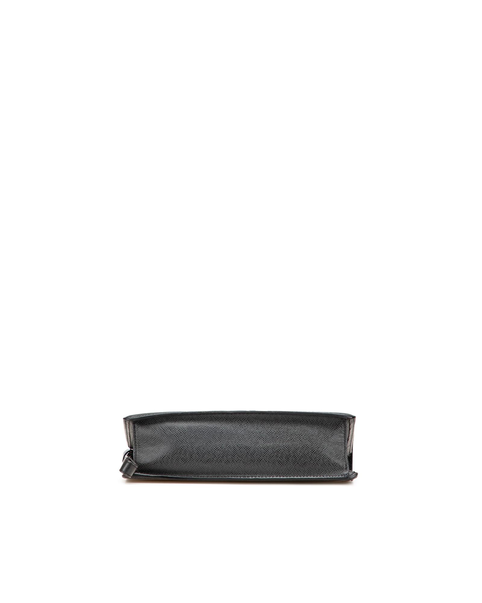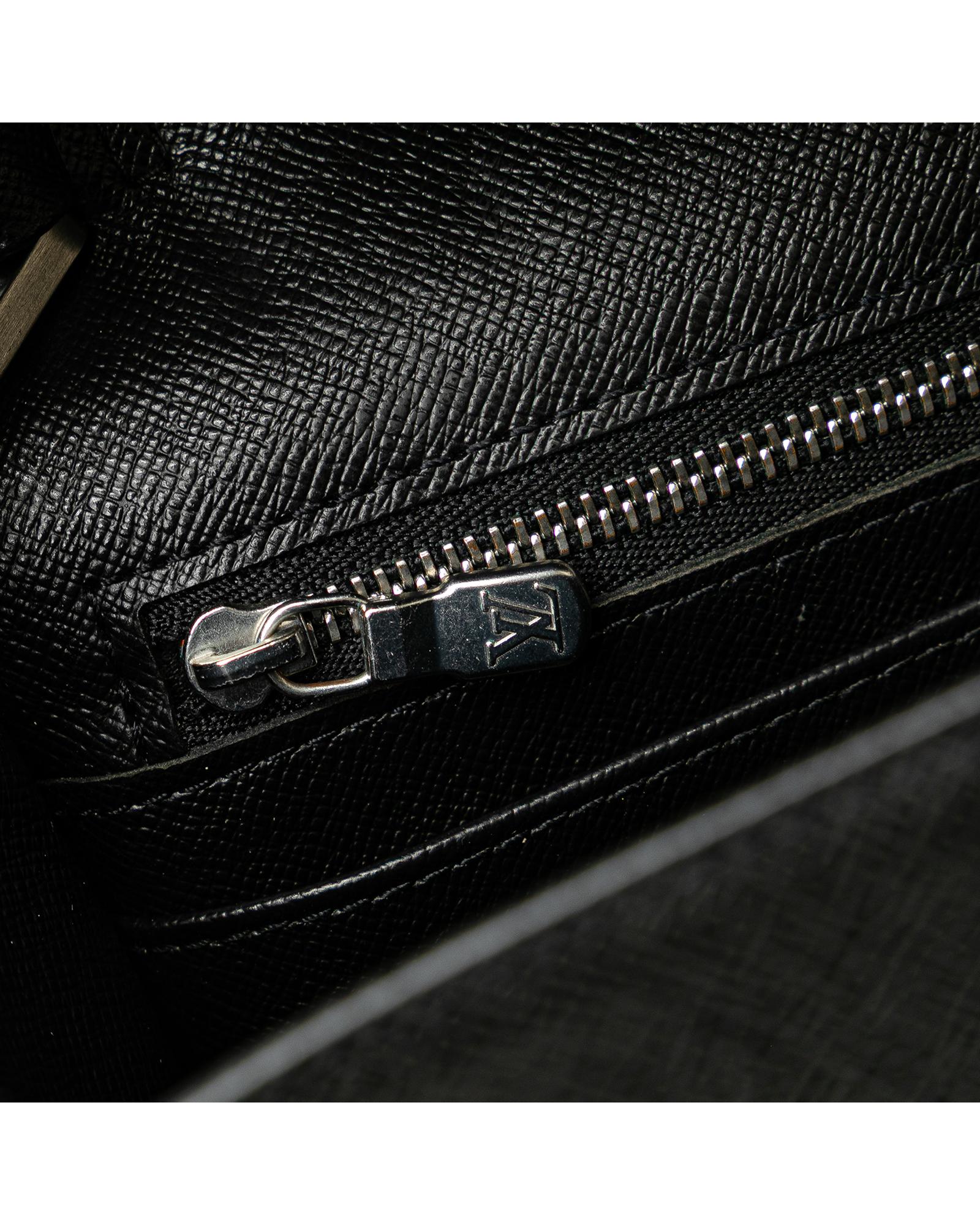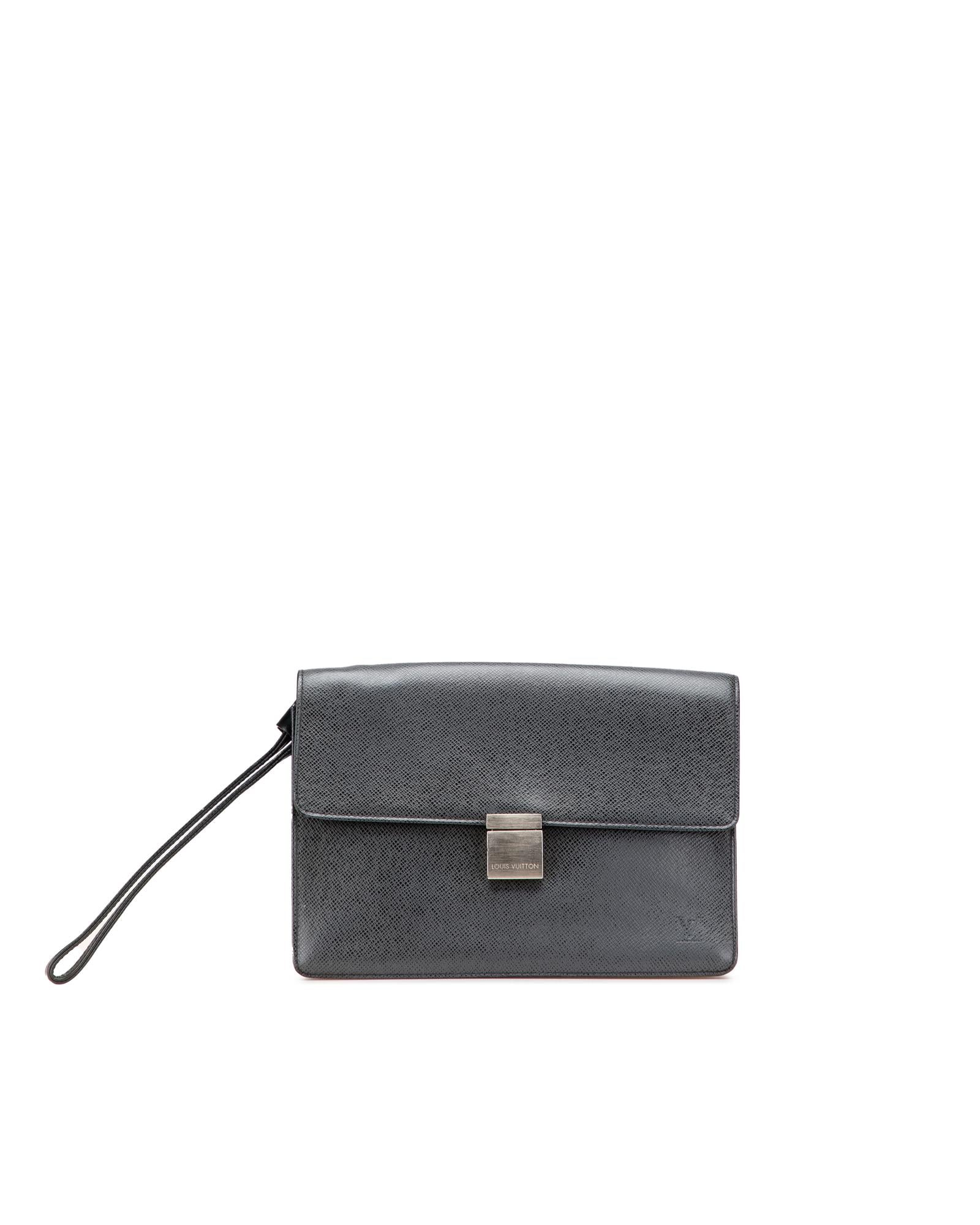 The Selenga features a taiga leather body a flat leather wrist strap a front flap with a push lock closure an exterior back slip pocket and an interior zip and slip pockets.Brand: Louis Vuitton