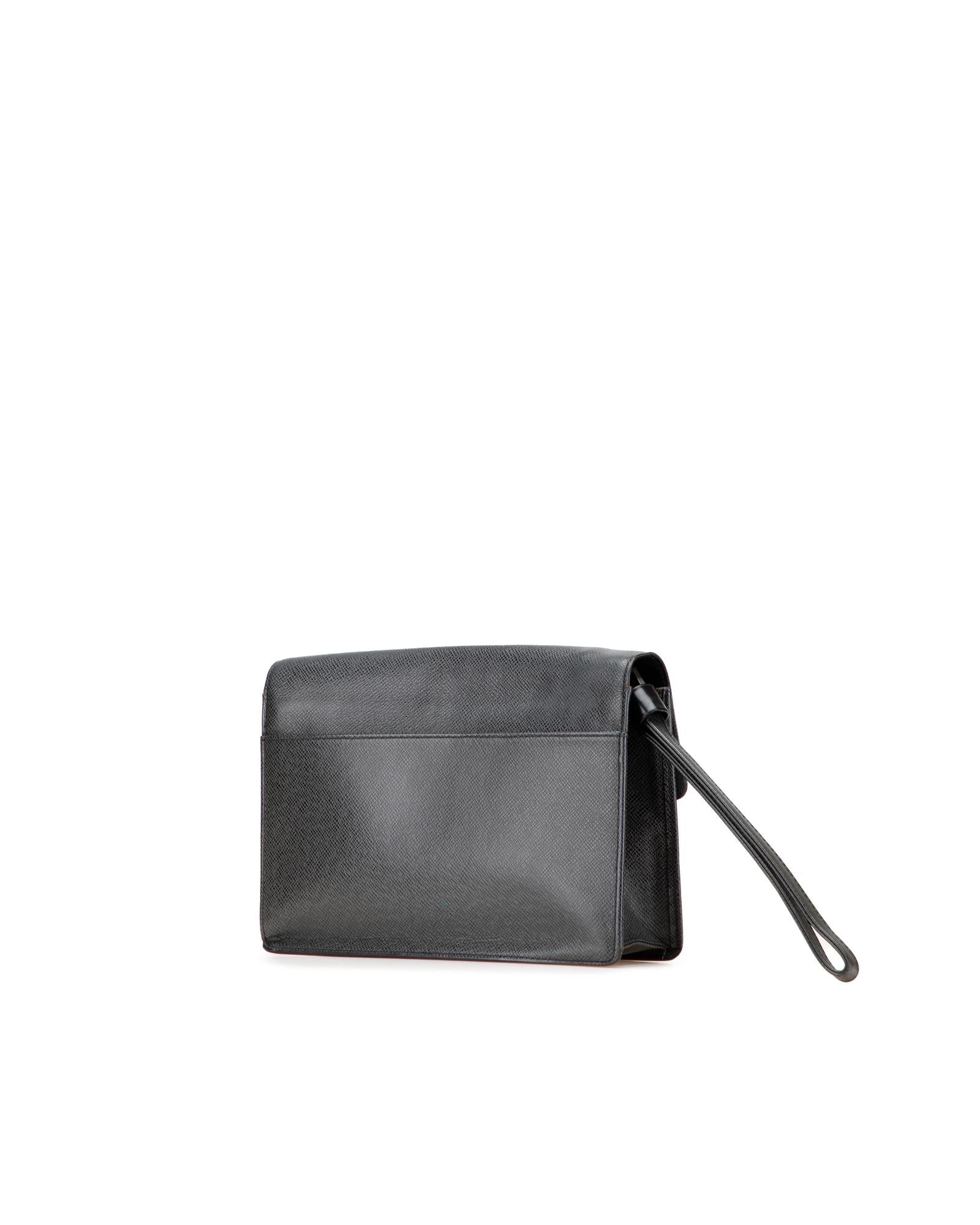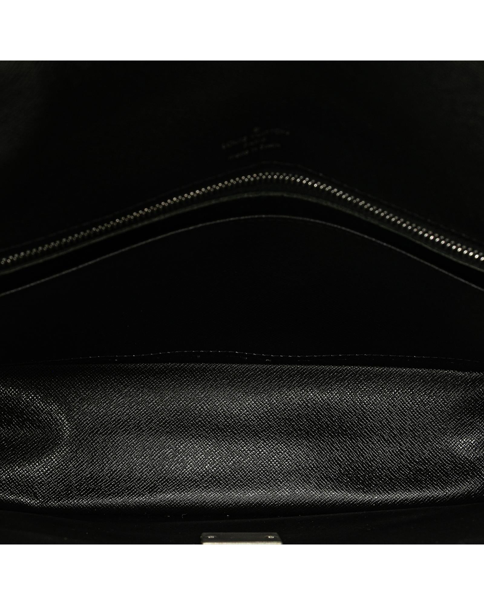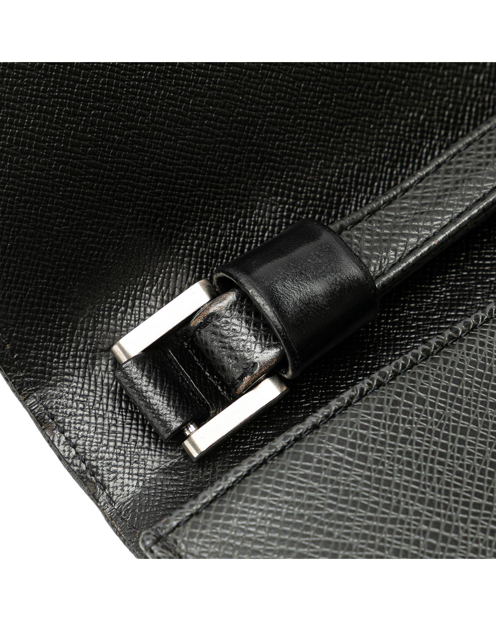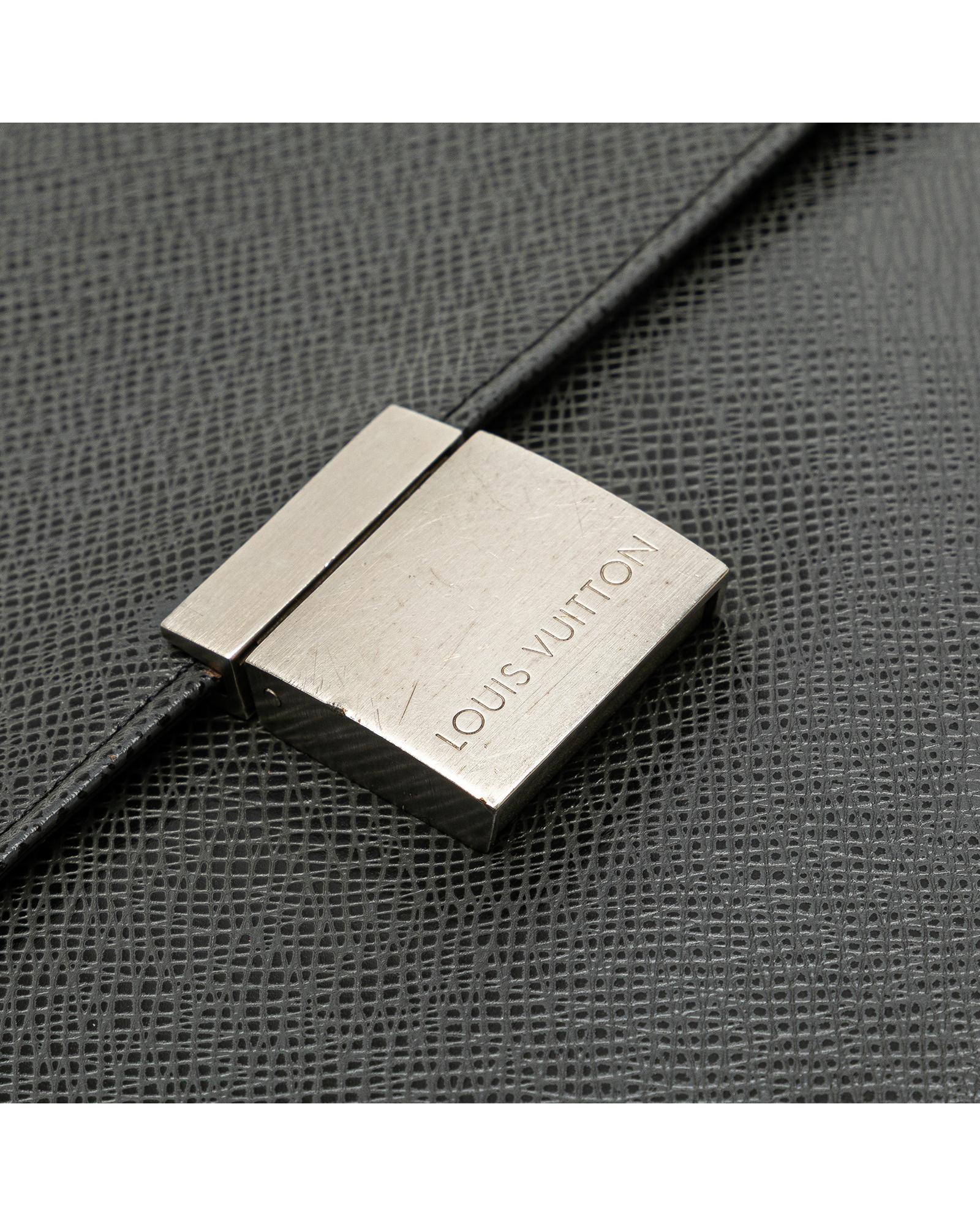 The Selenga features a taiga leather body a flat leather wrist strap a front flap with a push lock closure an exterior back slip pocket and an interior zip and slip pockets.Brand: Louis Vuitton