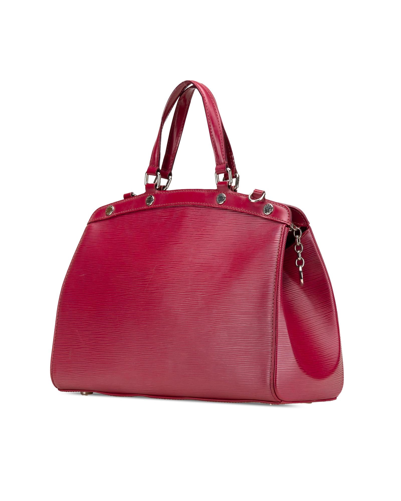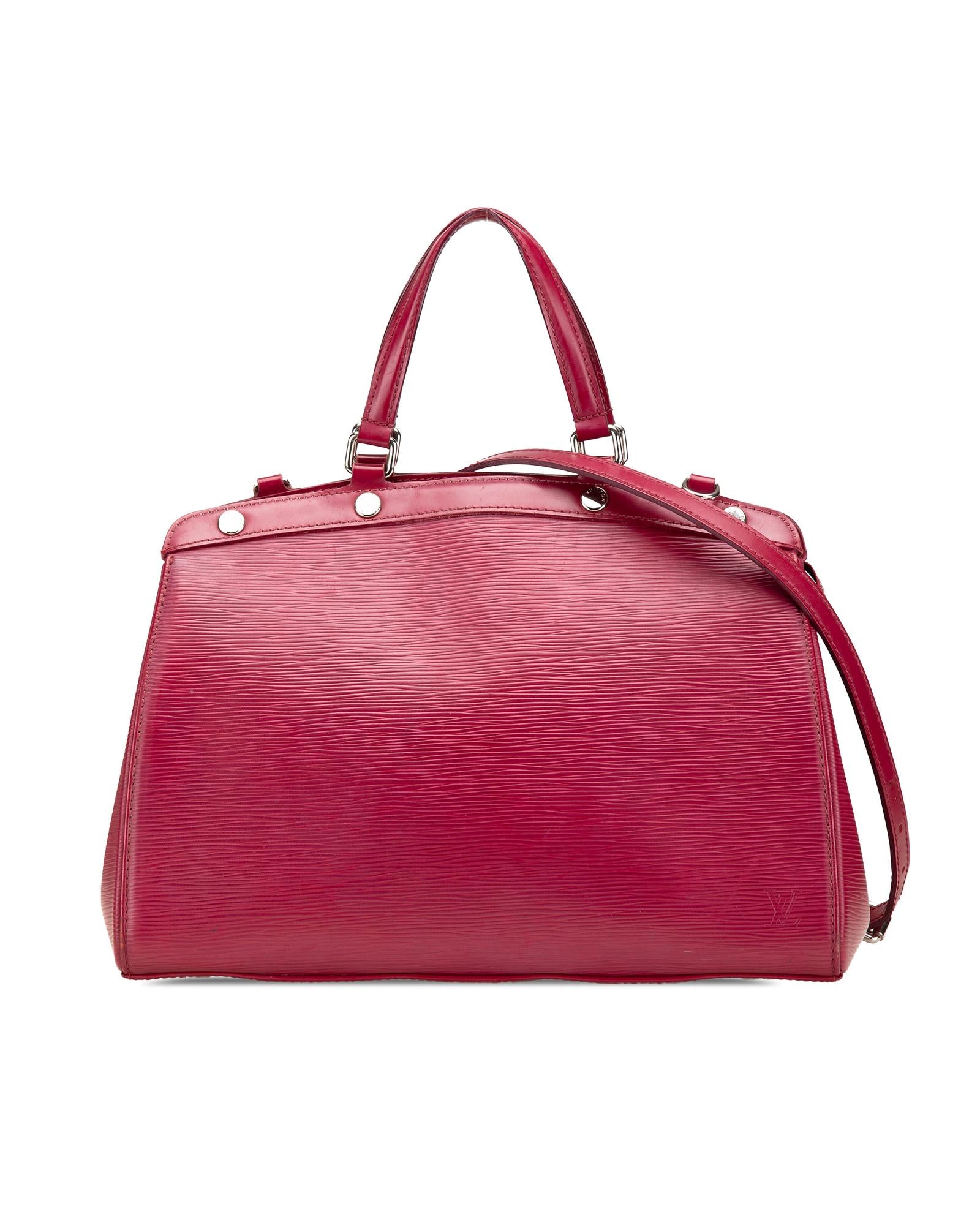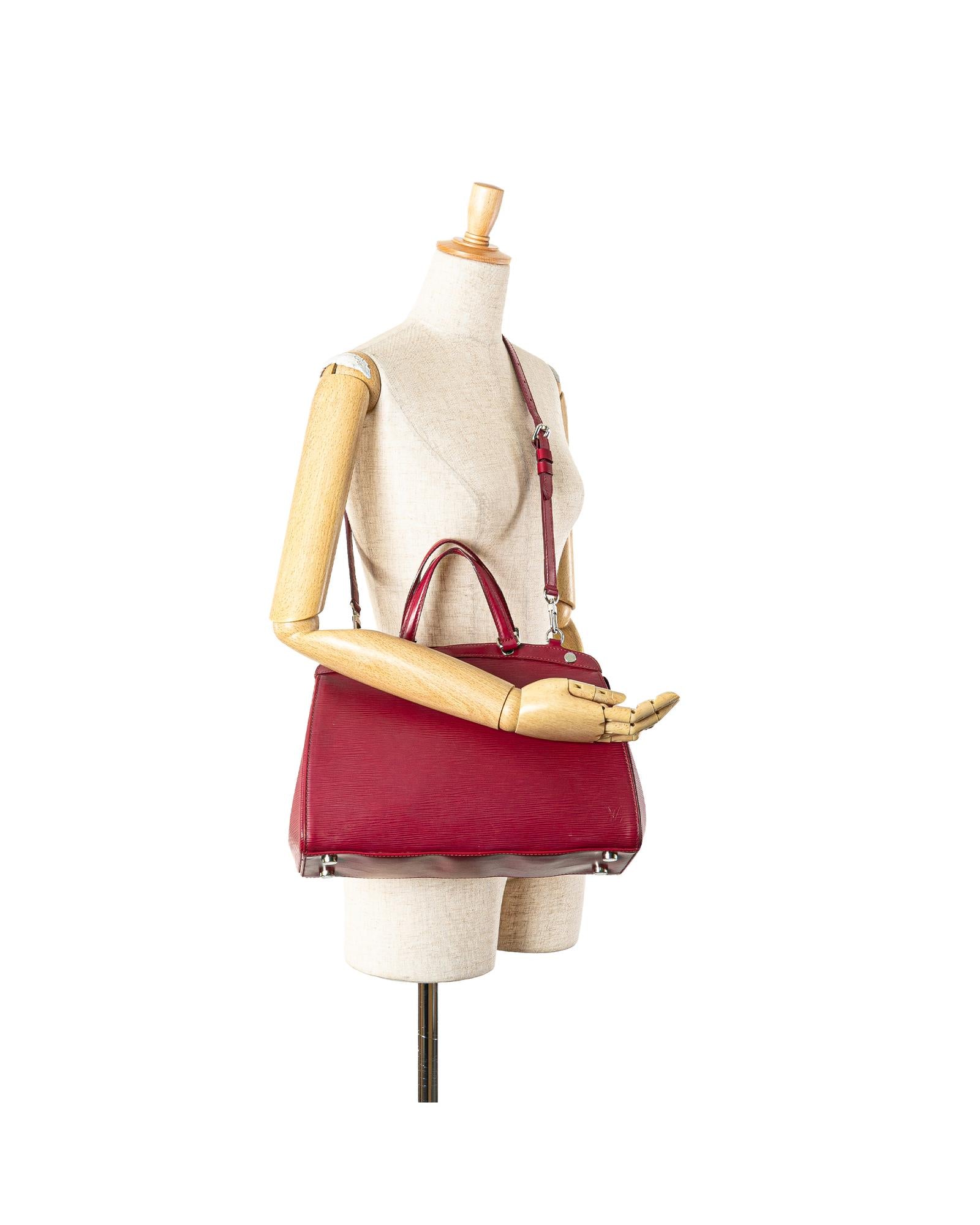 The Brea MM features an epi leather body flat leather handles a detachable shoulder strap top zip closure and interior zip and slip pockets.
