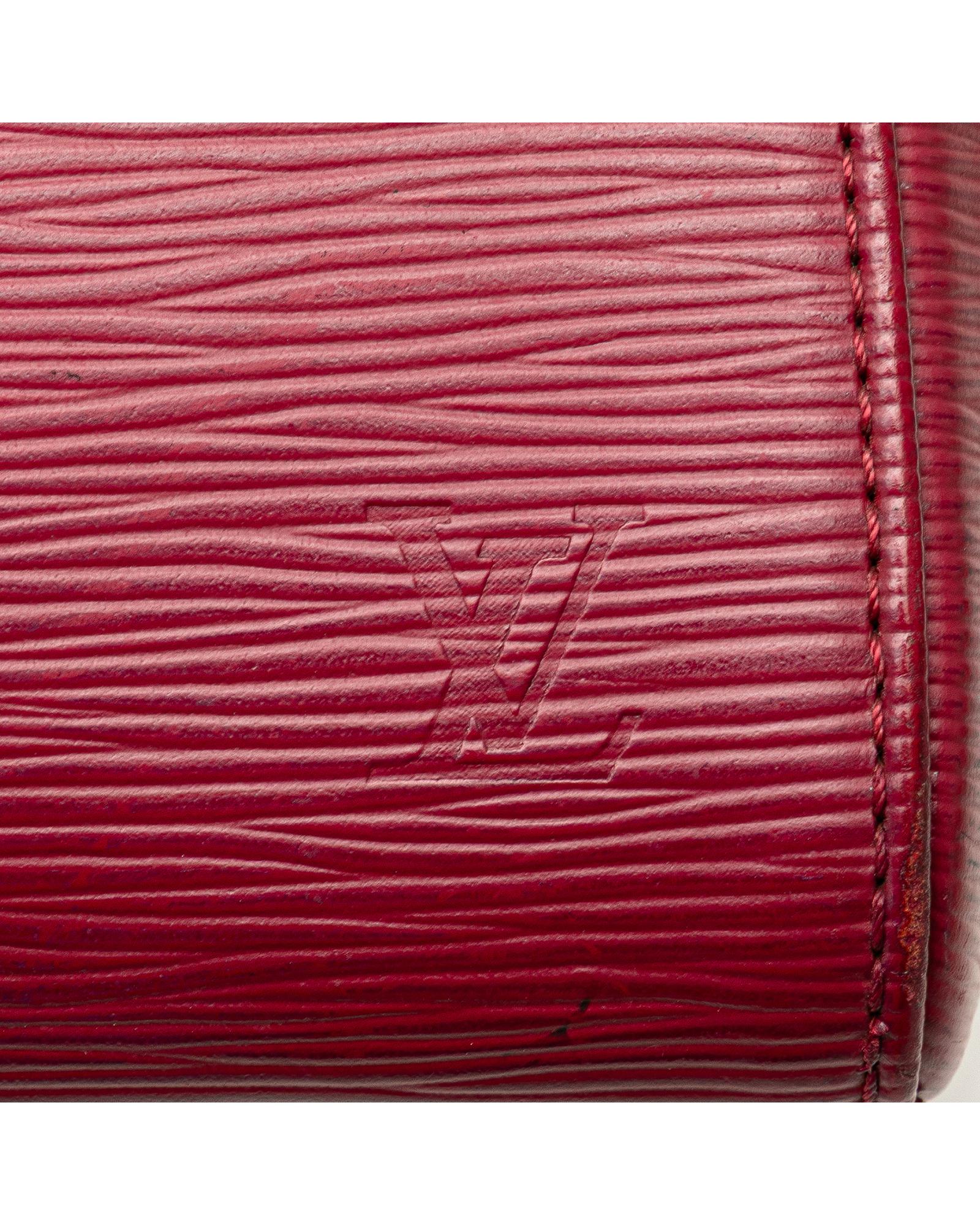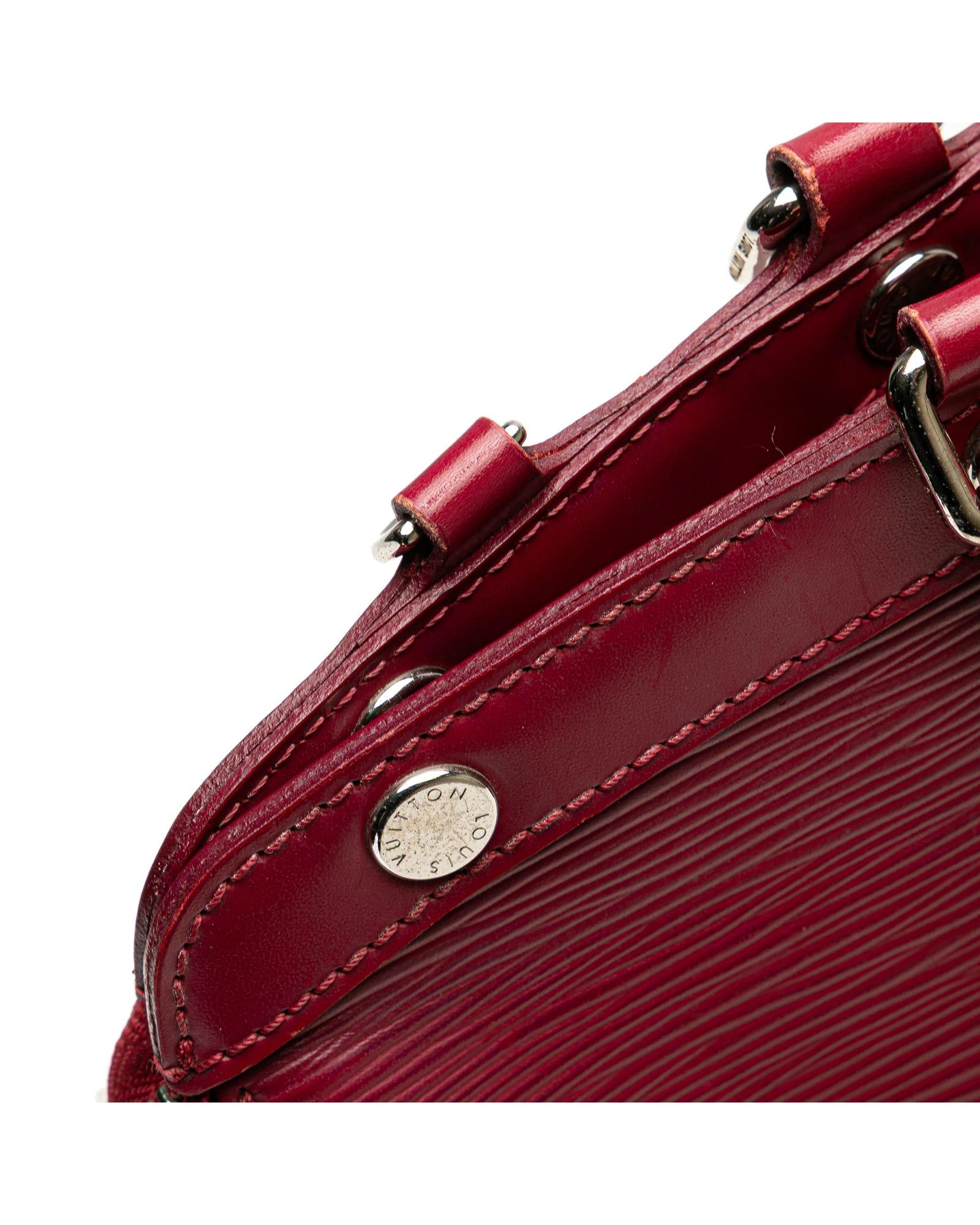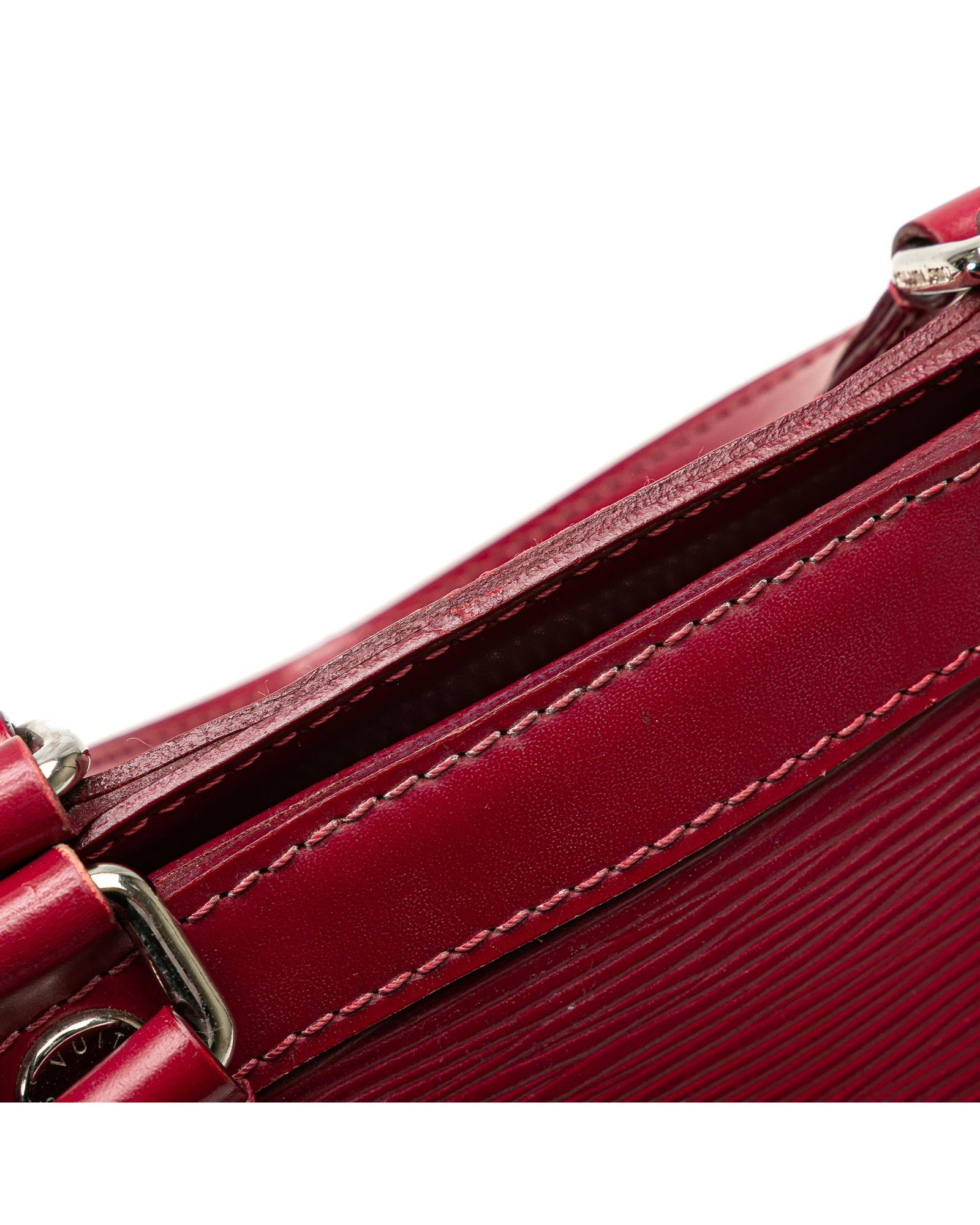 The Brea MM features an epi leather body flat leather handles a detachable shoulder strap top zip closure and interior zip and slip pockets.