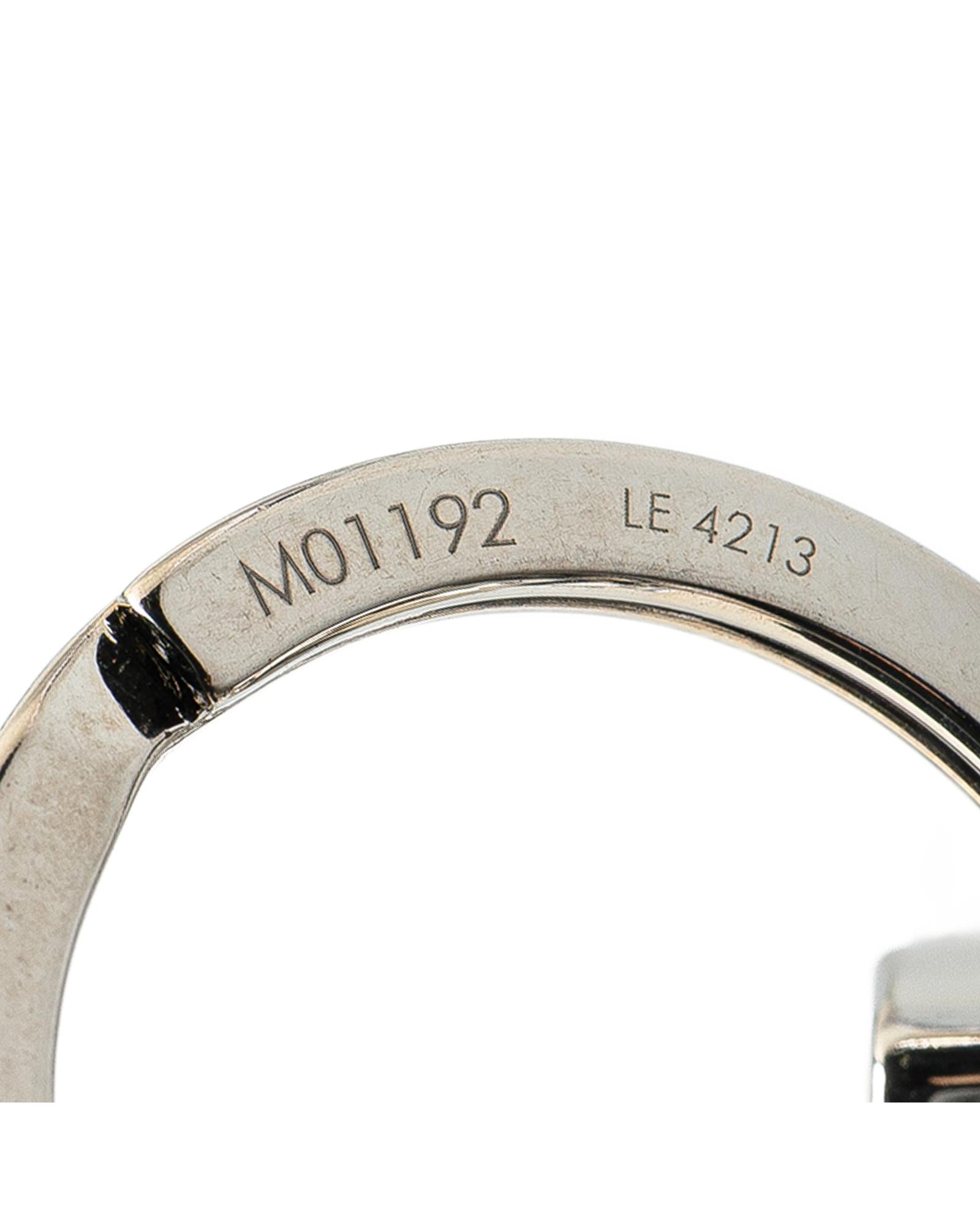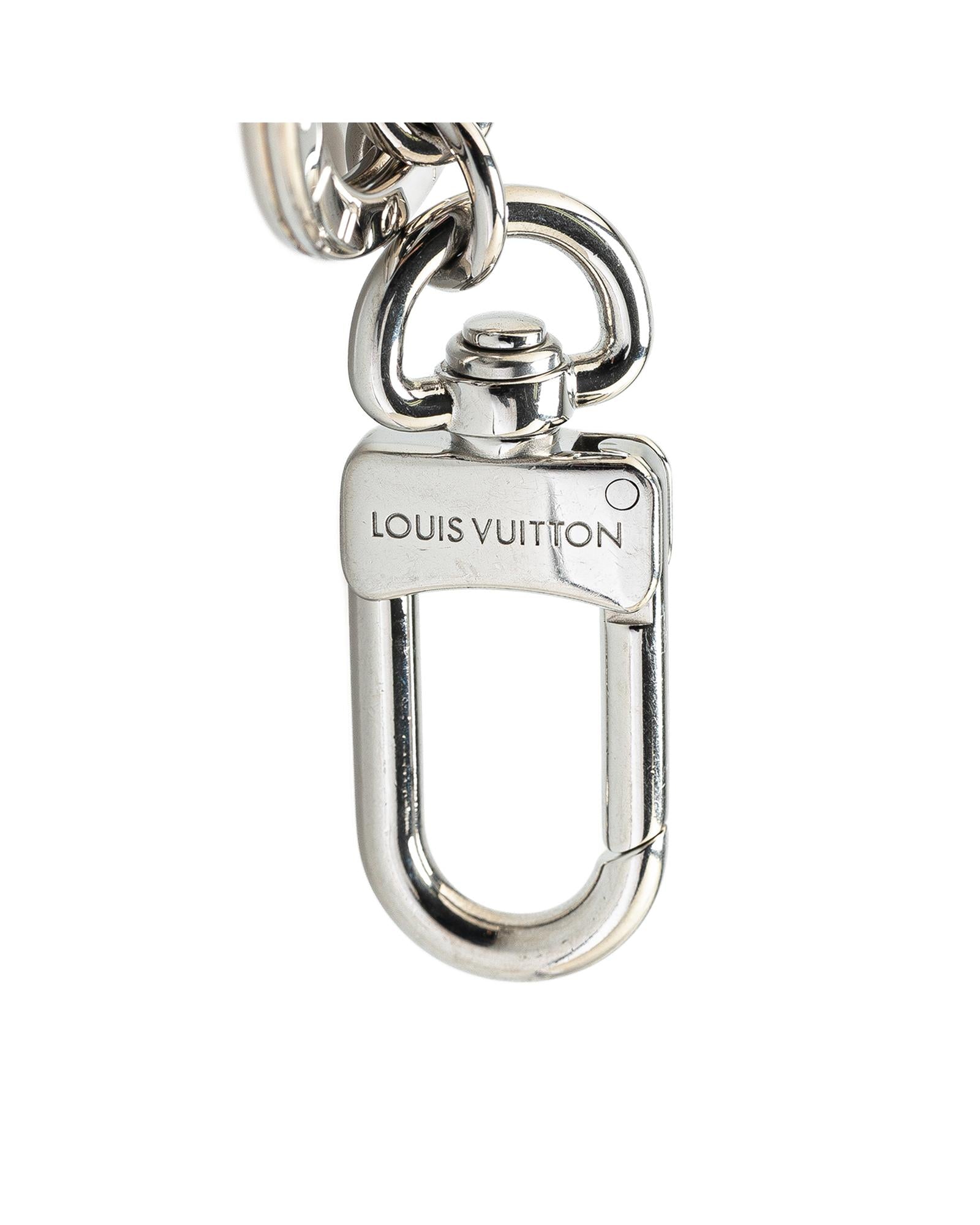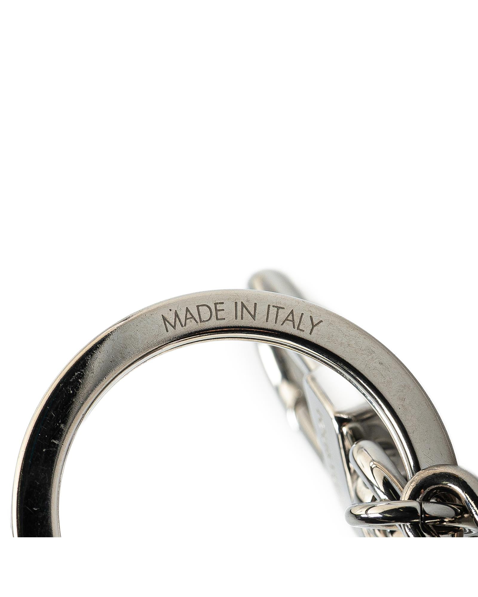 This key holder features a silver-tone metal body a key ring and a lobster claw clasp attachment.