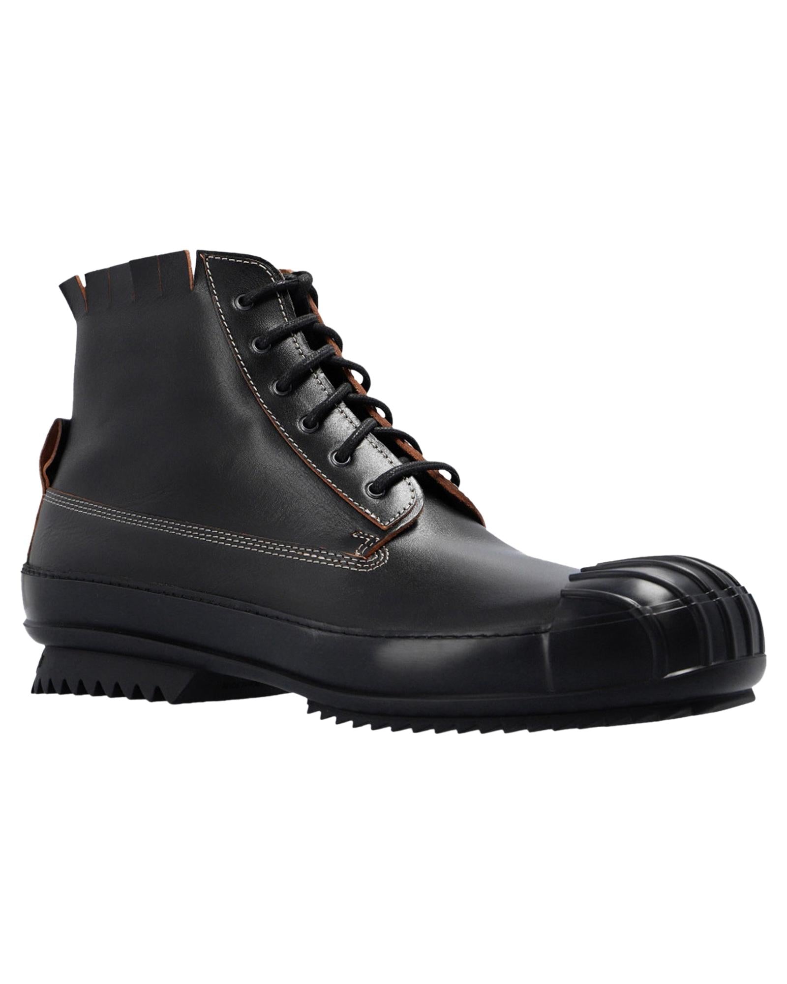 Leather Lace-Up Boots with Durable Rubber Outsole and Classic Style