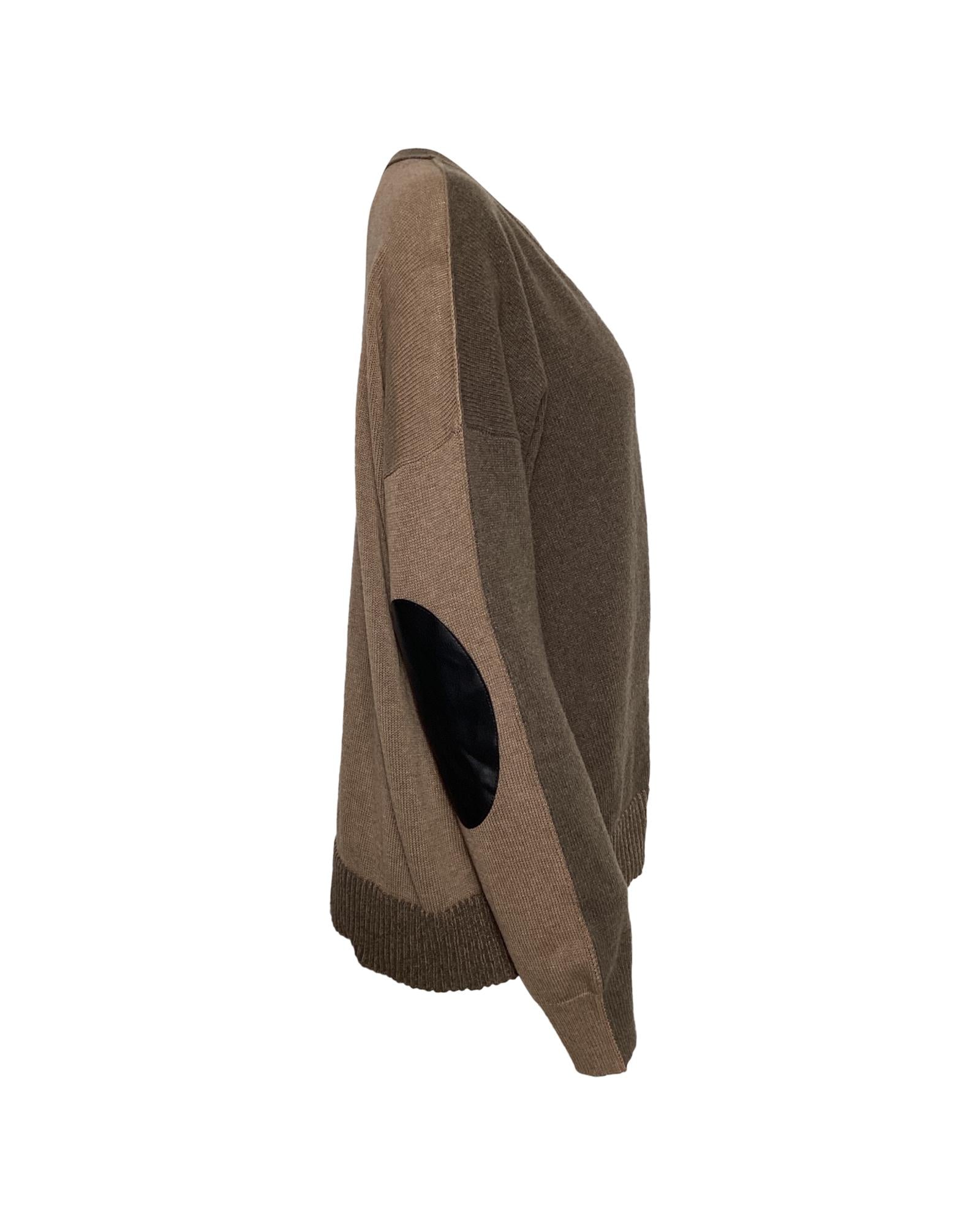 - Product: Colorblock Leather Patches on Elbow Cardigan