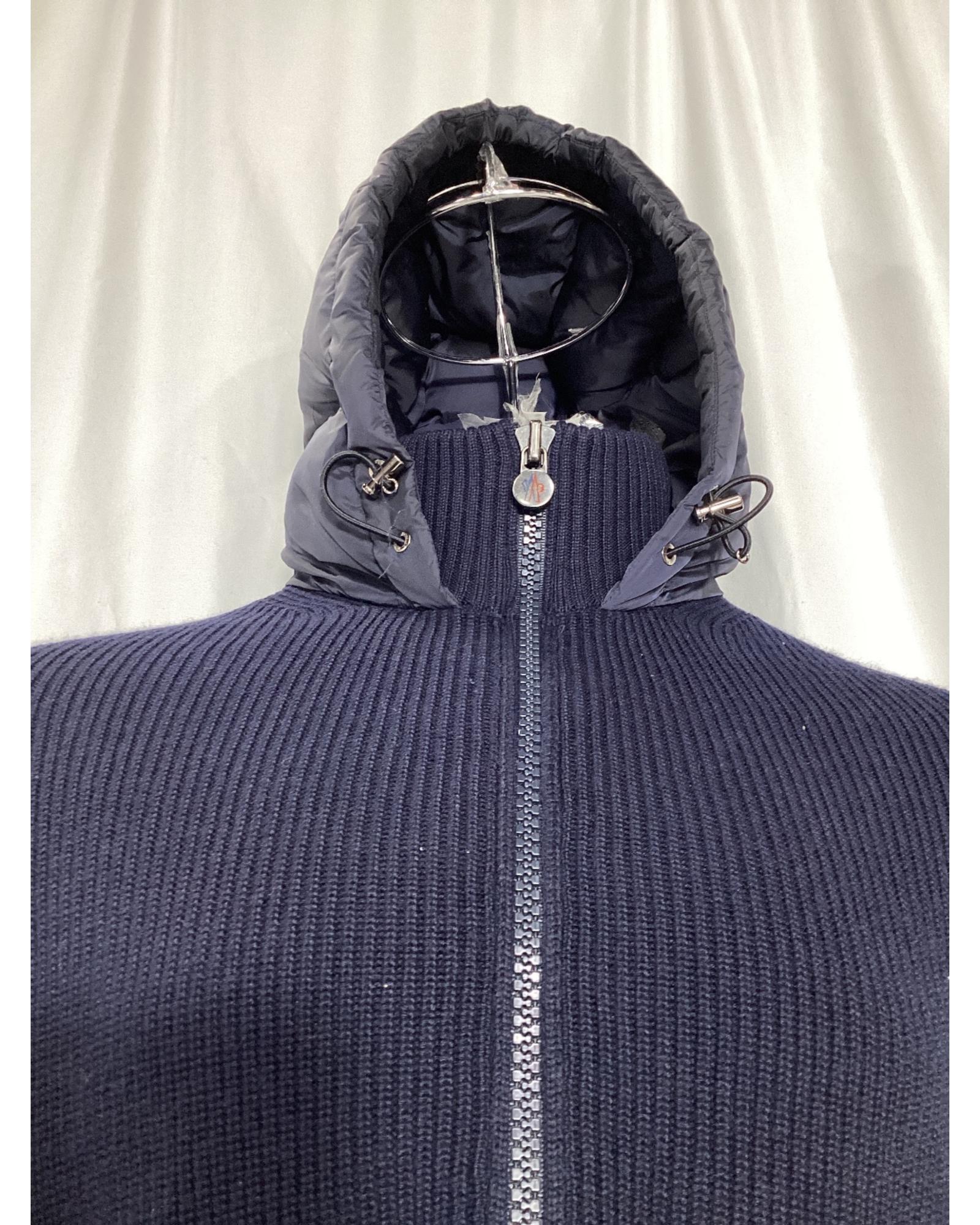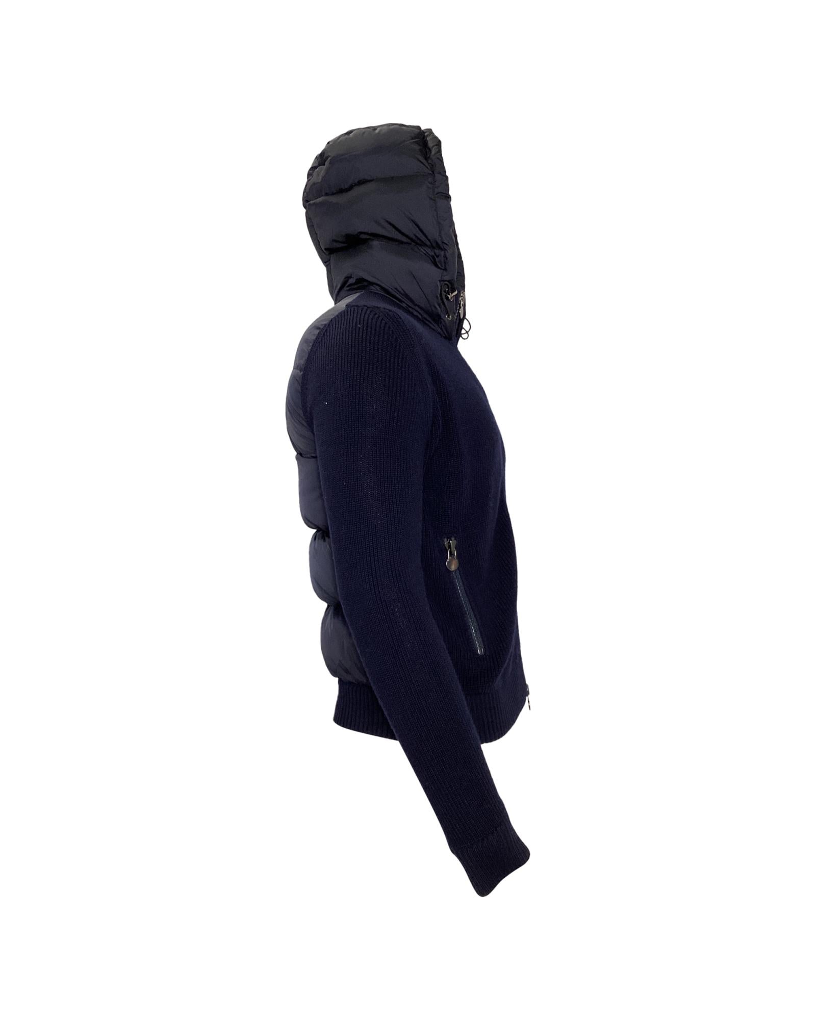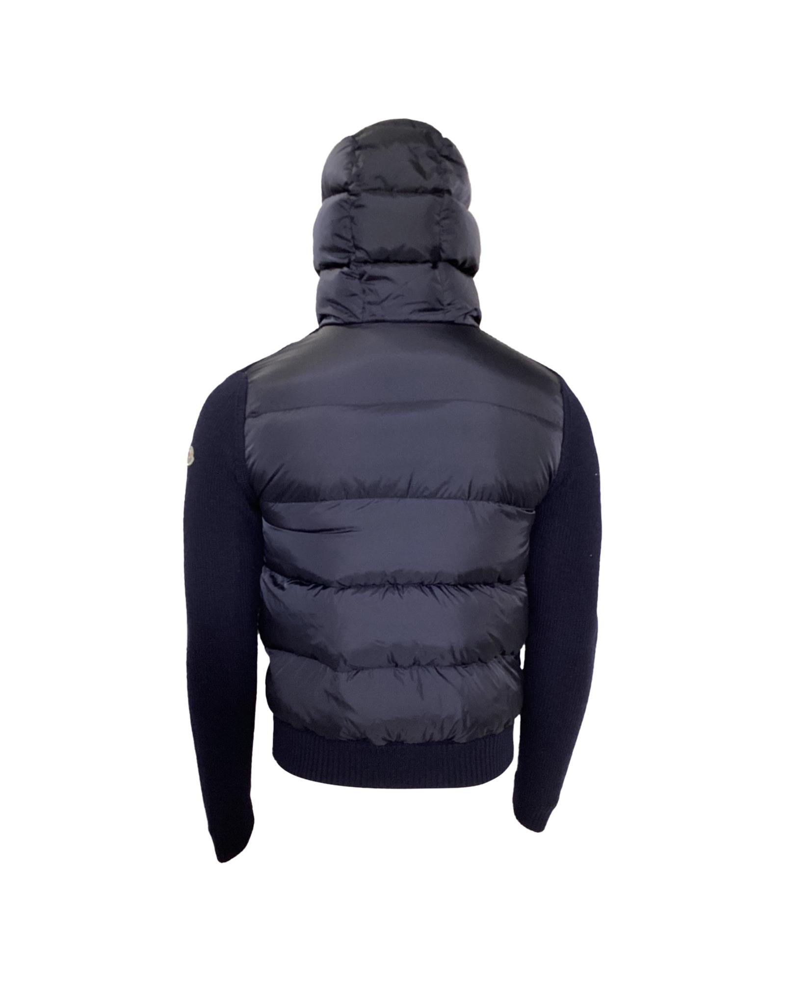 - Moncler Full Zip Padded Hoodie in Navy Blue Polyamide