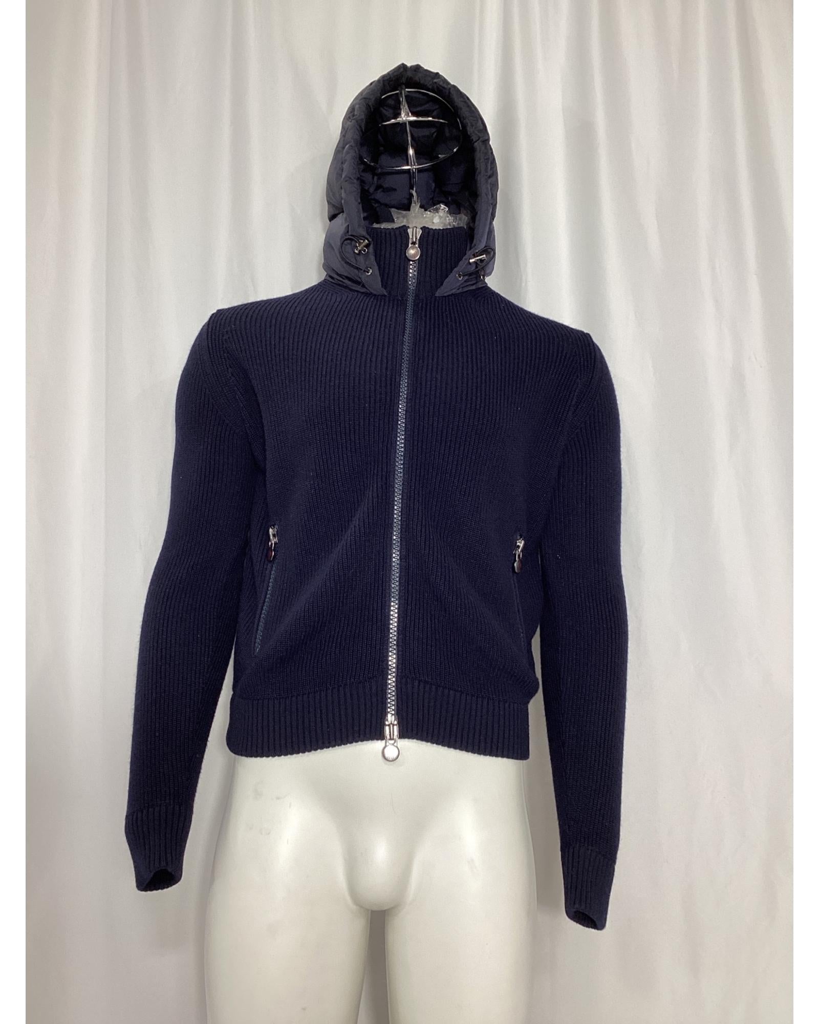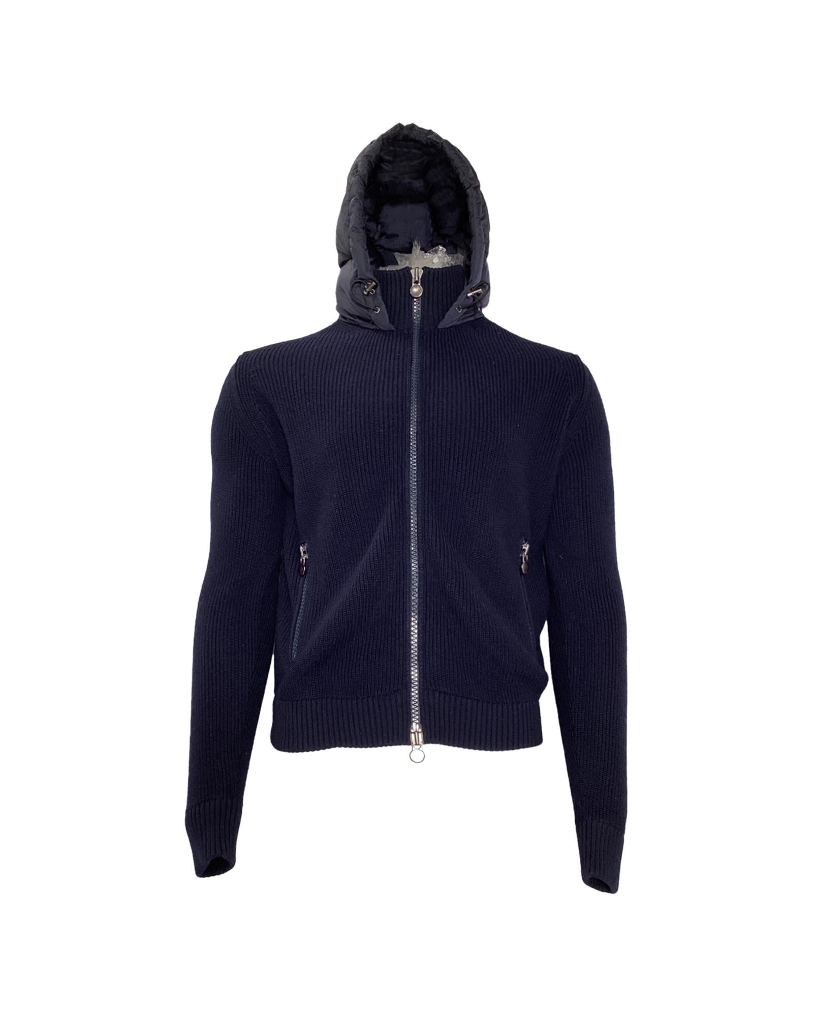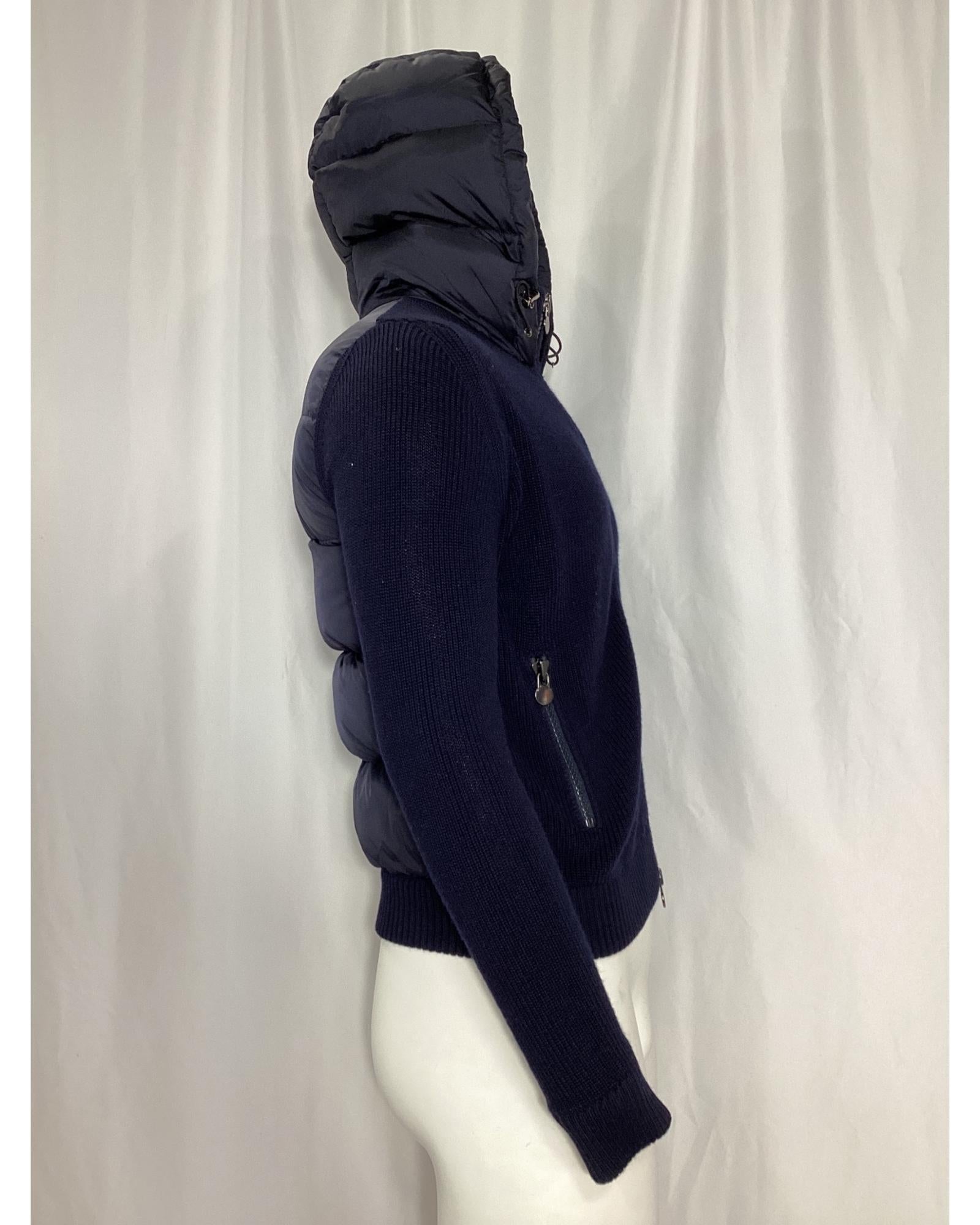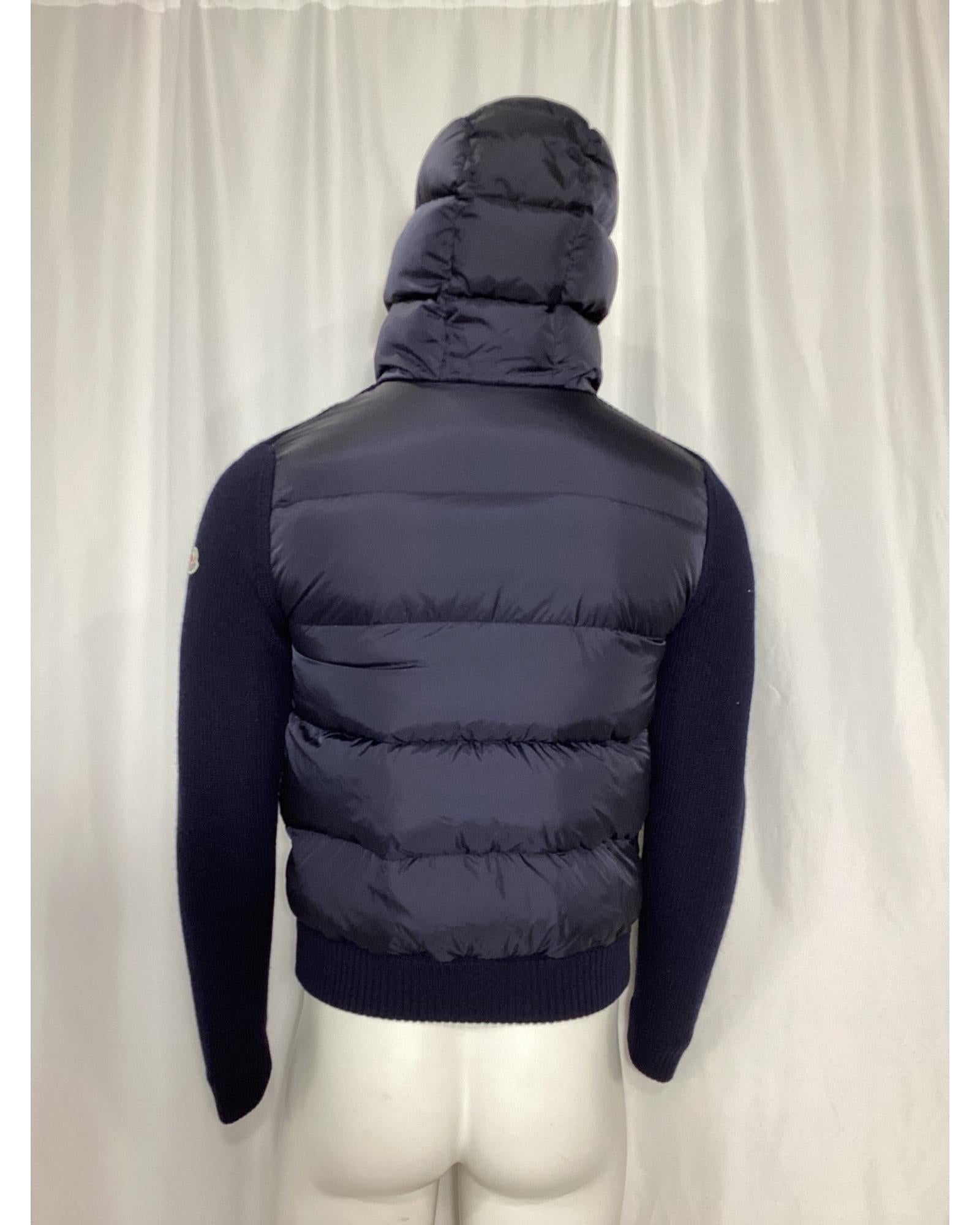 - Moncler Full Zip Padded Hoodie in Navy Blue Polyamide