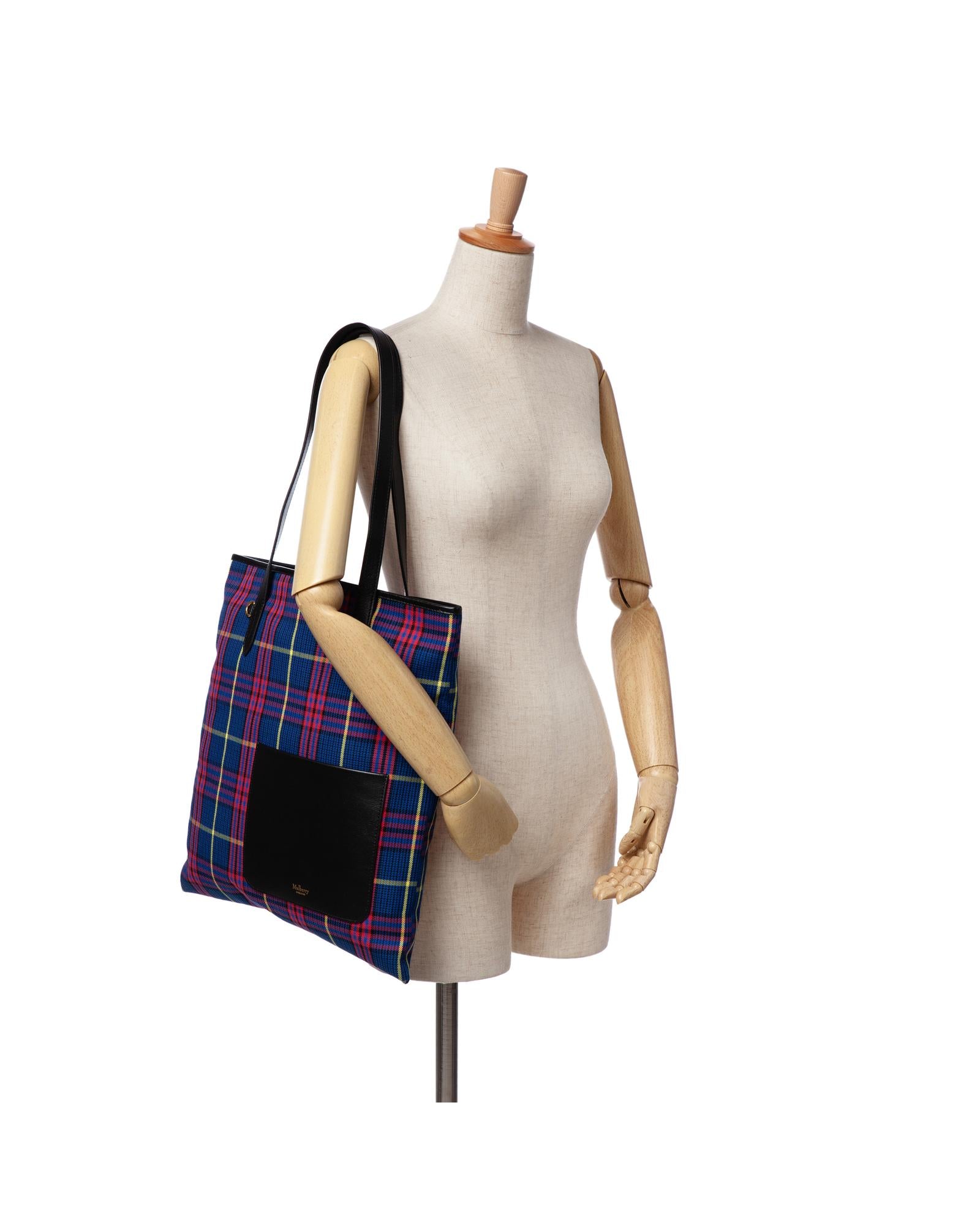 This tote bag features a canvas body flat leather straps an open top and an exterior front pocket.Brand: Mulberry