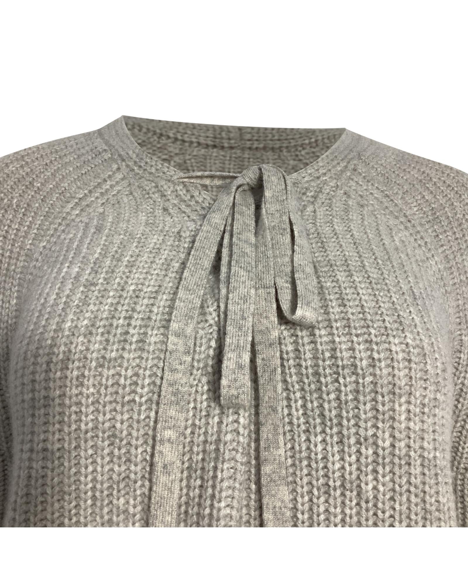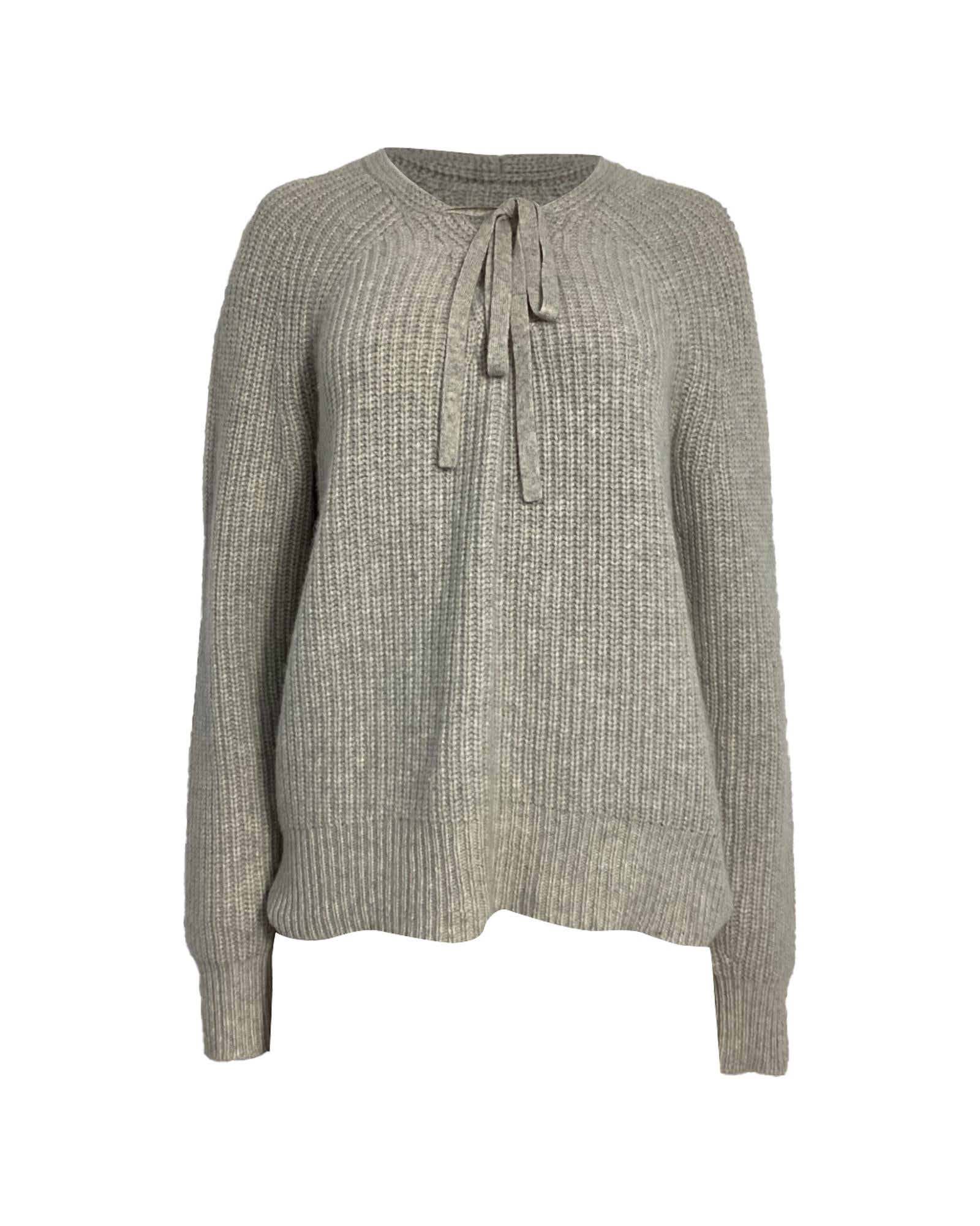 - Nili Lotan Knitted Lace Tie Sweater in Grey Wool