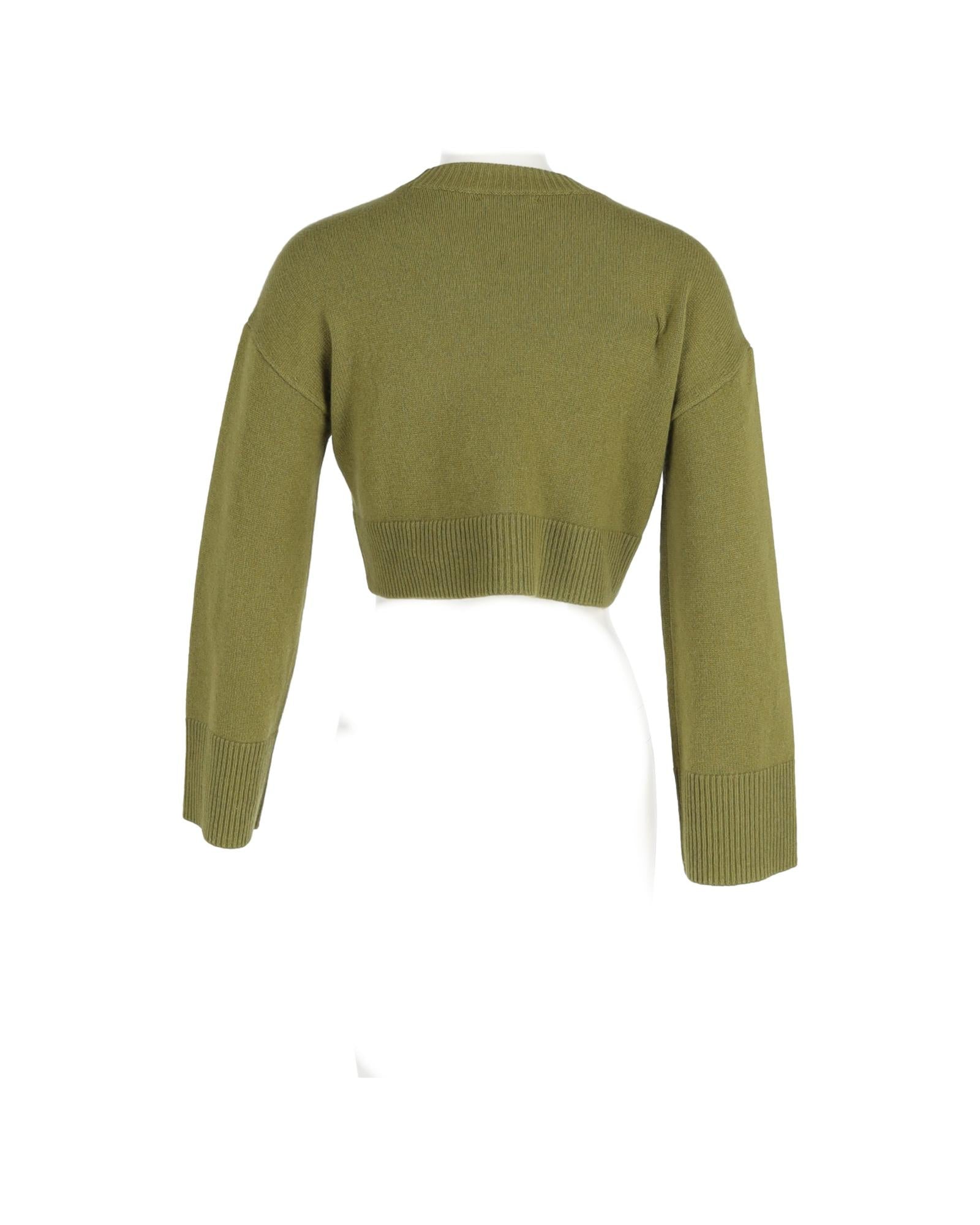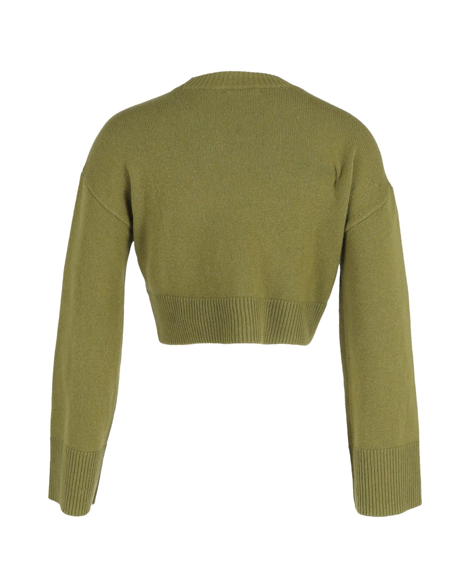 - Reformation Paloma Knitted Cropped Sweater in Green Wool