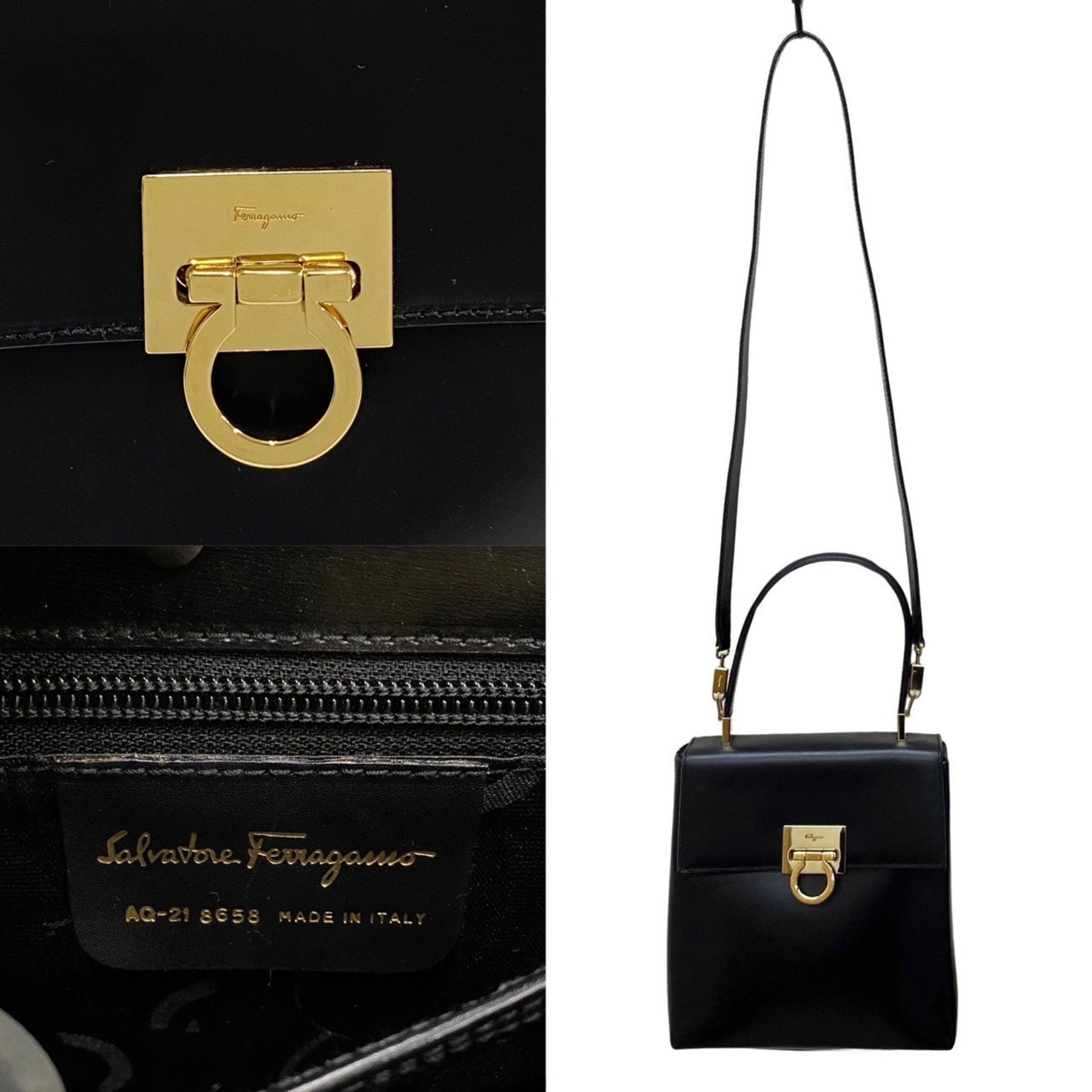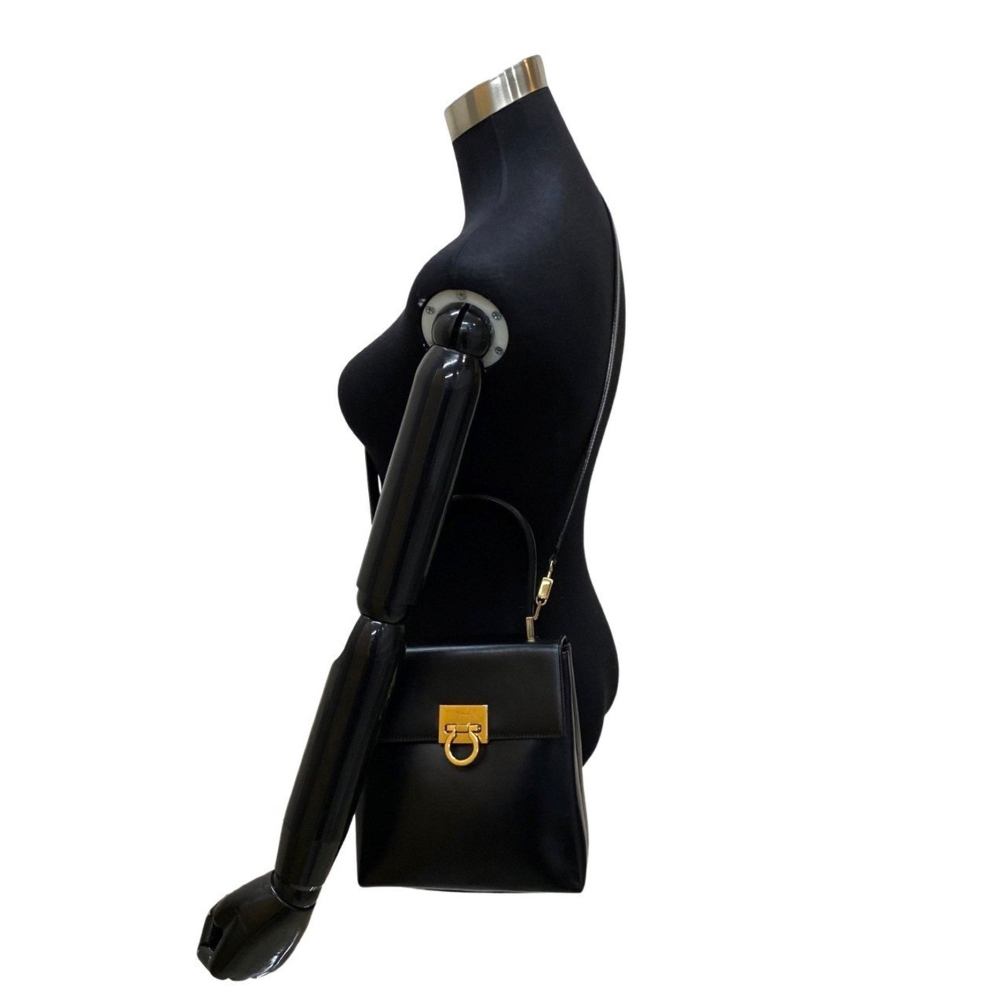 Brand: Salvatore Ferragamo Model: Gancini Color: Black Material: Leather Inclusions: Manual Shoulder strap Dimensions: 20cm x 19cm x 8cm Serial number: AQ-21 3658 Country of origin: Italy Condition: AB - good condition. If you're in search of a bag that is both practical and elegant then this Salvatore Ferragamo gancini bag will be perfect for you! It has the ability to charm fashion enthusiasts whether they are men or women with its captivating beauty. The item shows signs of usage with slight scratches and dirt but it is generally in good condition. There are slight scratches slight dirt and slight traces of use overall. Additionally there is a slight crack on the edges. We recommend that you view all photos prior to purchase to ensure that you are satisfied with the condition of the item.