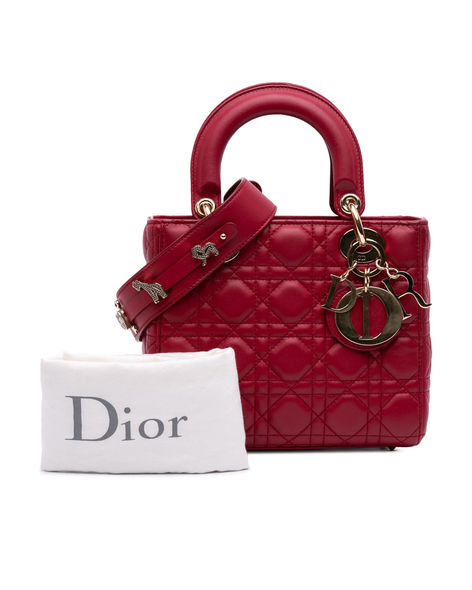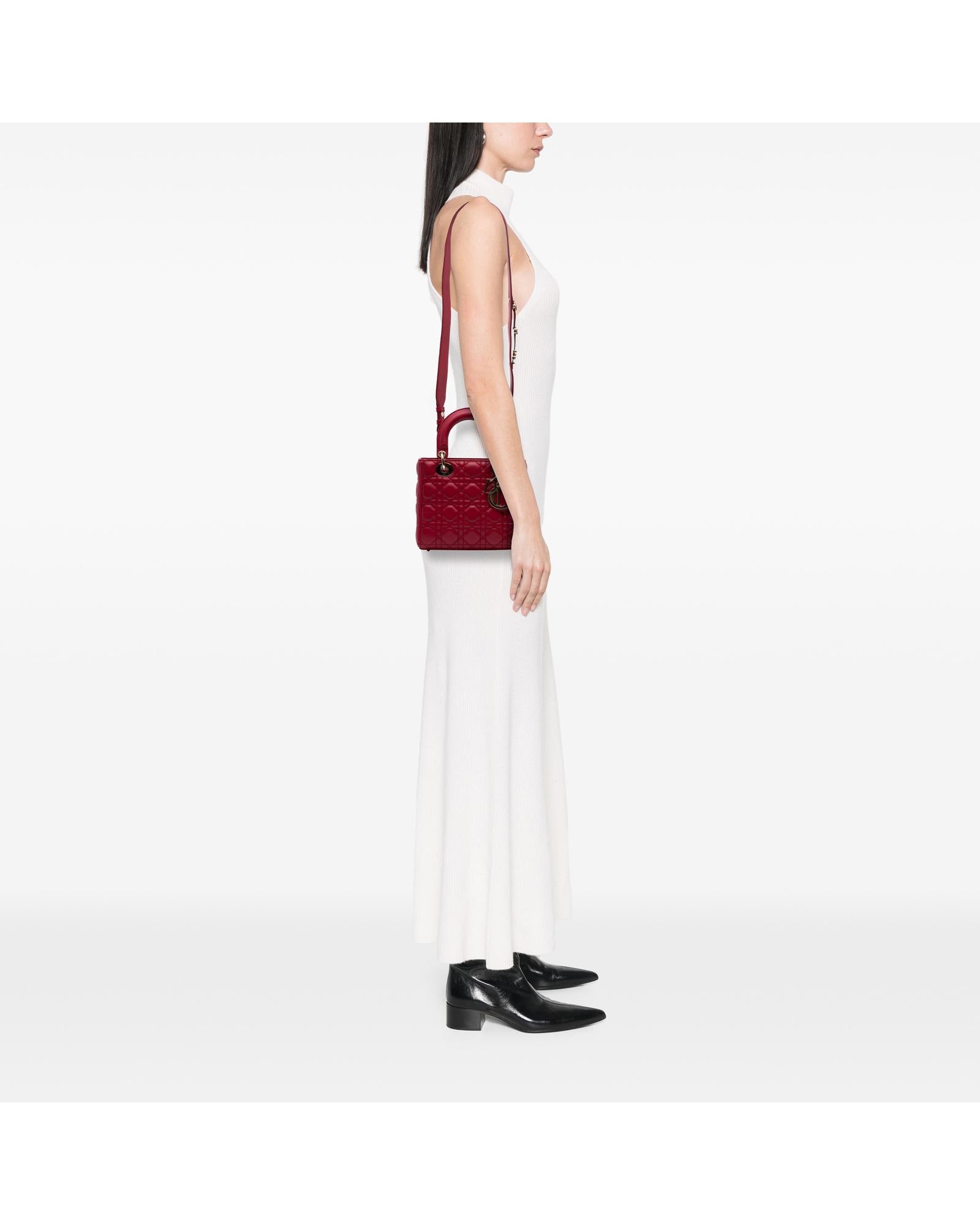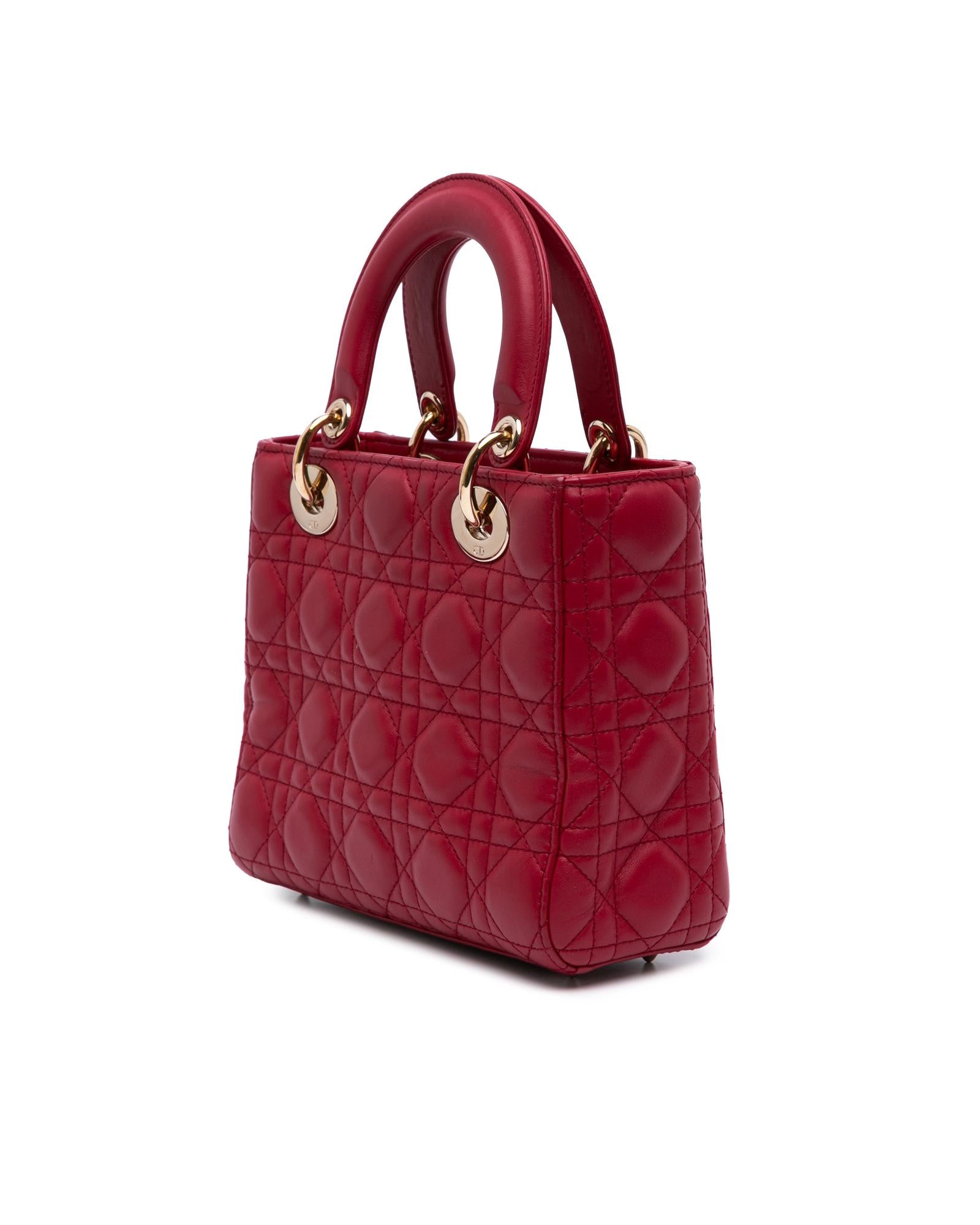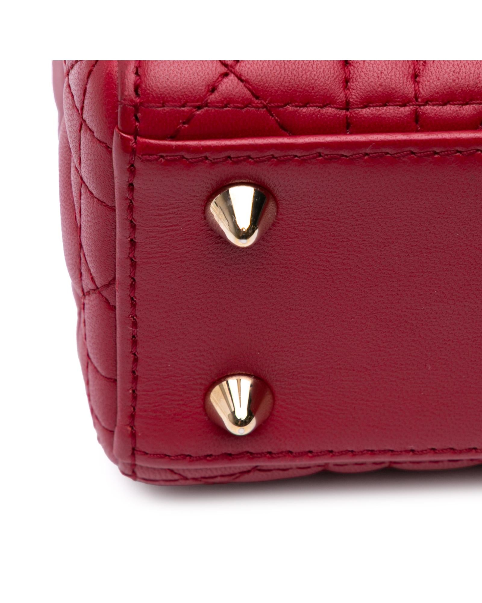The Lady Dior features a quilted lambskin leather body flat leather handles a detachable flat leather strap a fold-in flap closure and an interior zip pocket.Brand: Dior Vintage