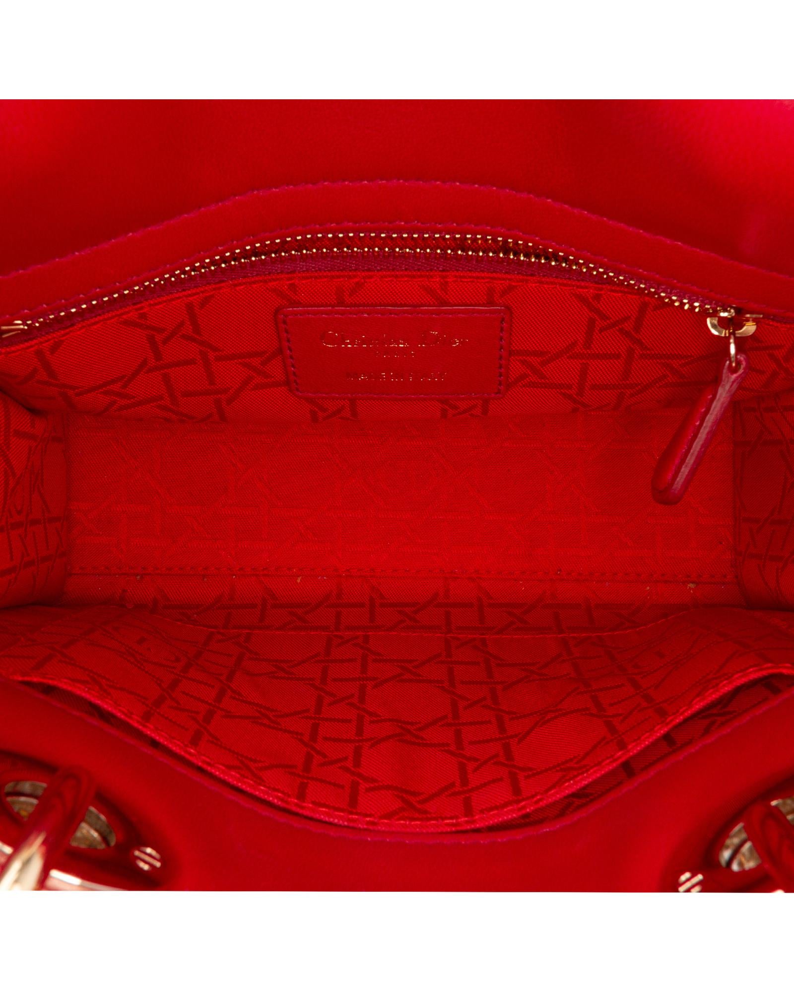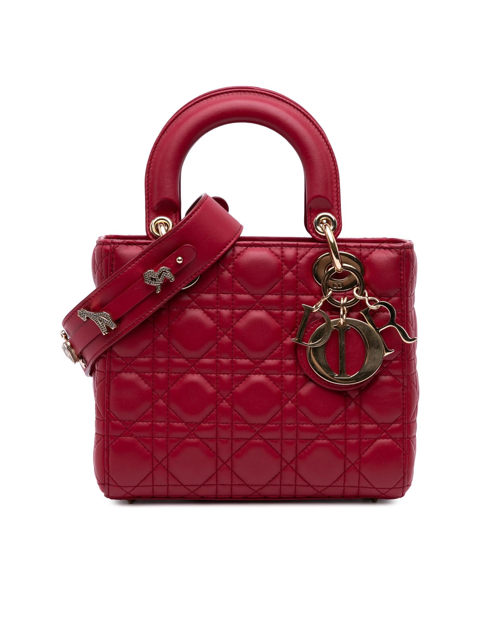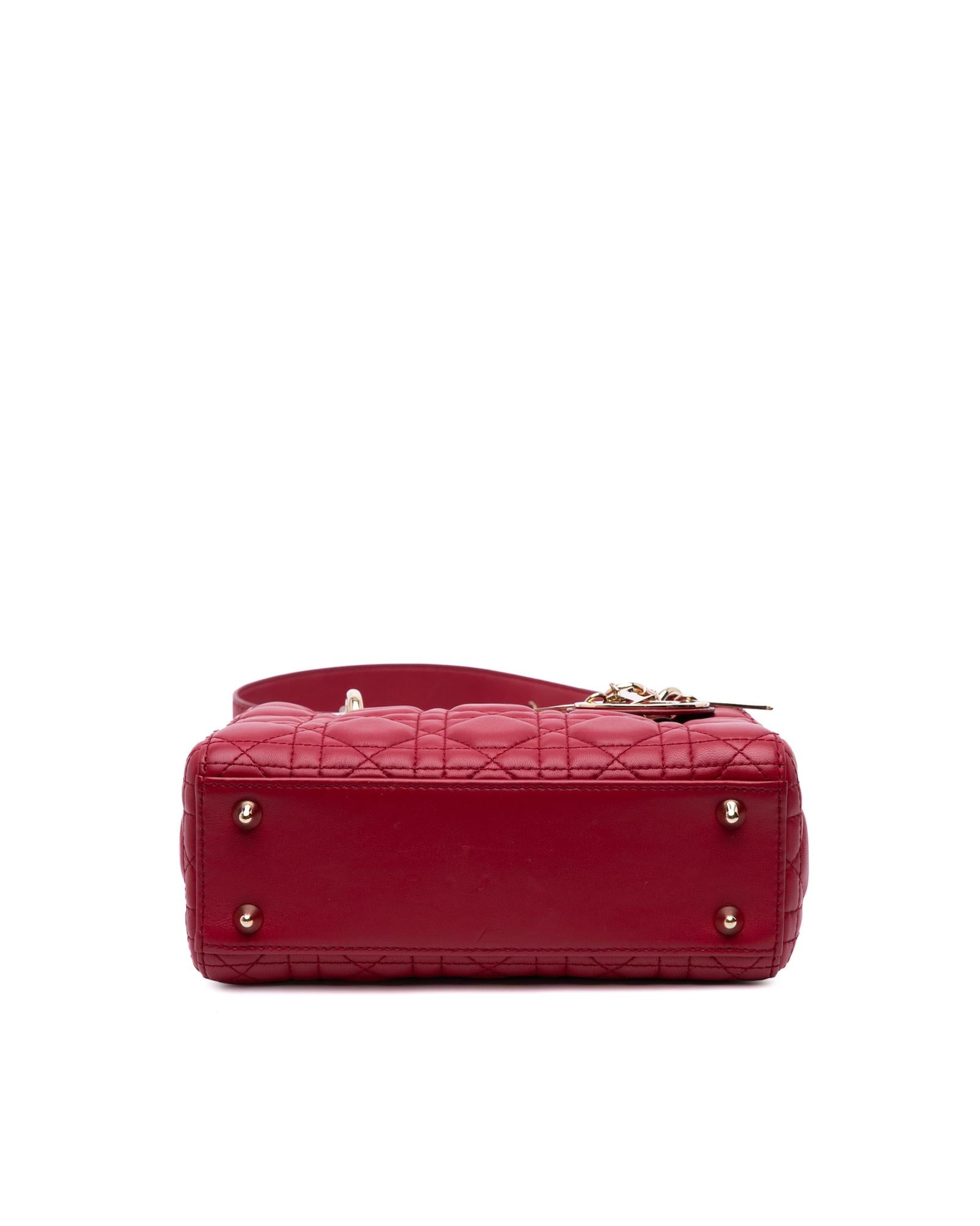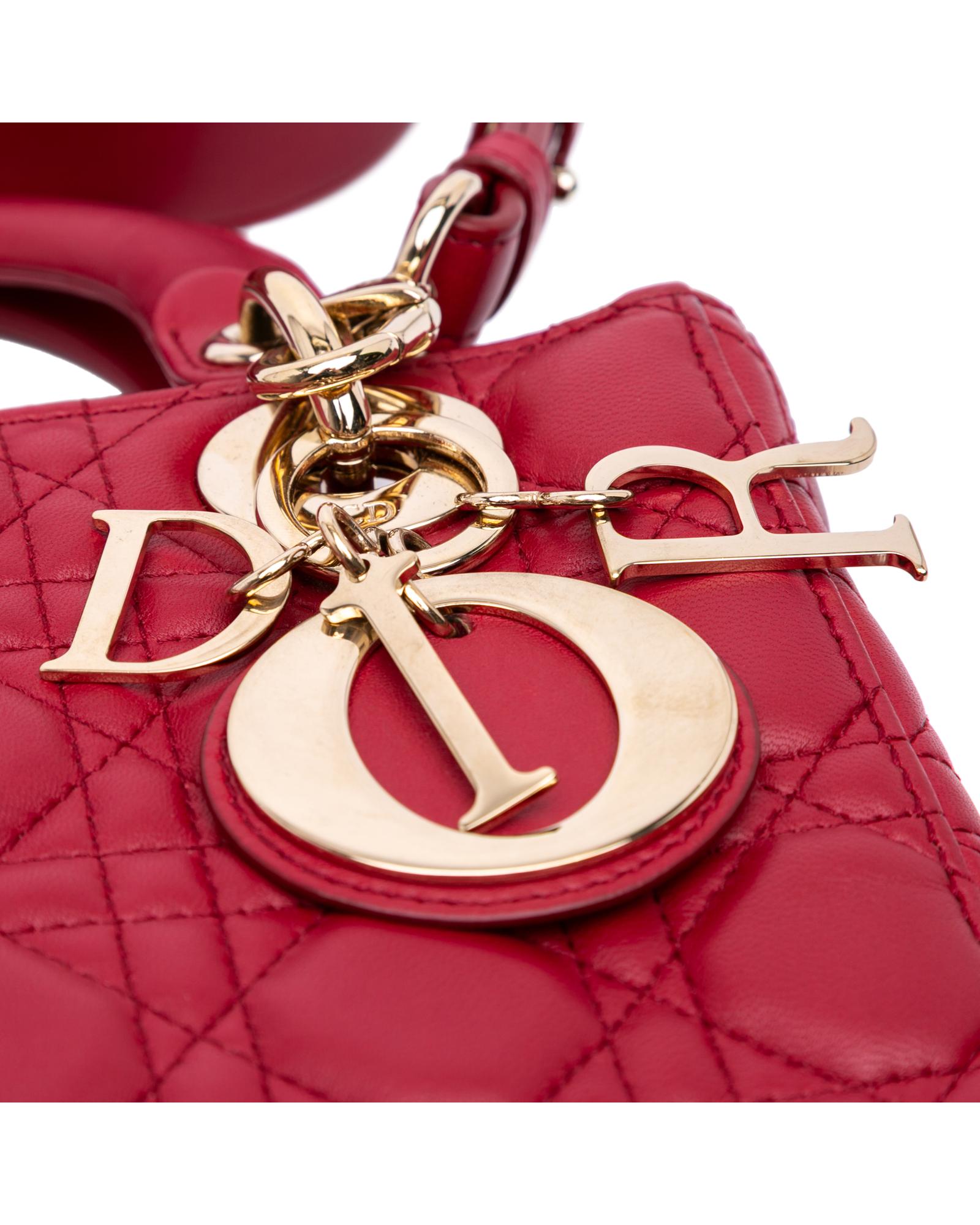 The Lady Dior features a quilted lambskin leather body flat leather handles a detachable flat leather strap a fold-in flap closure and an interior zip pocket.Brand: Dior Vintage