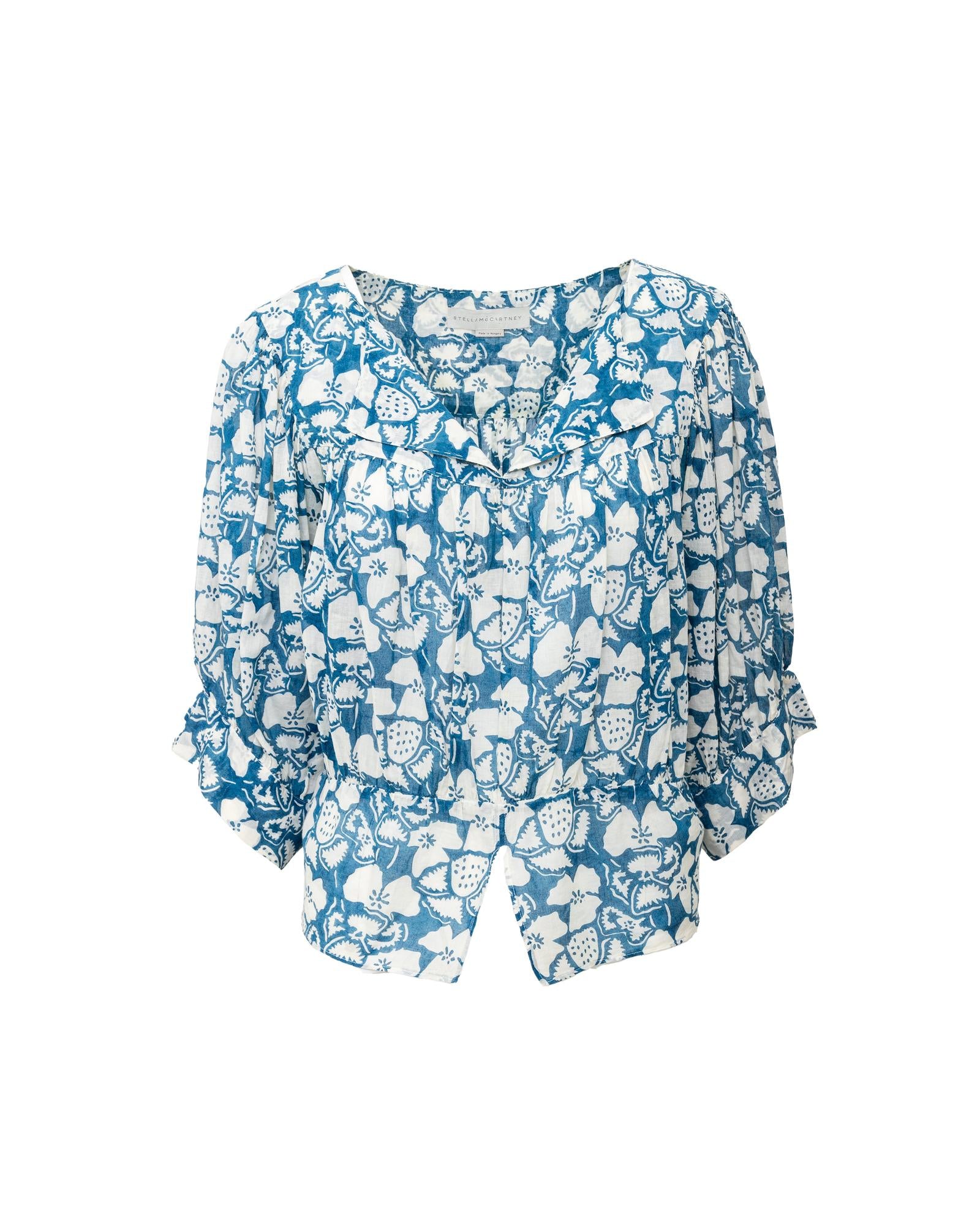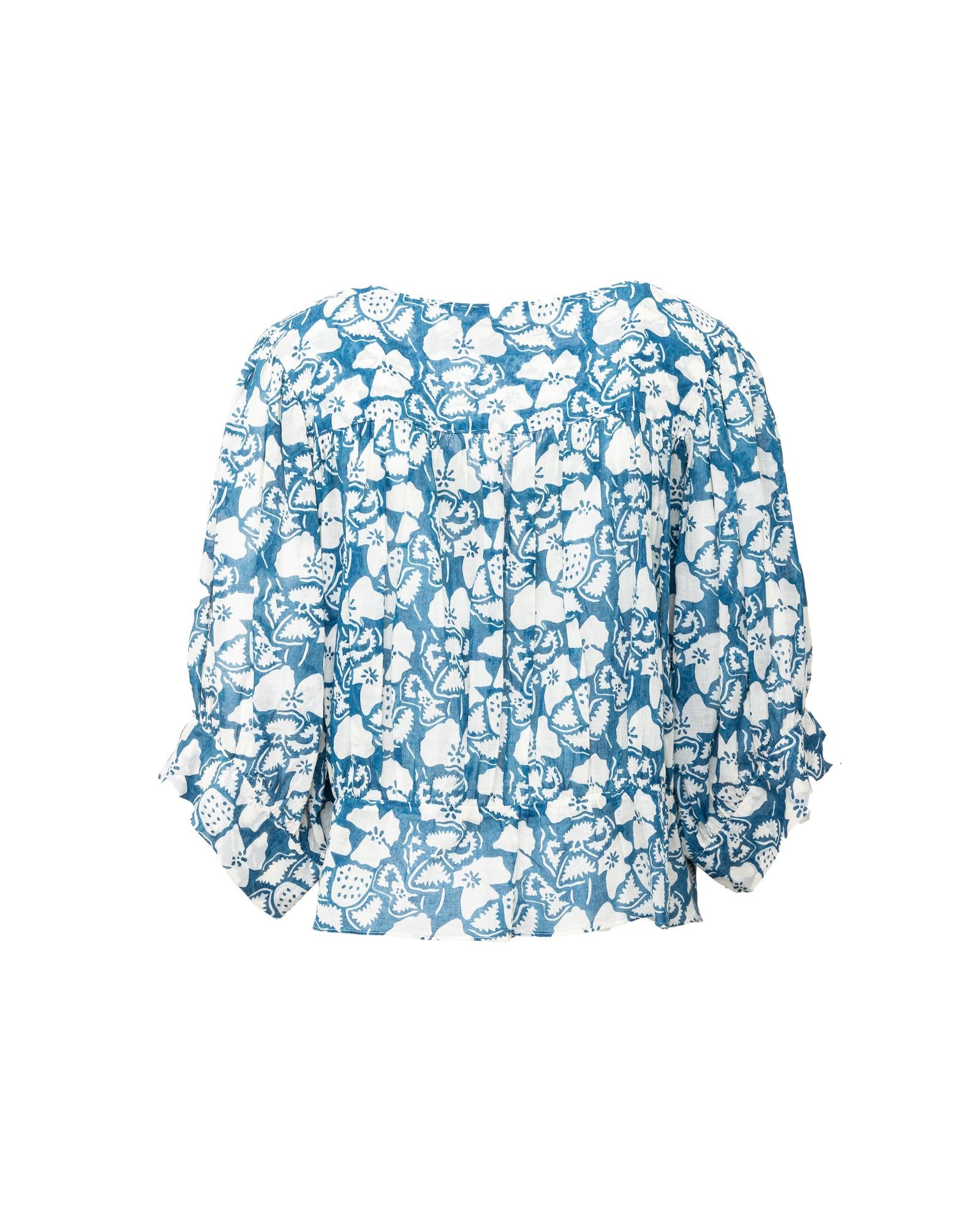 Blue and white patterned blouse