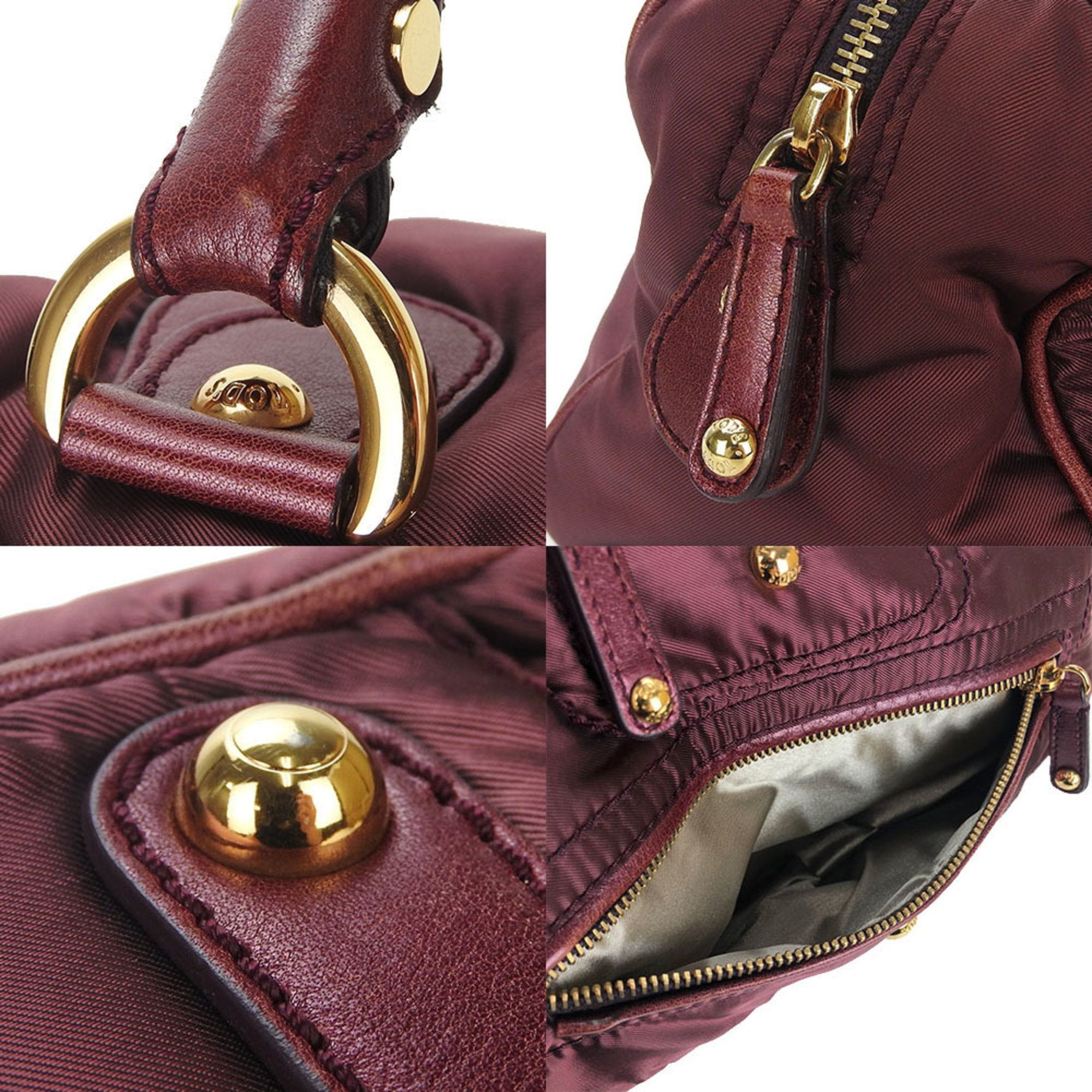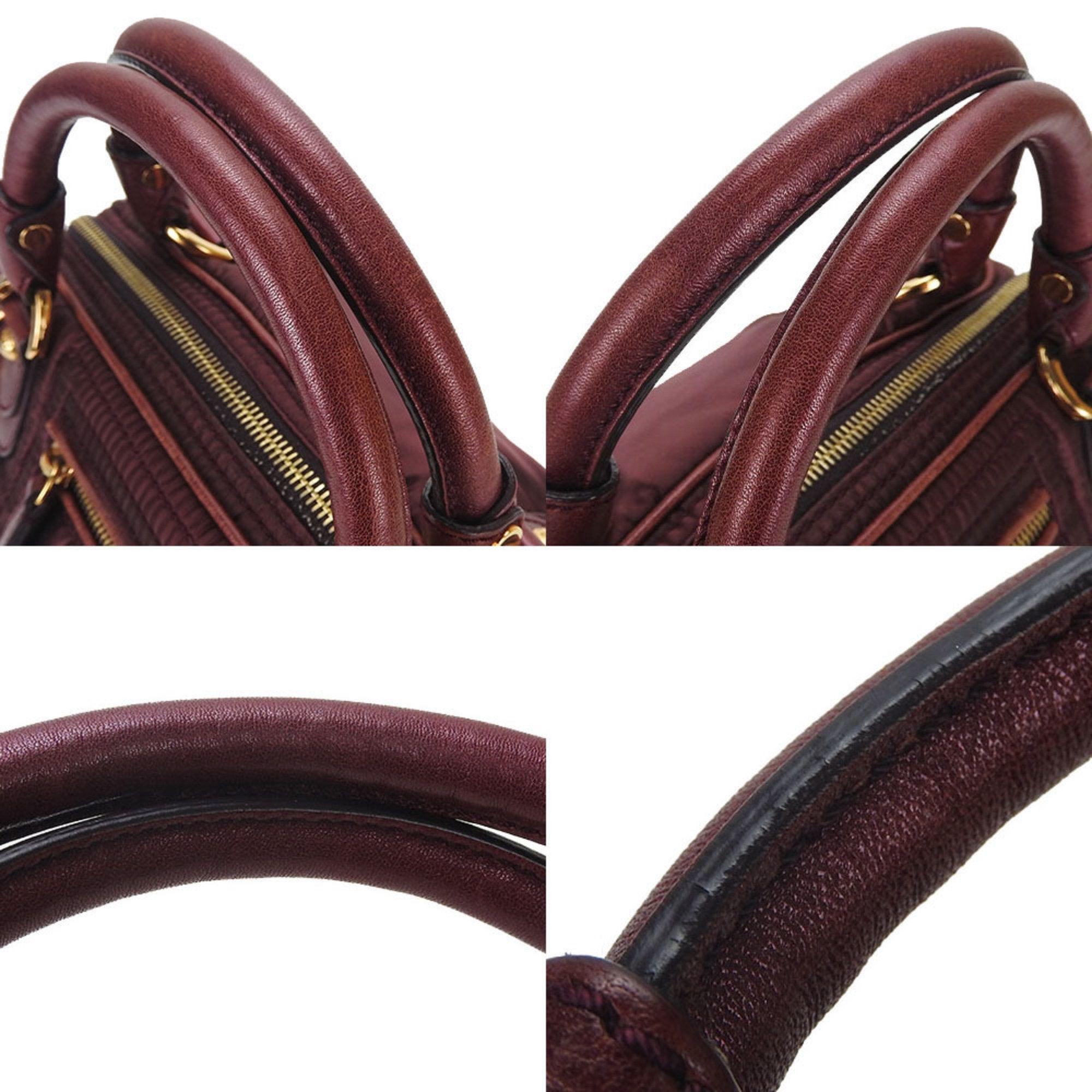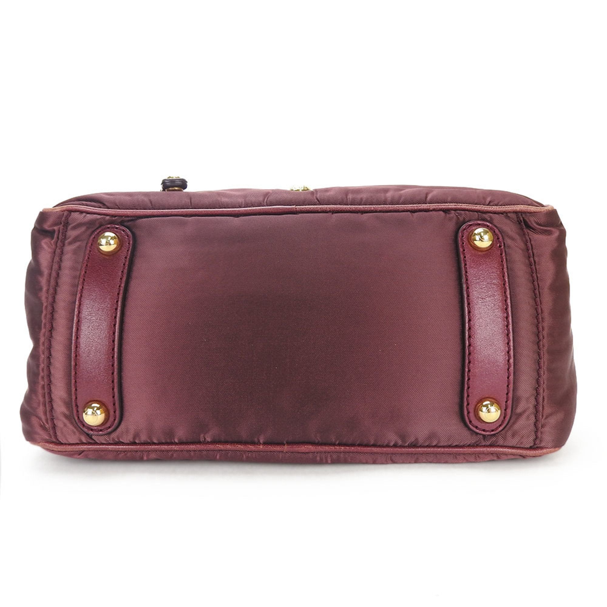 Bordeaux Nylon and Leather Handbag with Shoulder Strap