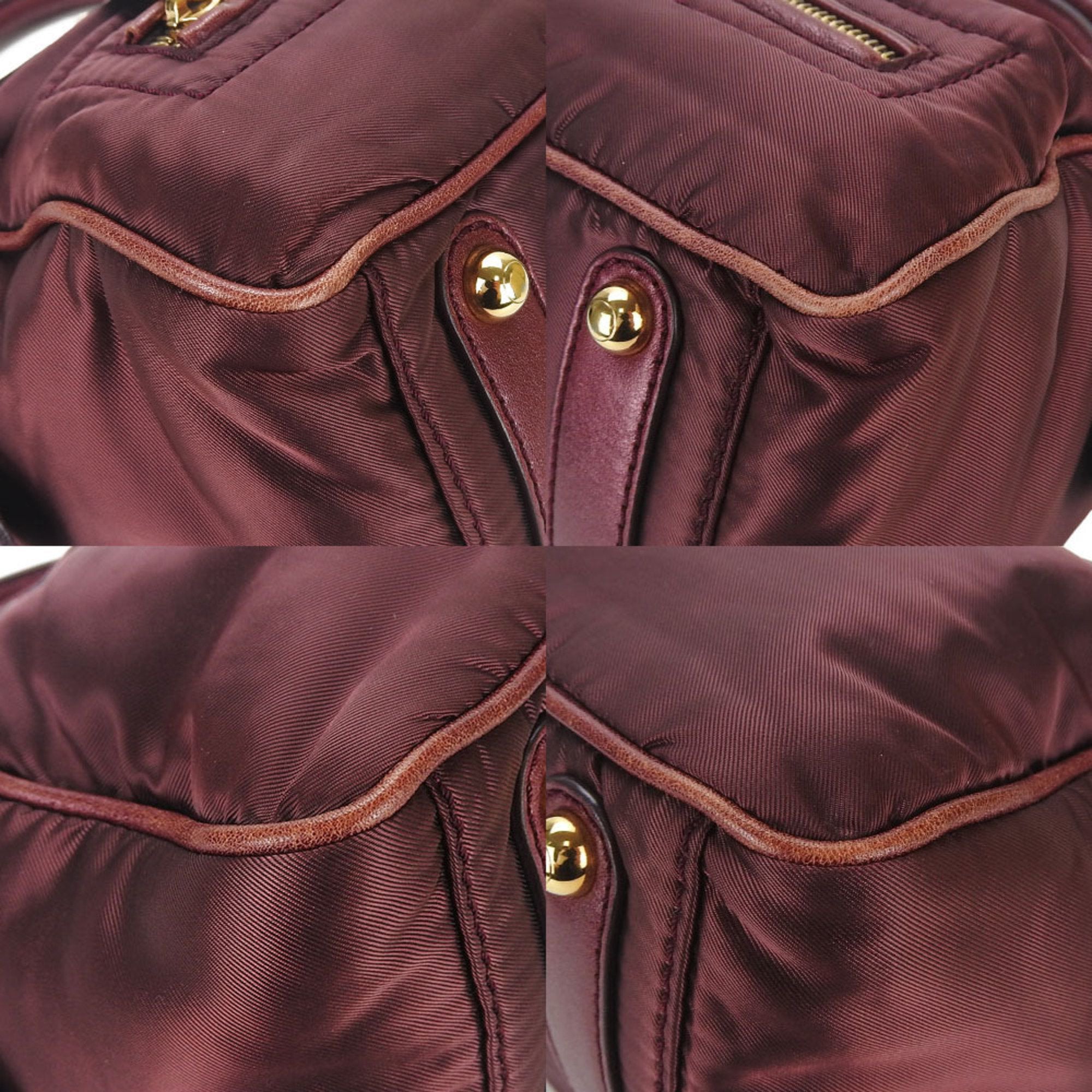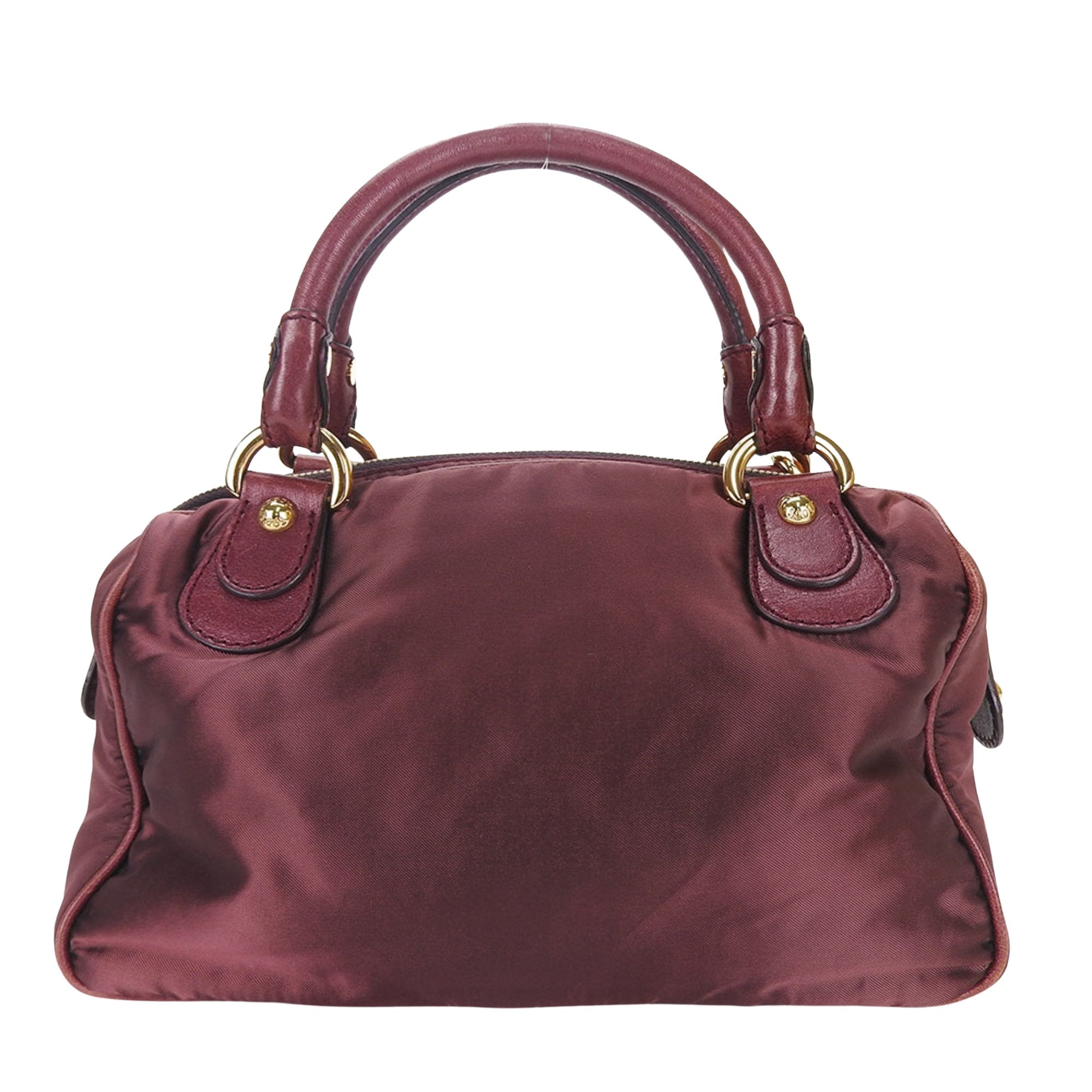 Bordeaux Nylon and Leather Handbag with Shoulder Strap