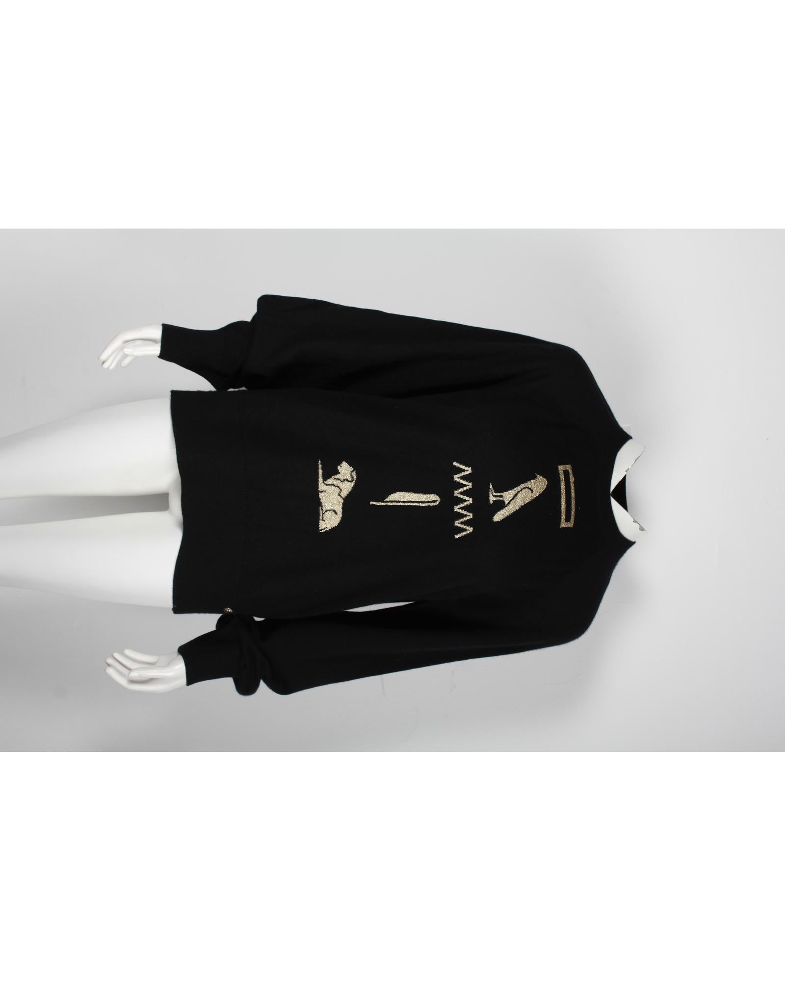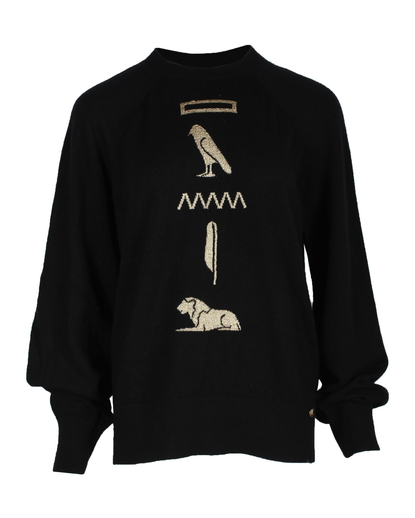 • Long sleeves and crew neck with an intricate hieroglyphic design