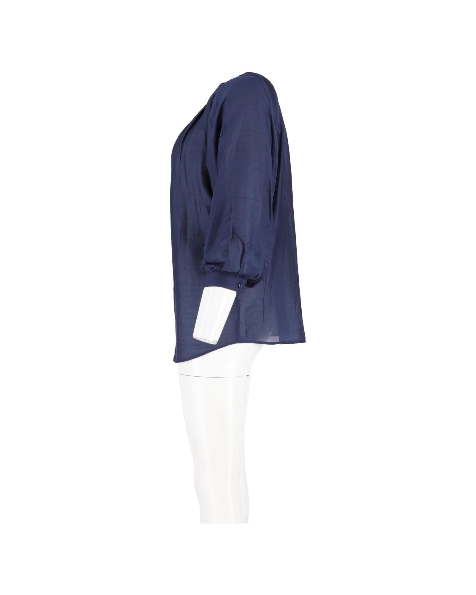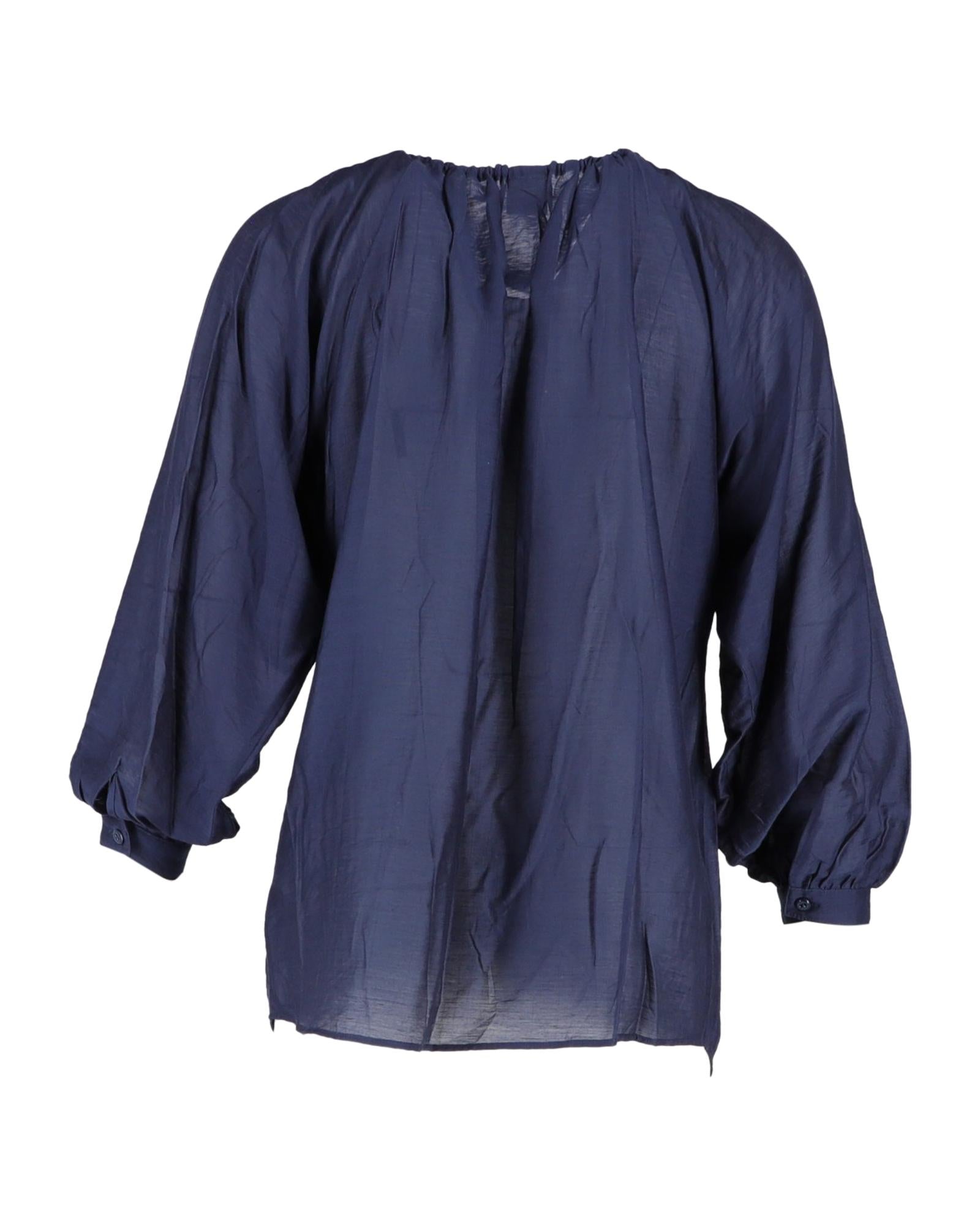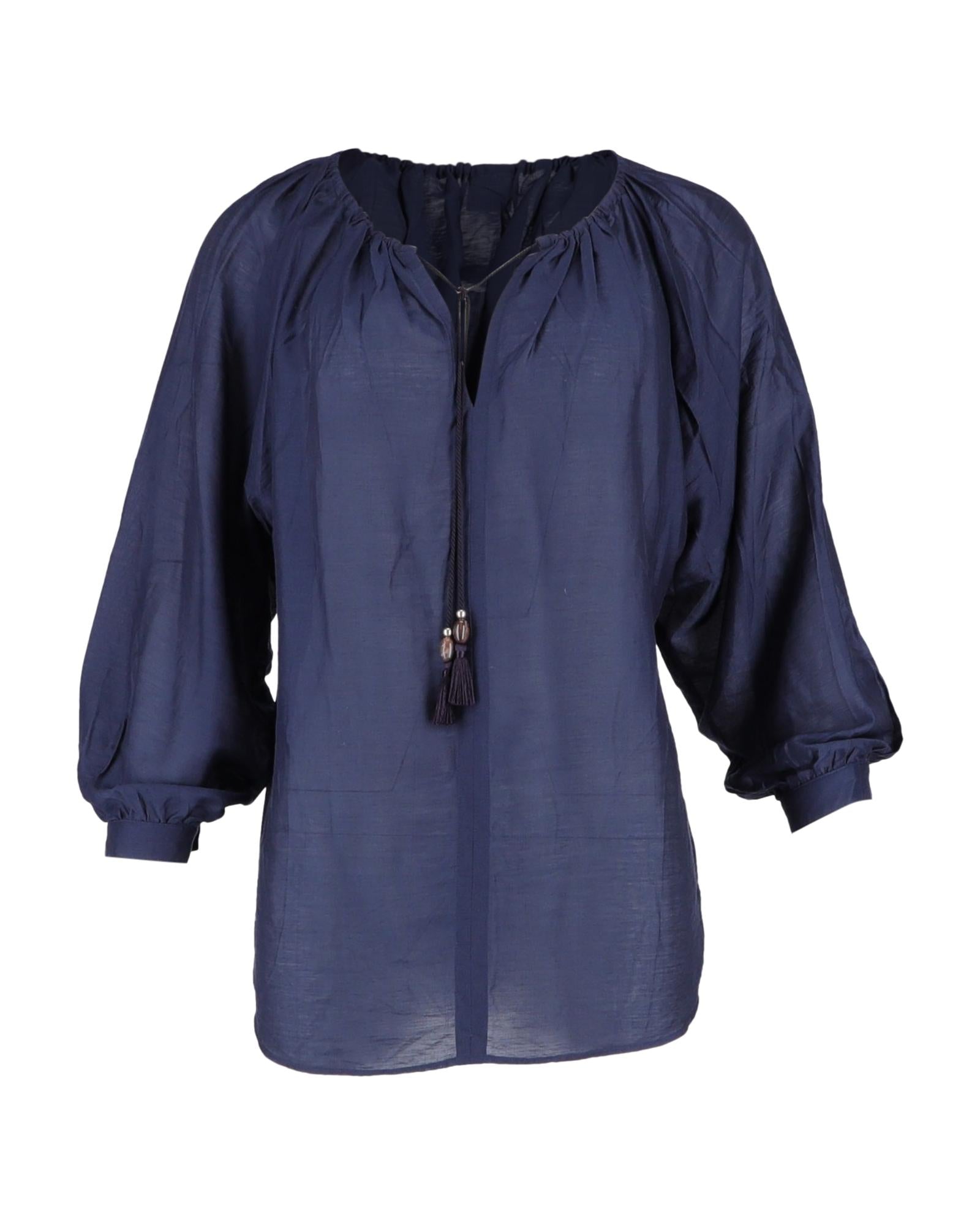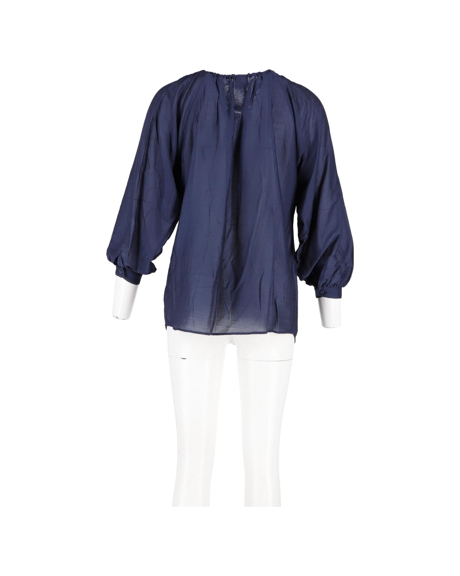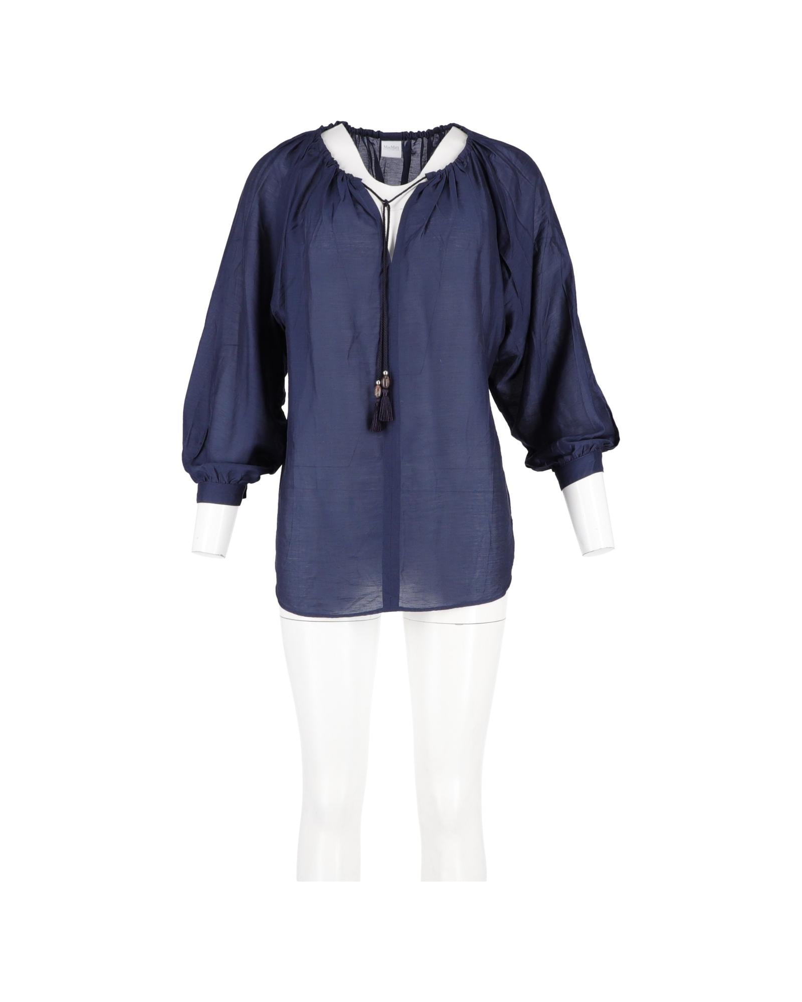 • Max Mara Tie Neck Detail Blouse in Navy Blue Cotton