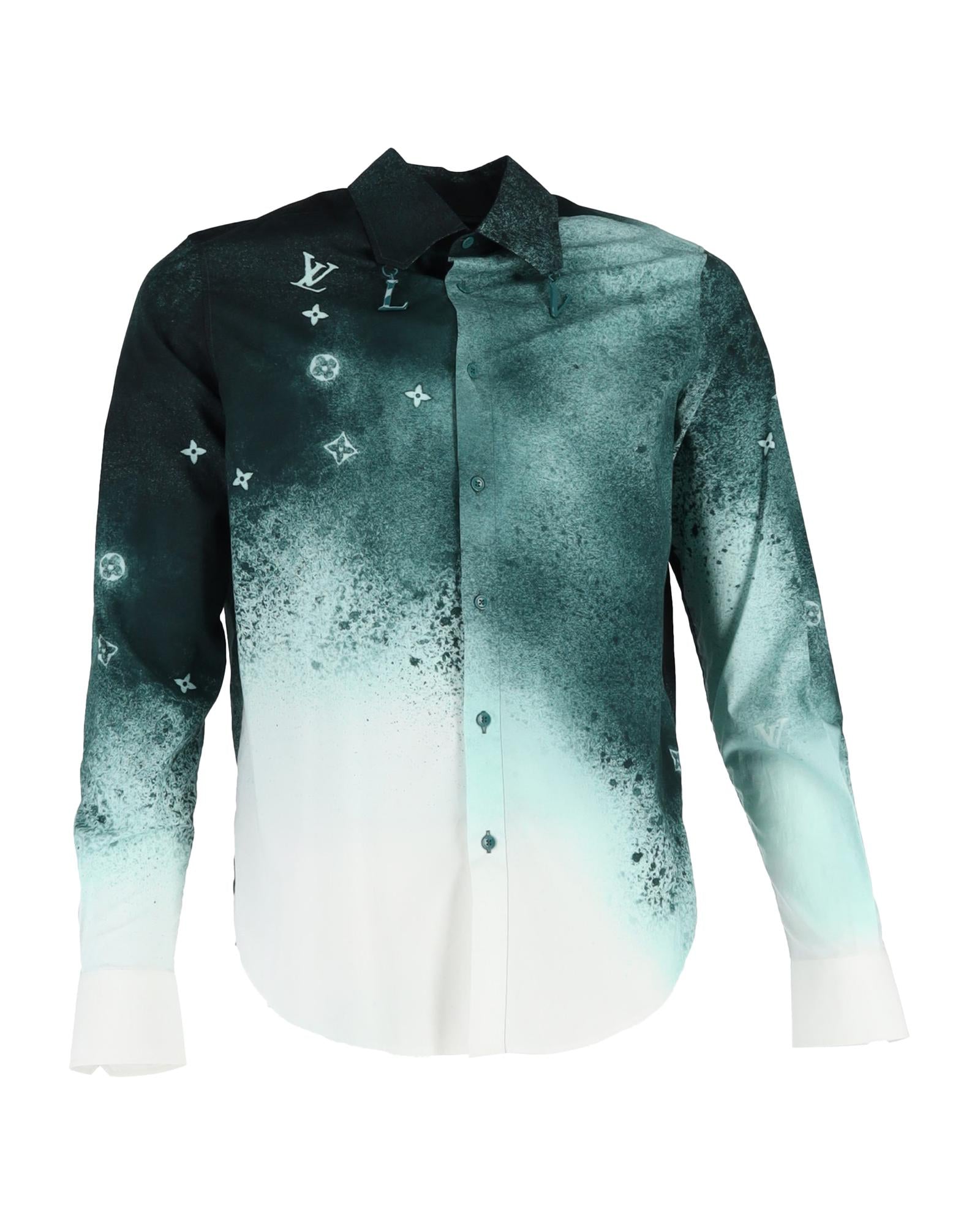 Pre-owned Printed Long Sleeve Shirt with Classic Collar and Button Closure