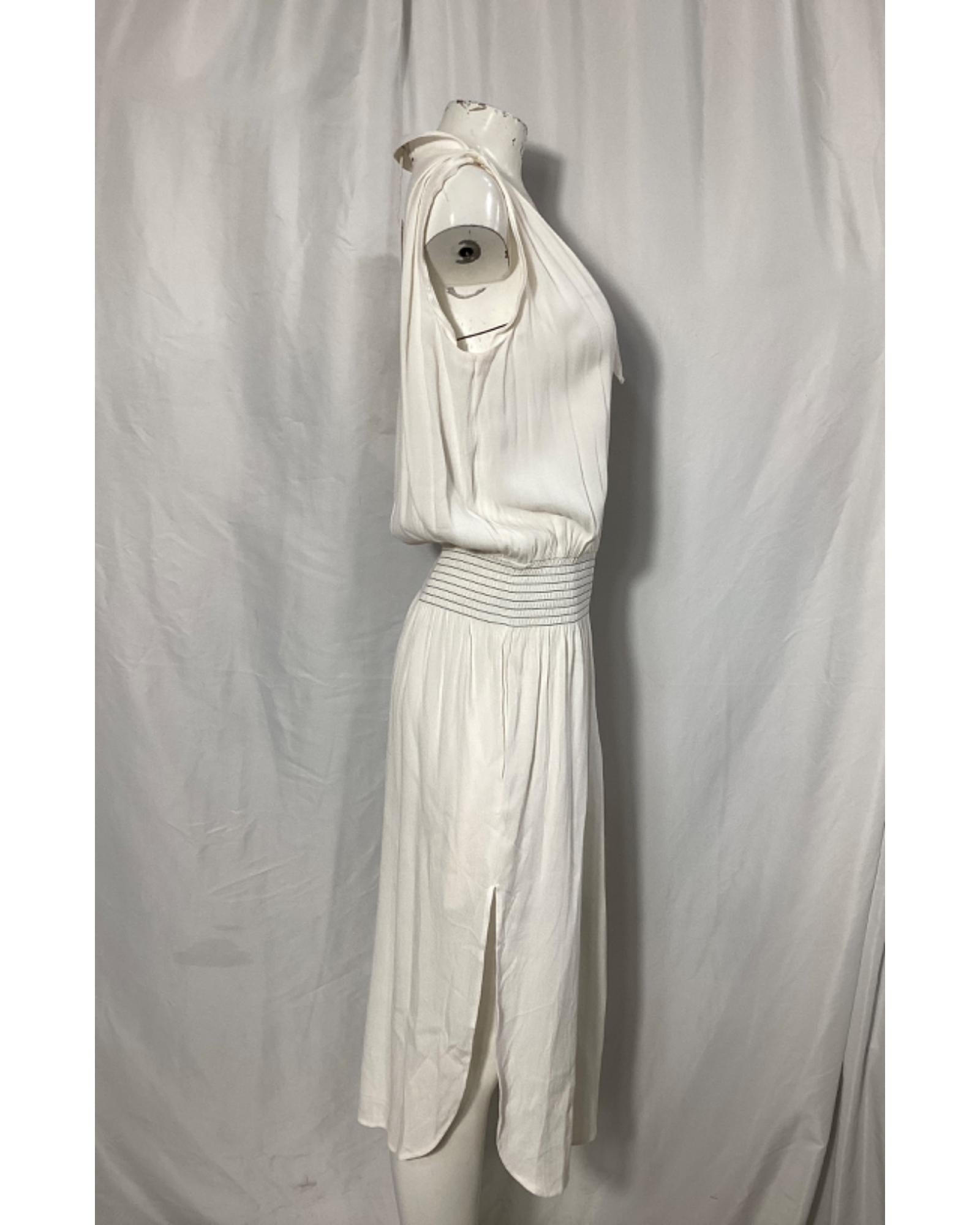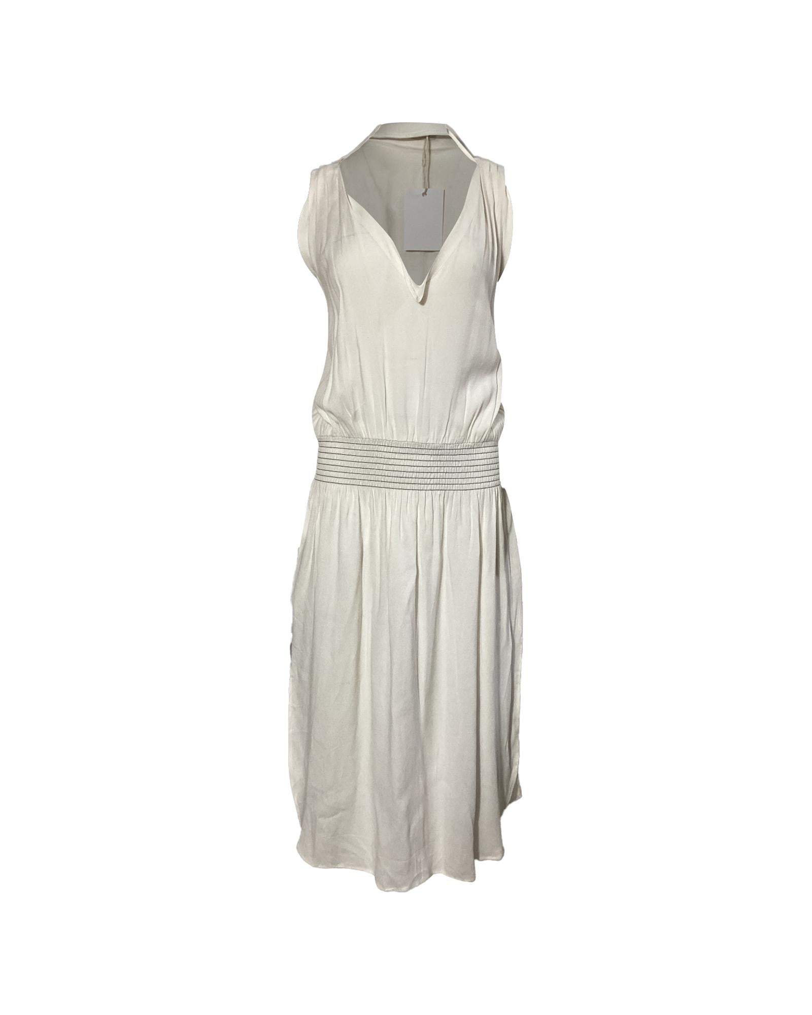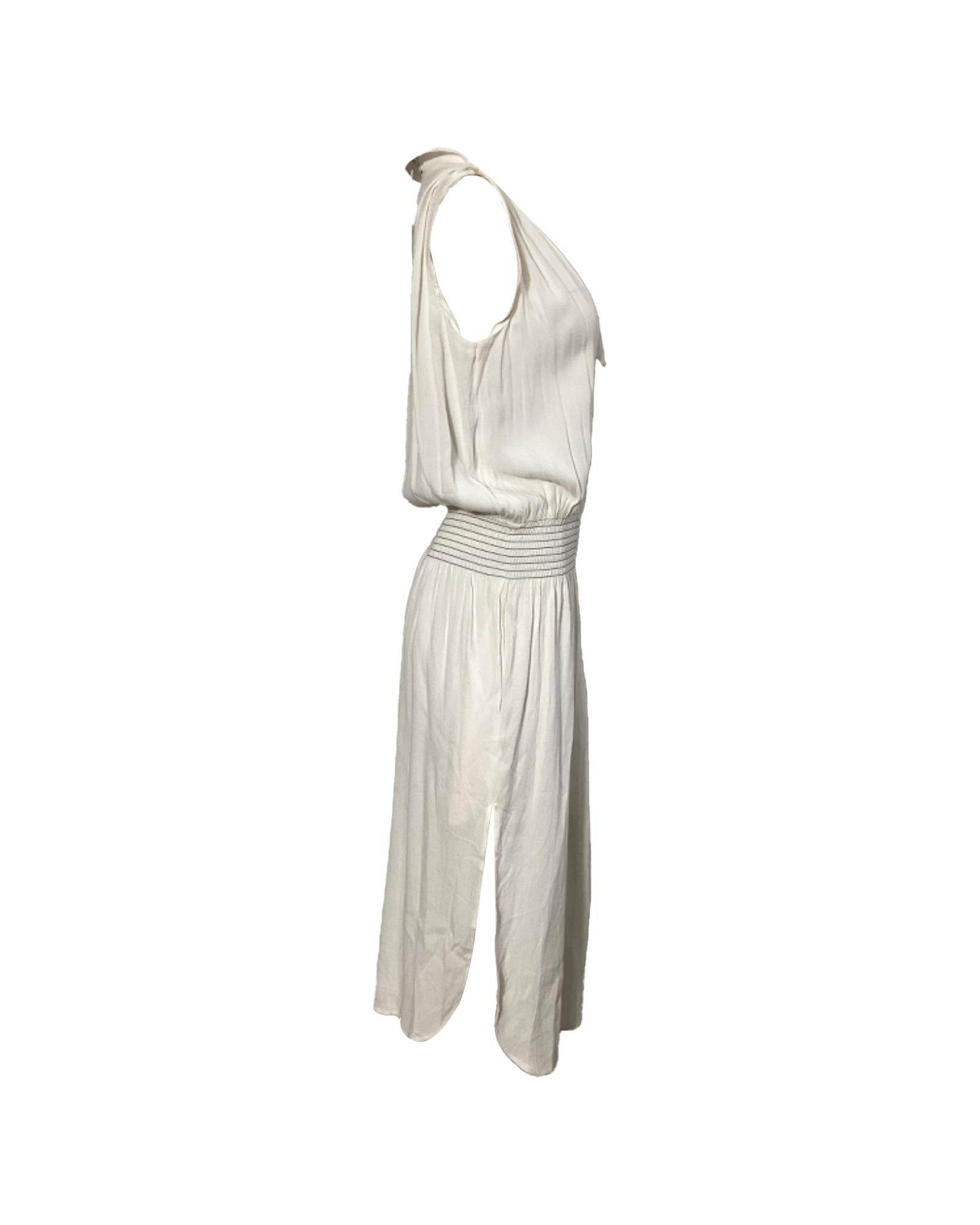 • Toteme Plunged Shirred Waist Midi Dress in White Viscose