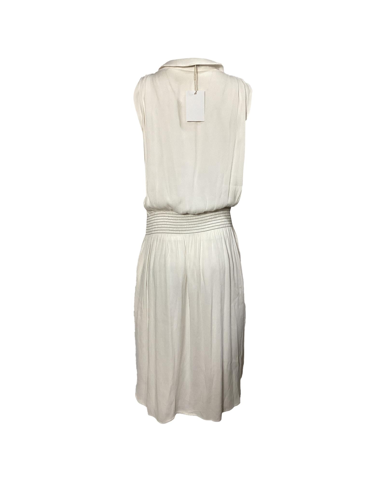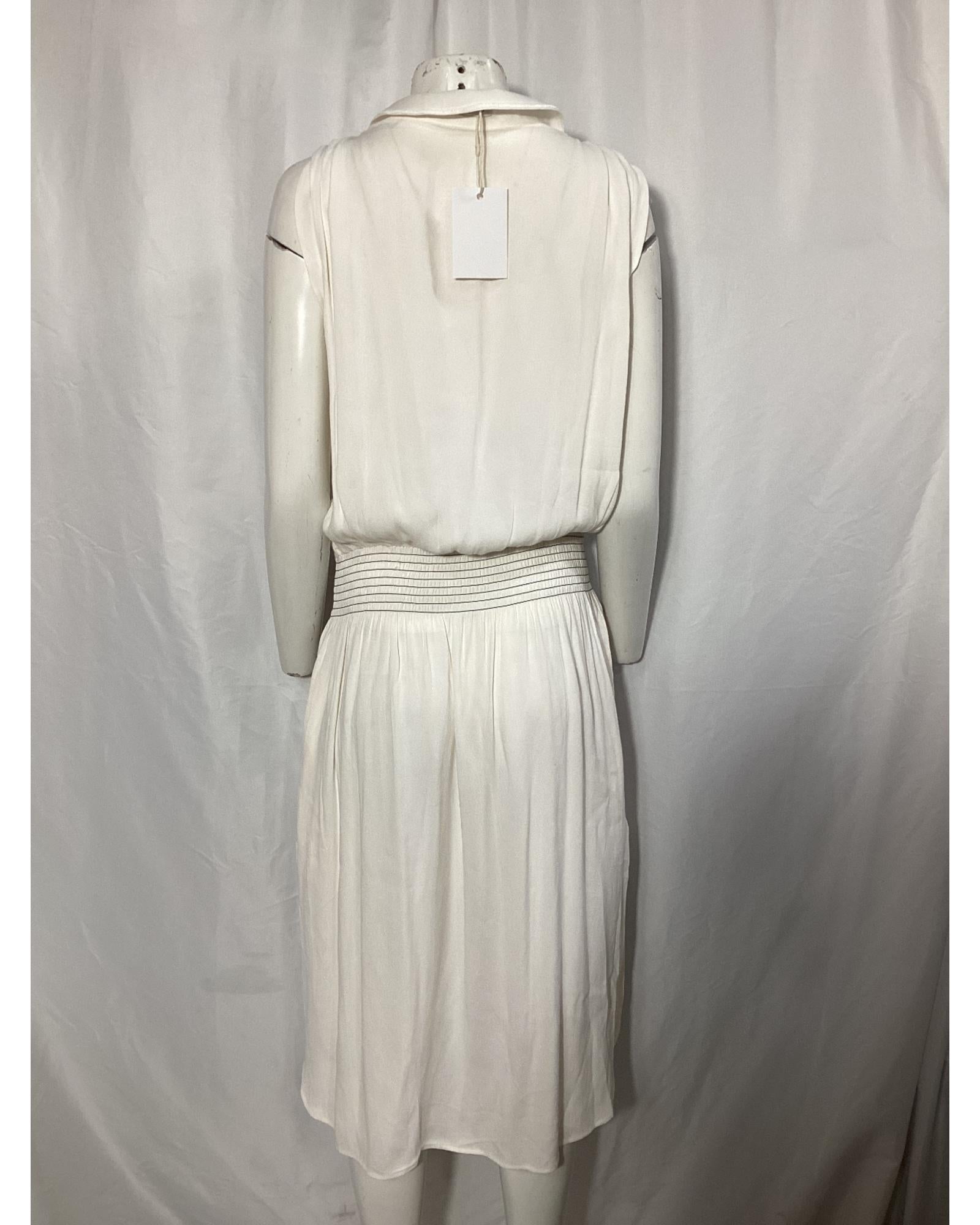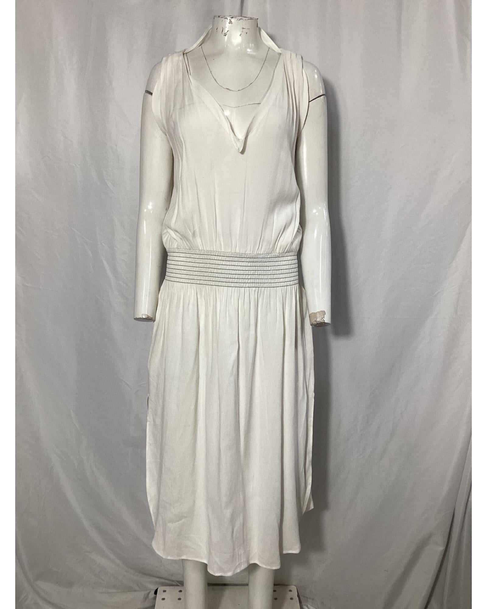 • Toteme Plunged Shirred Waist Midi Dress in White Viscose