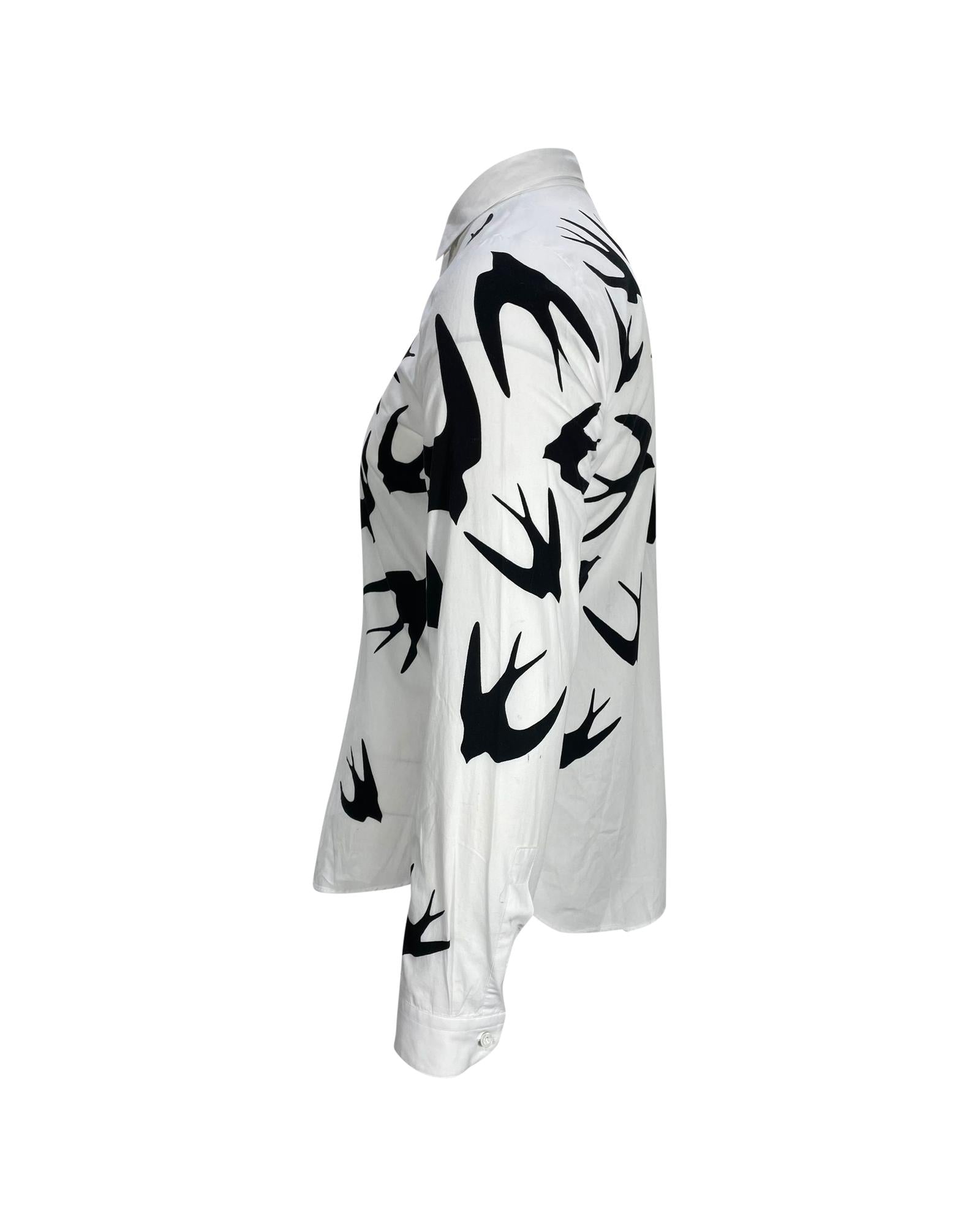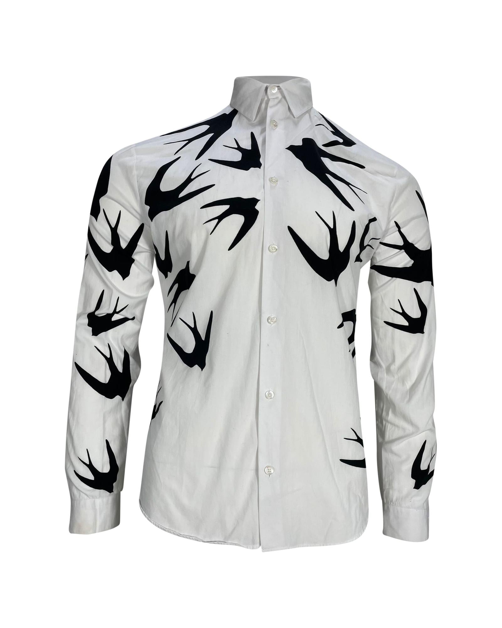 - Alexander McQueen Printed Long Sleeve Shirt in White Cotton