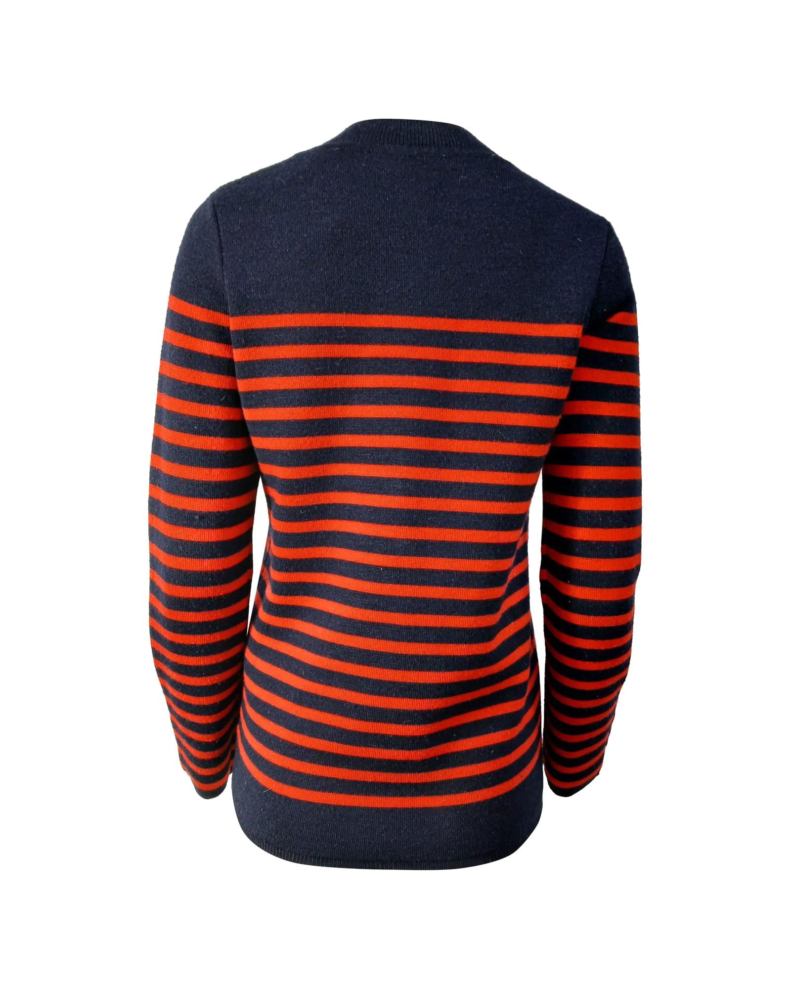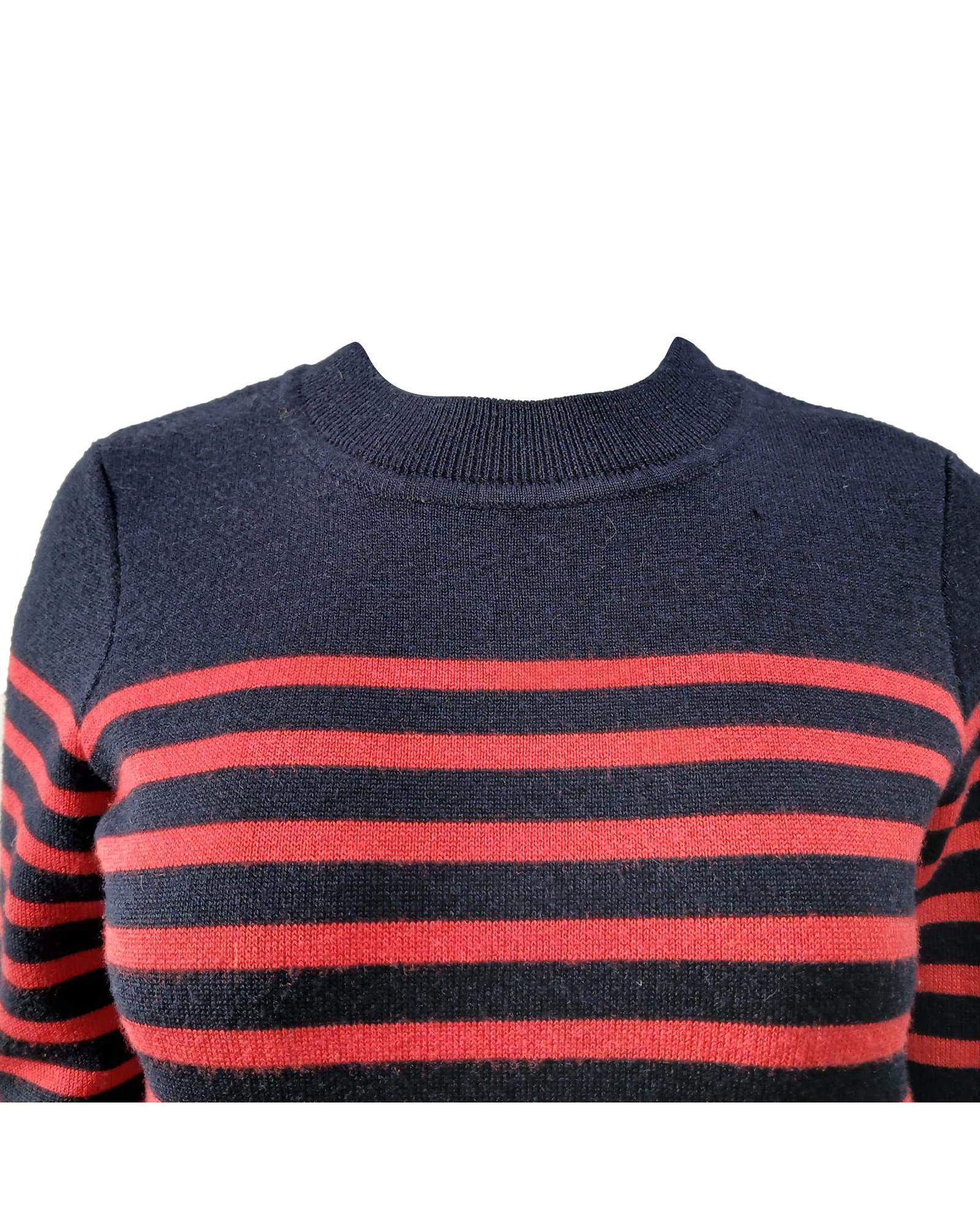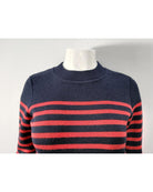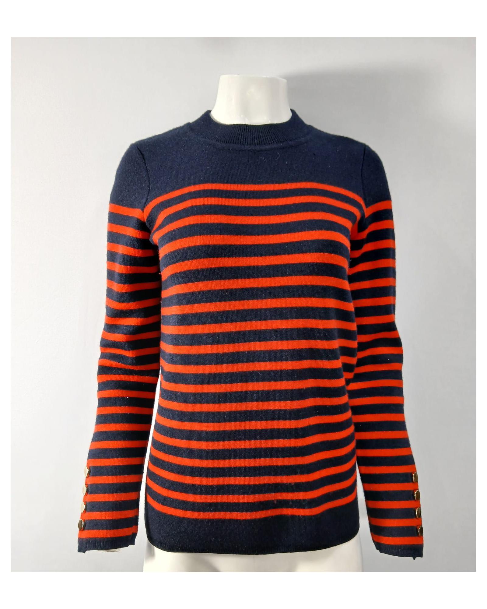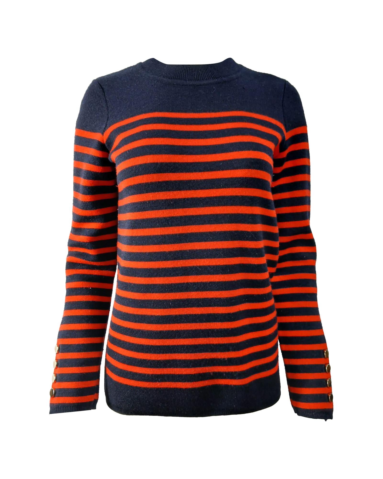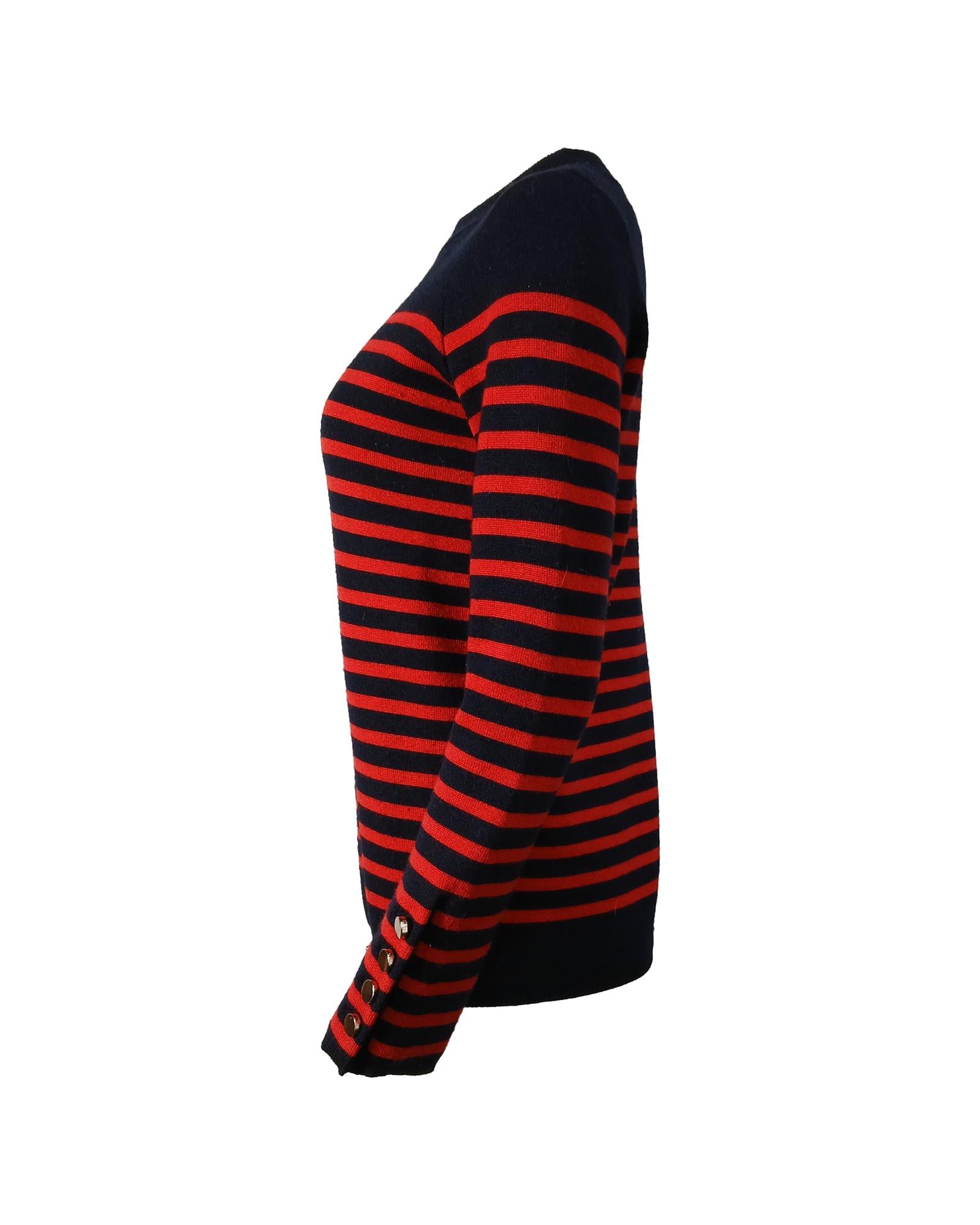 Striped Wool Sweater with Button Cuffs and Ribbed Trim