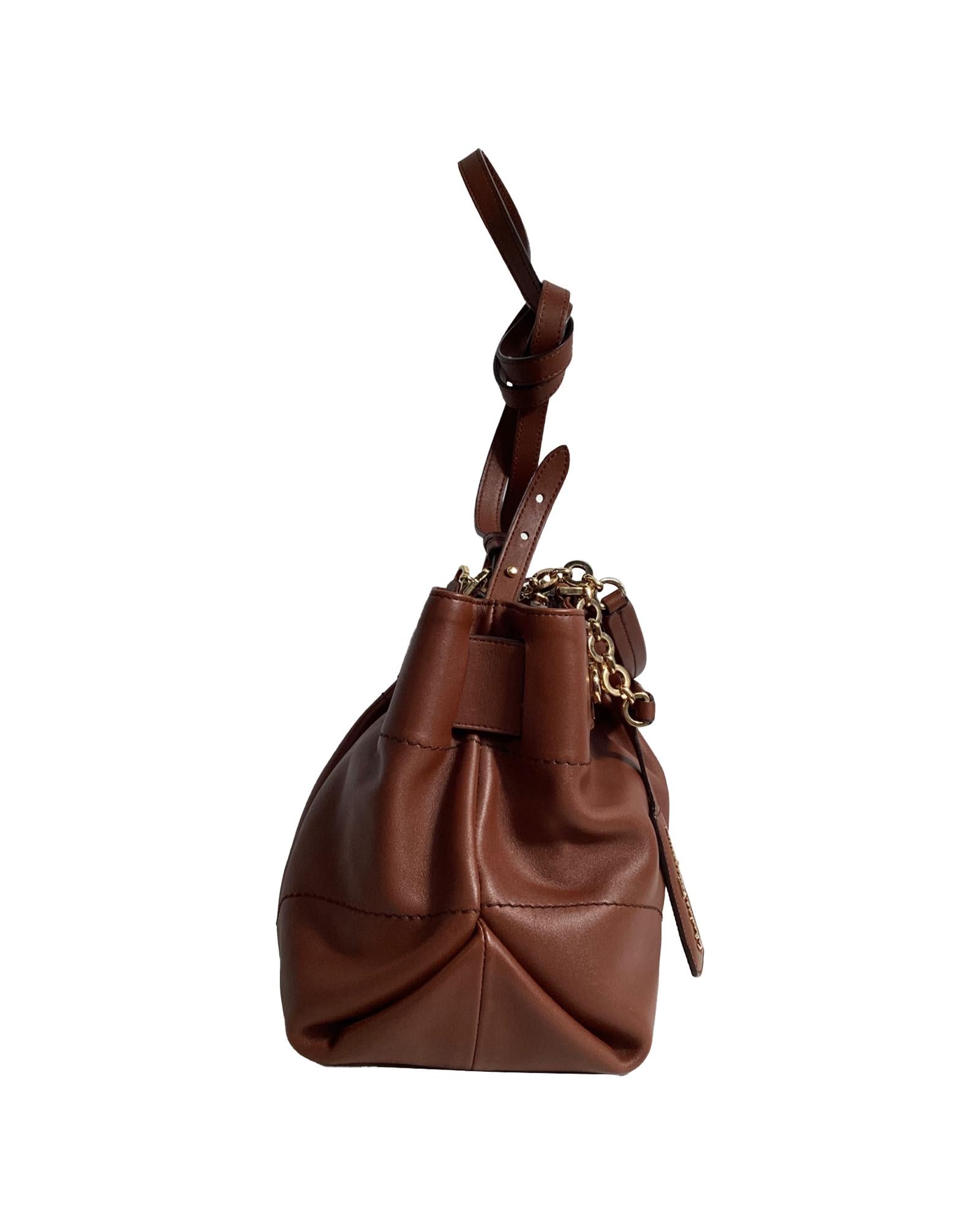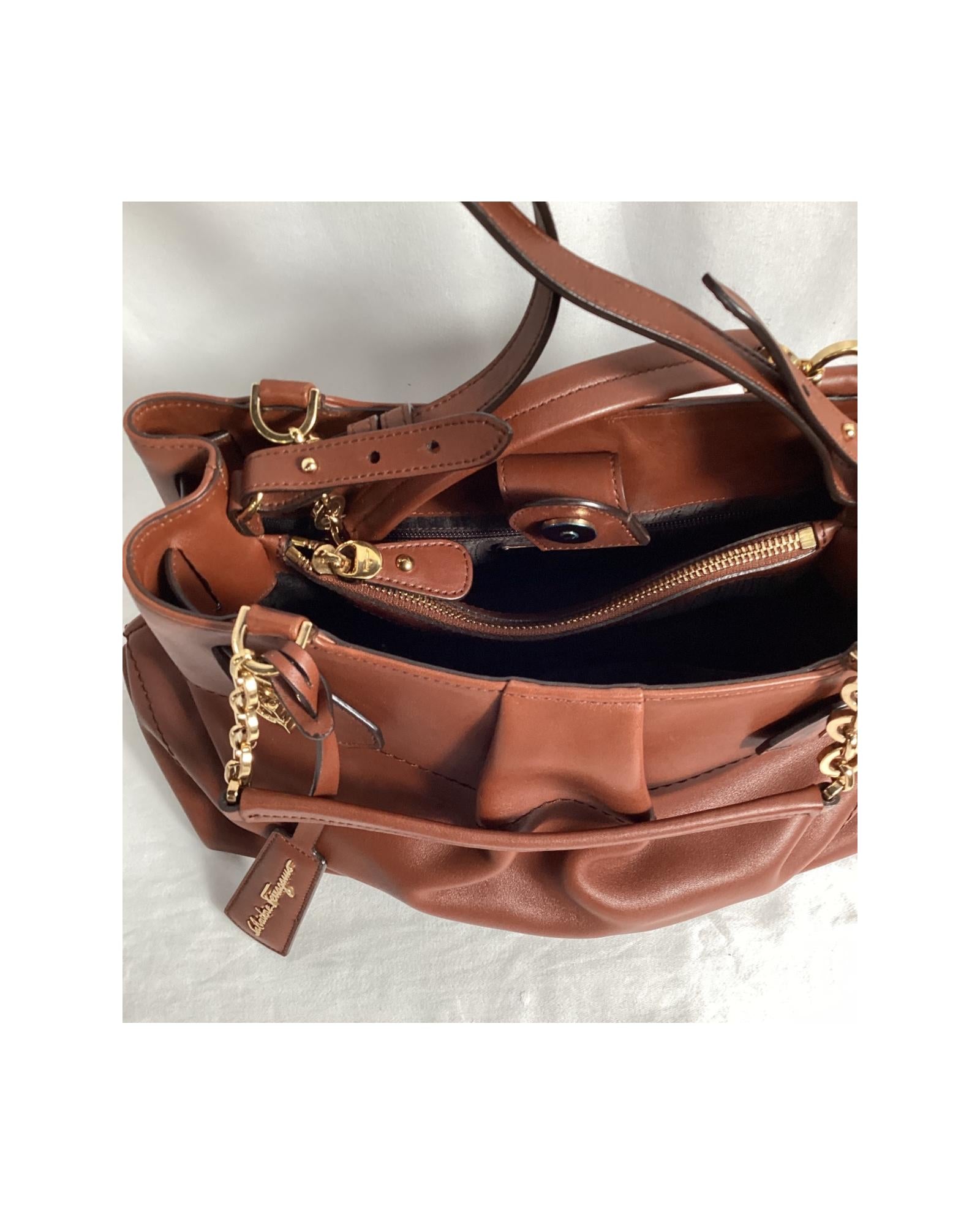 - Salvatore Ferragamo Gancio Shoulder Bag in Brown Leather