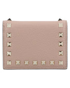 Small Leather Wallet with Studded Detail Compact Bifold Purse Accessory