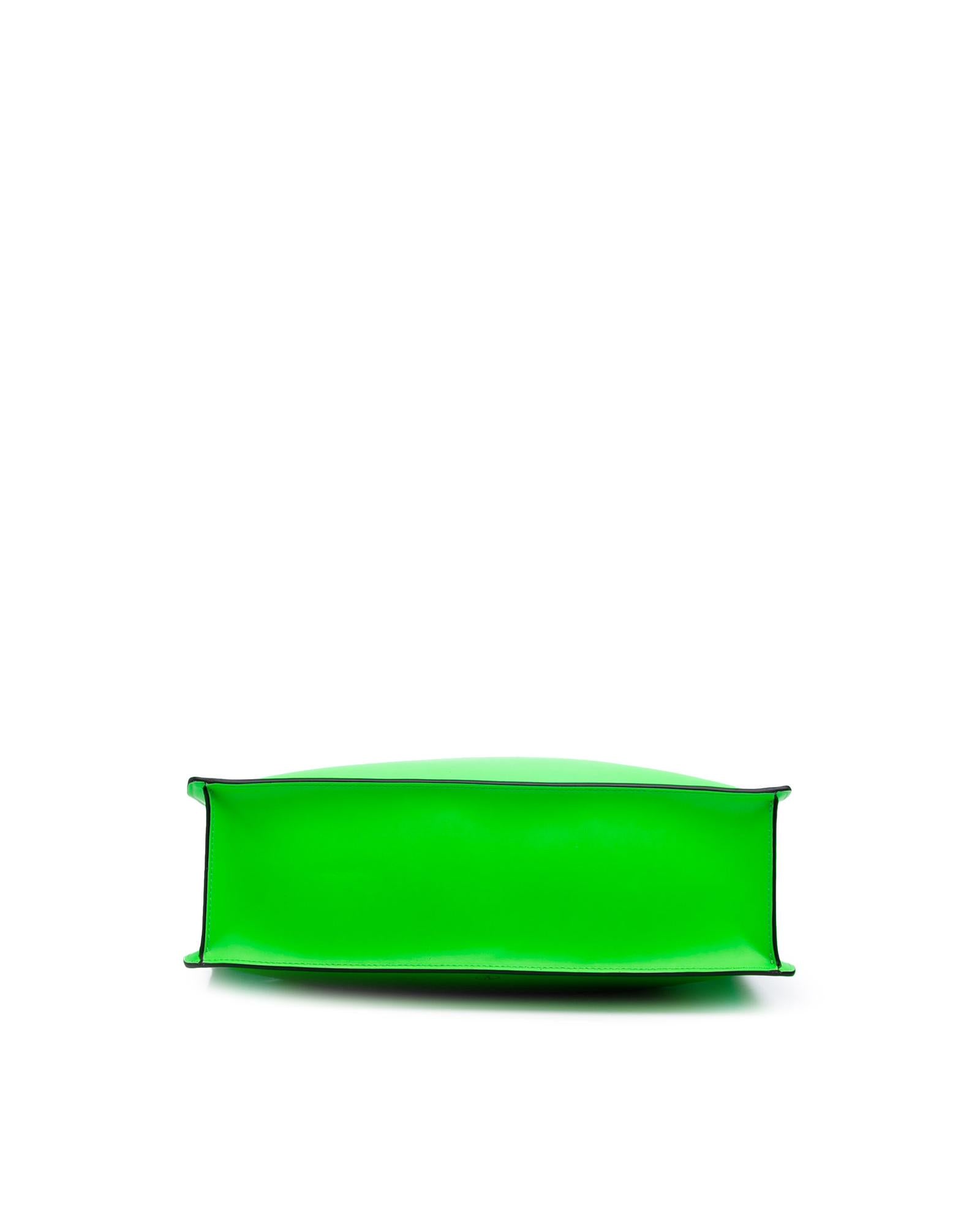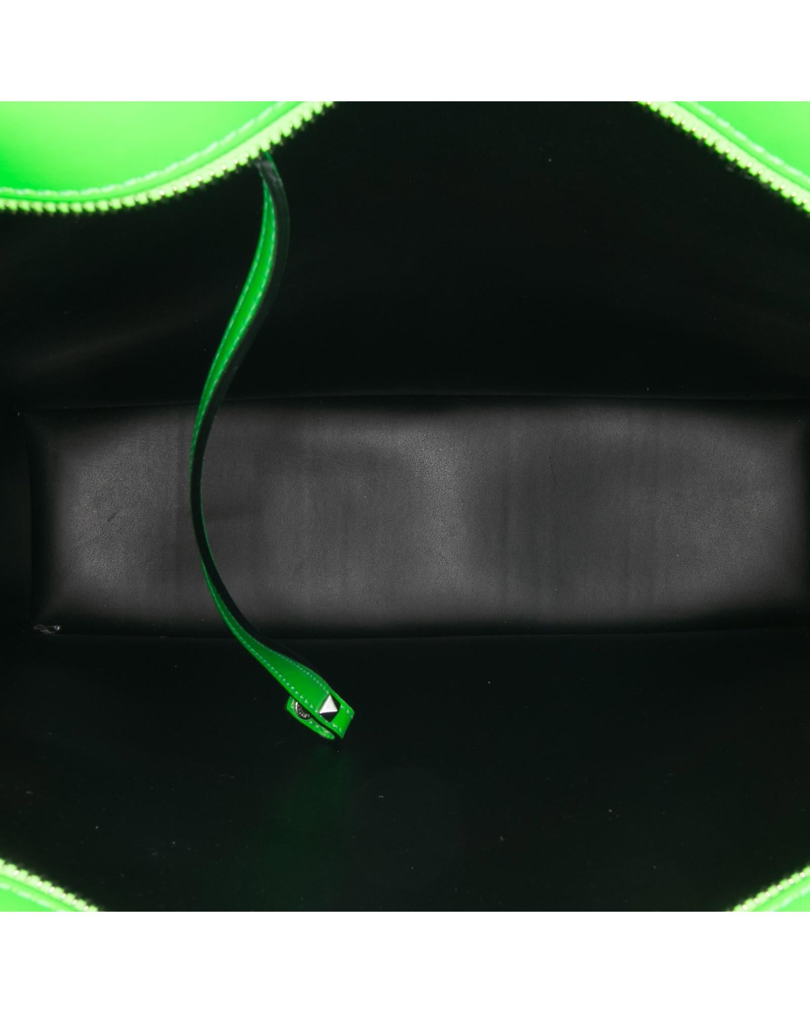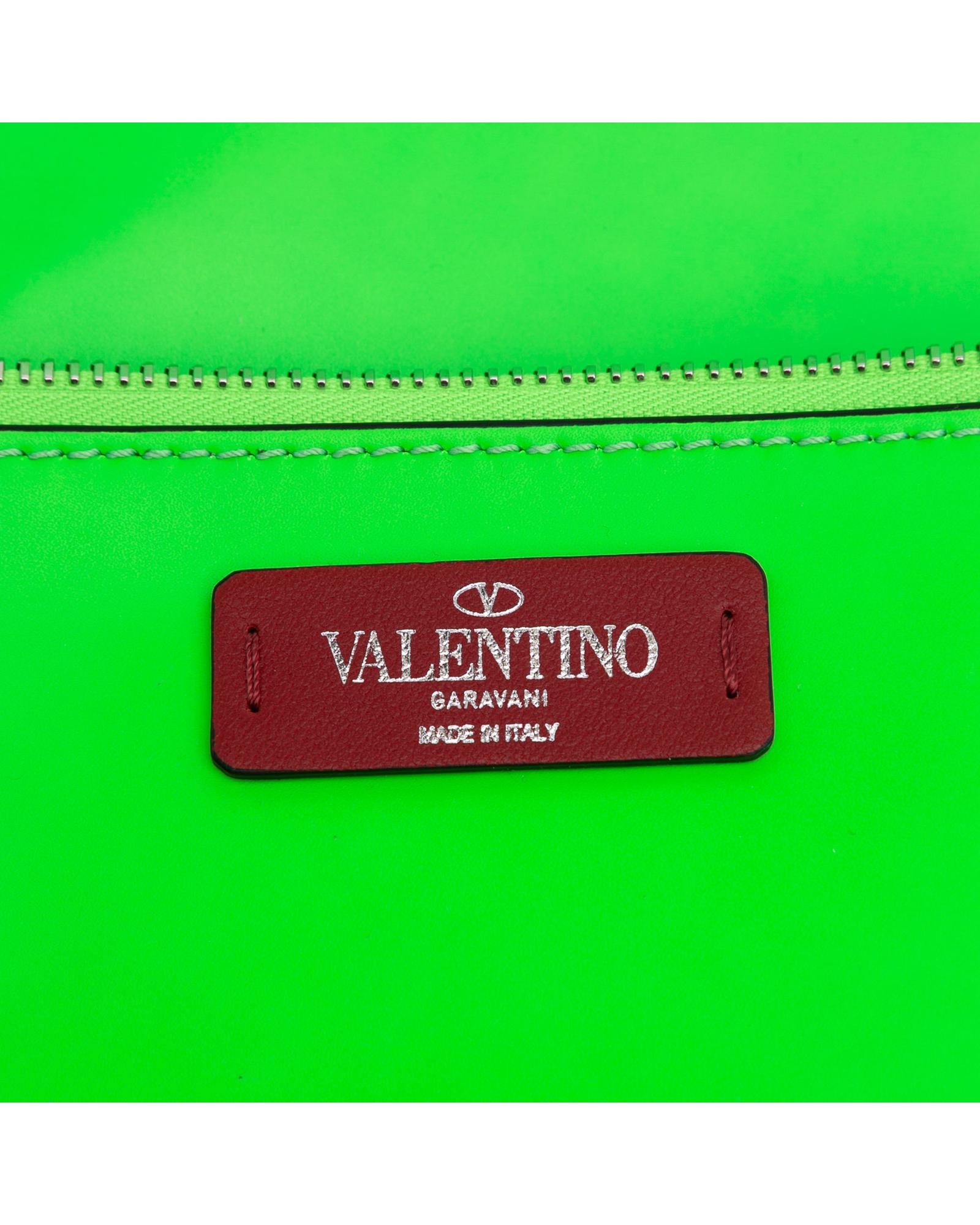 This satchel features a leather body flat handles an adjustable and detachable flat strap a top zip closure and a detachable zip pouch.