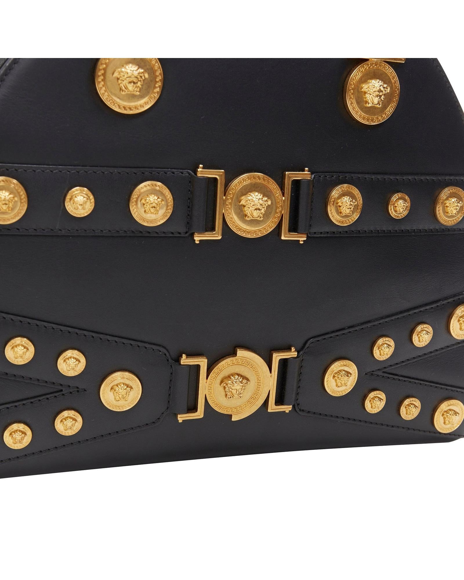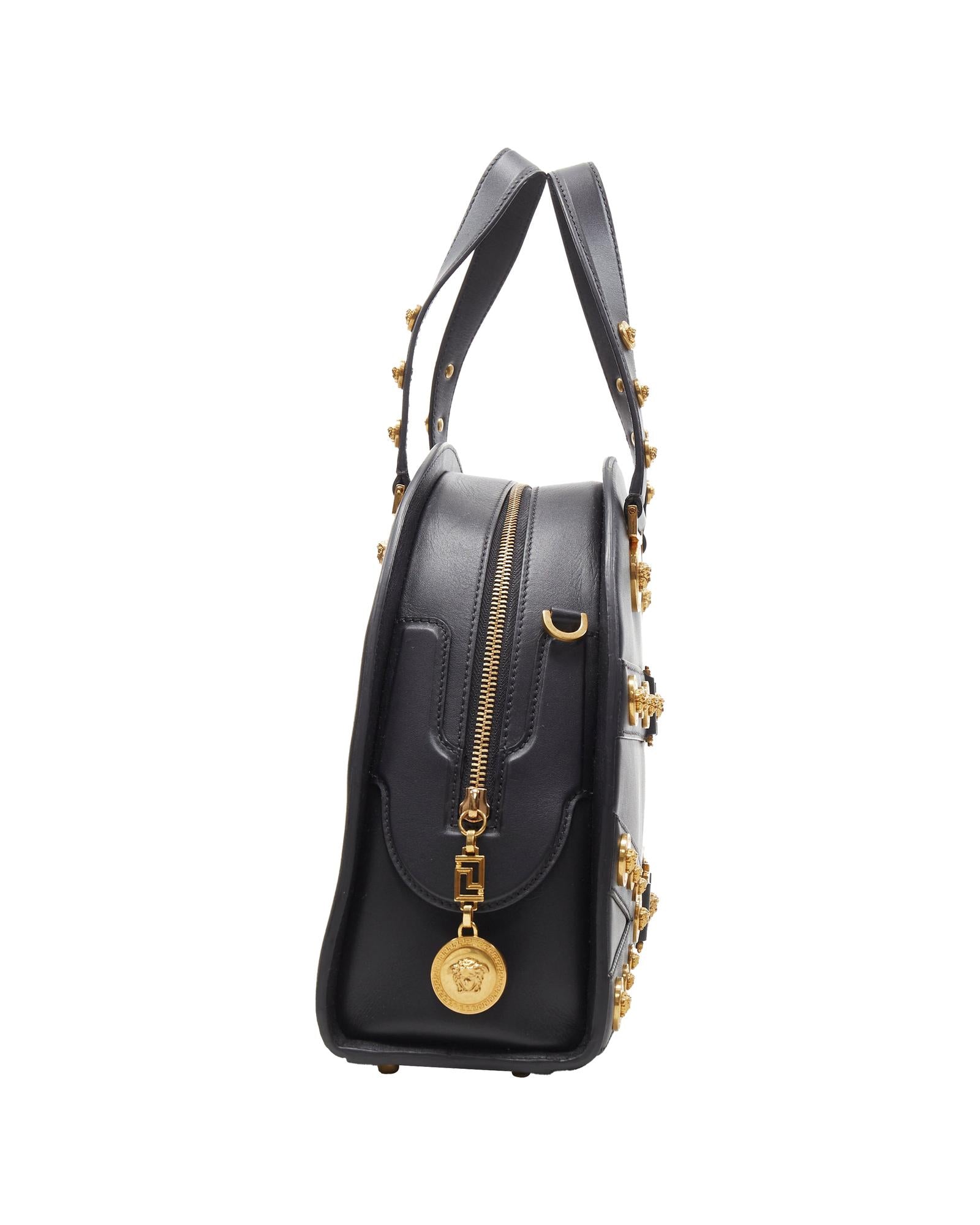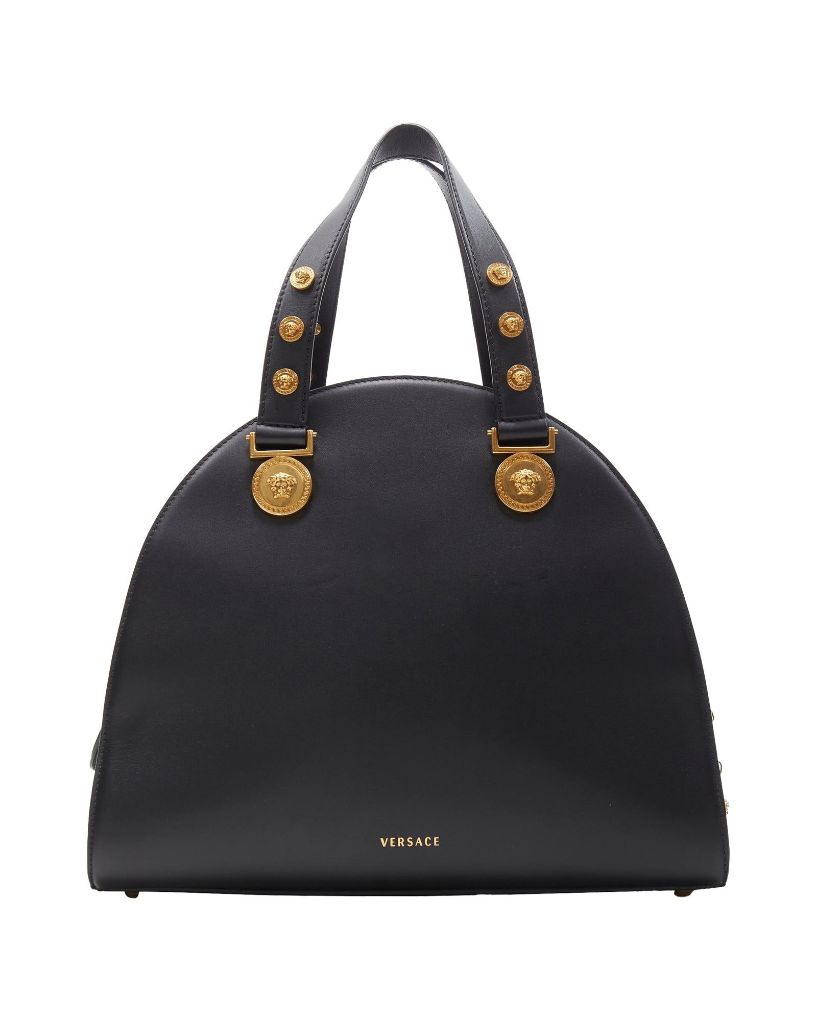 Structured Handbag with Medallion Embellishments and Top Handles