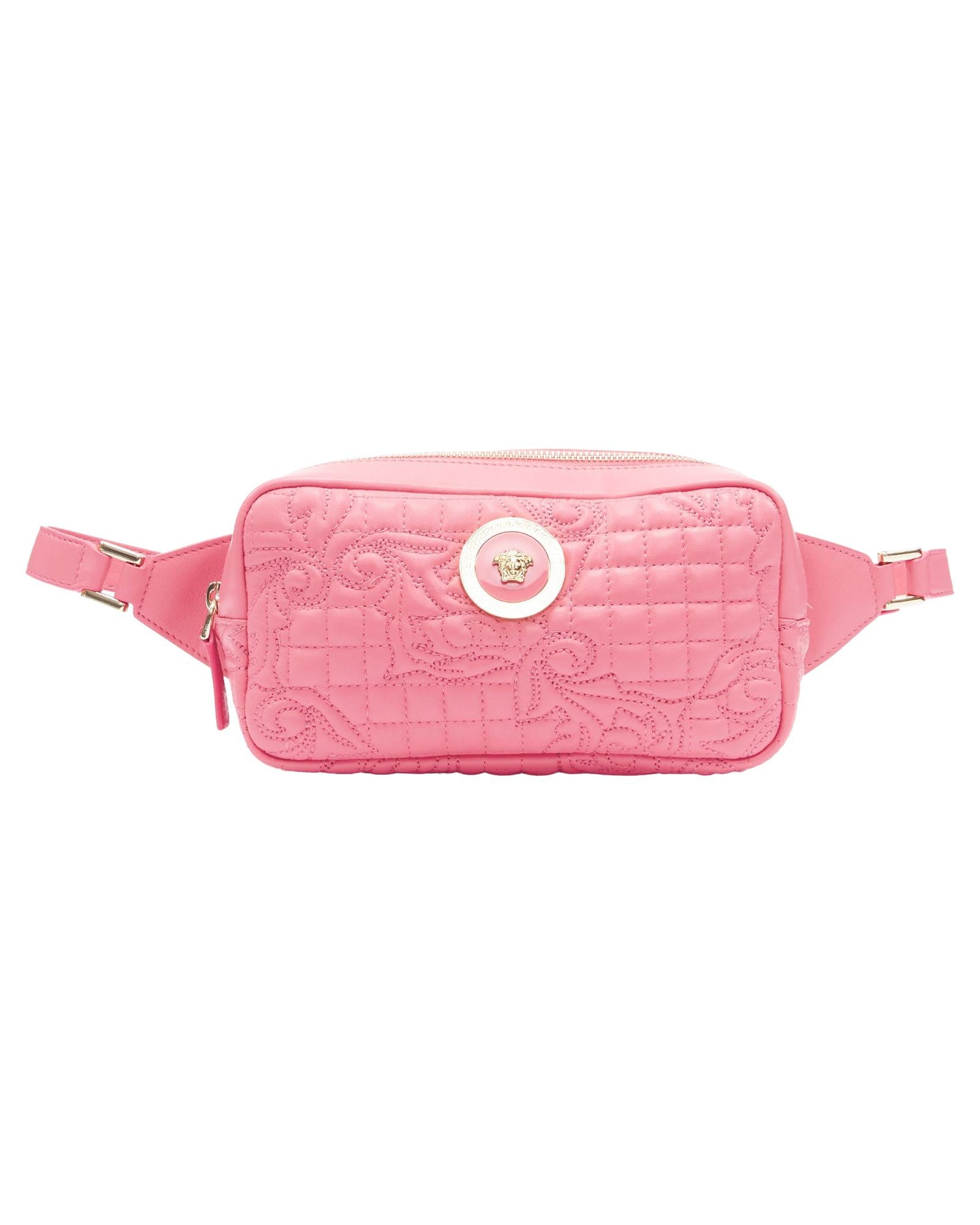 Quilted Leather Belt Bag with Embellished Detail Adjustable Strap