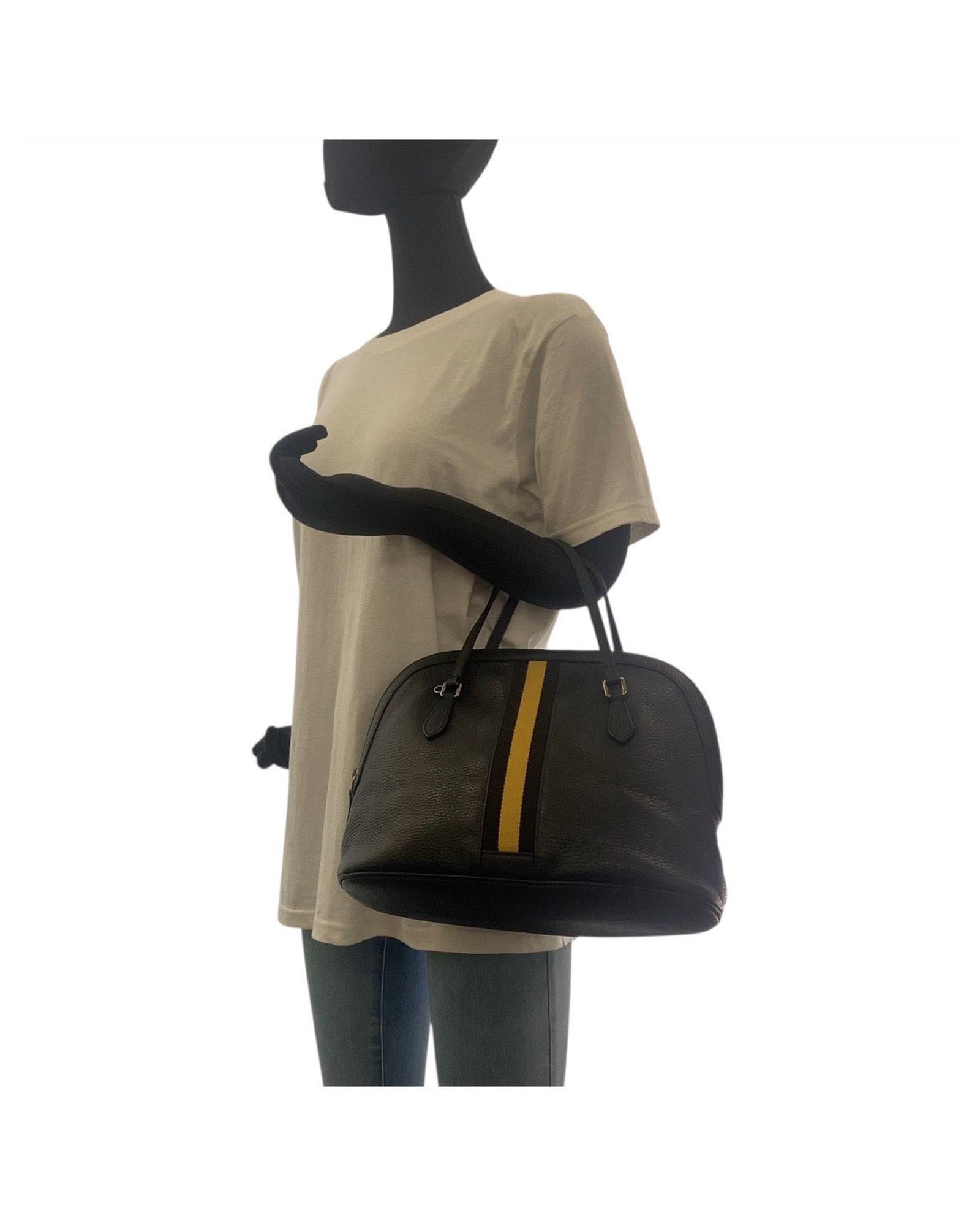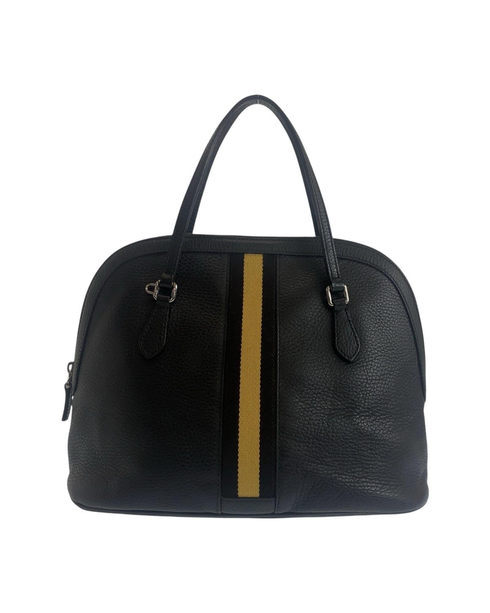 Pre-owned Striped Leather Tote Bag with Top Handle and Zip Closure