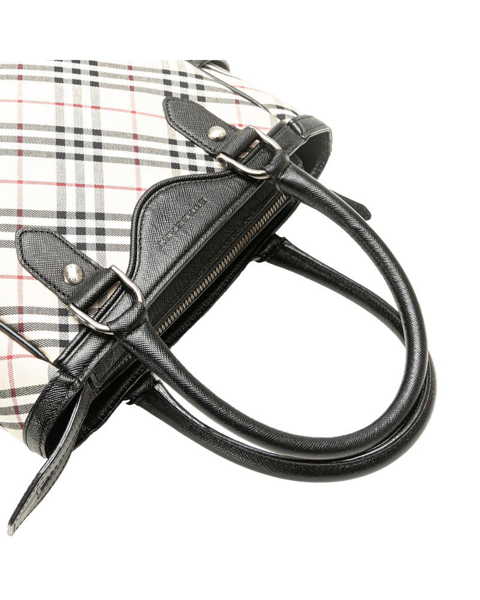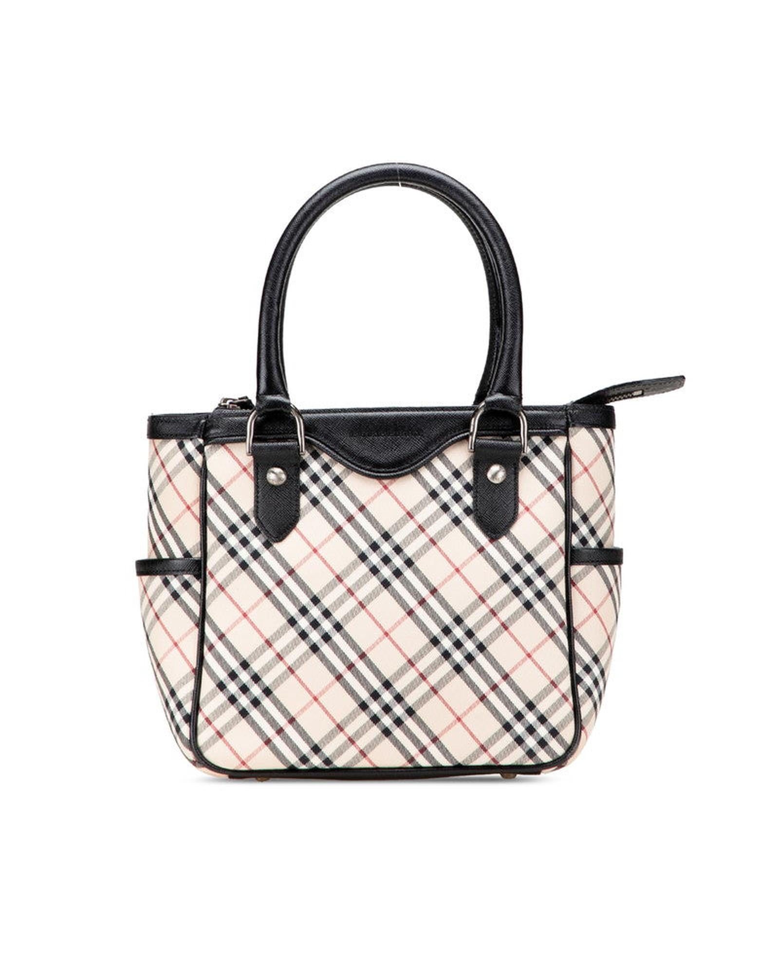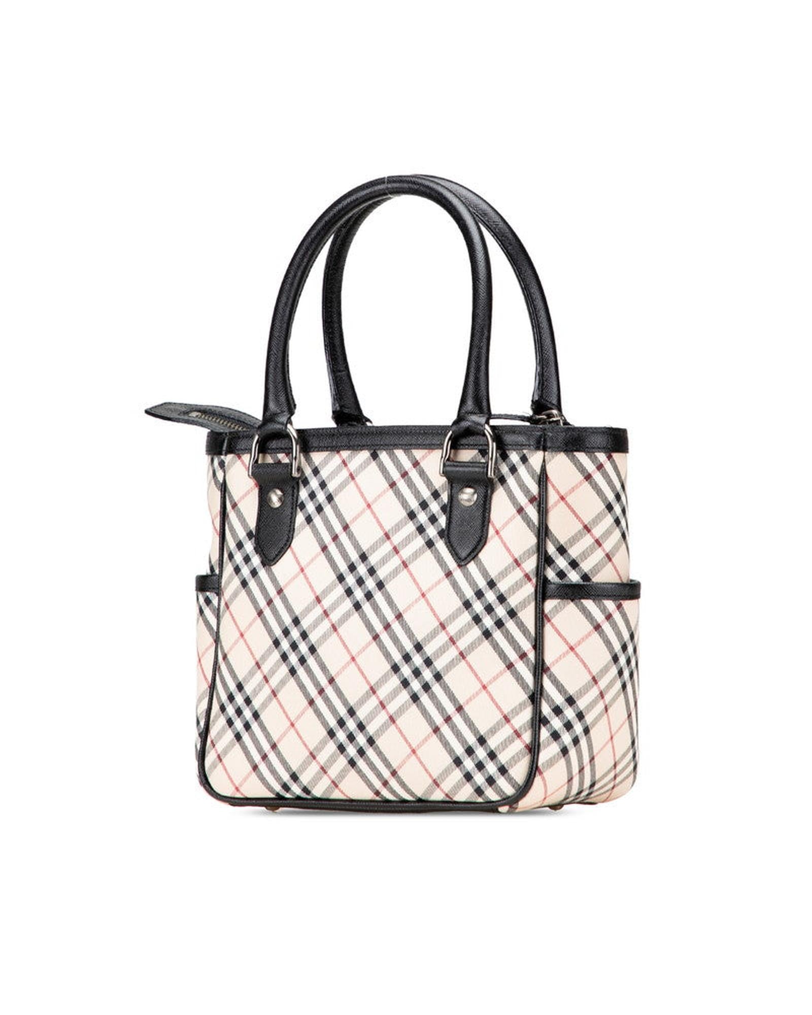 Pre-owned Structured Top Handle Bag with Plaid Pattern and Exterior Pockets