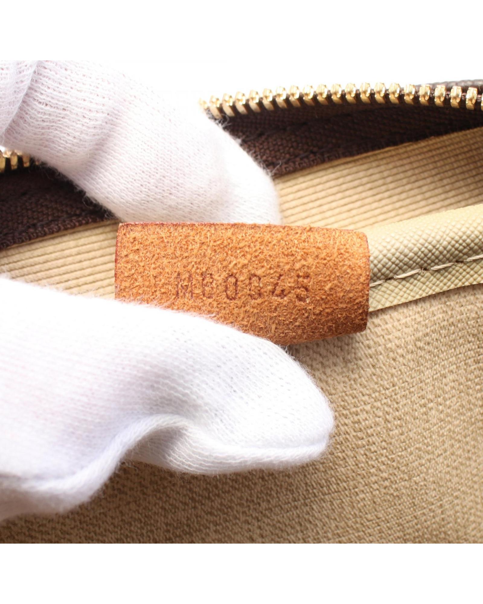 Pre-owned Elegant Leather Handbag with Monogram Detailing and Durable Top Handles