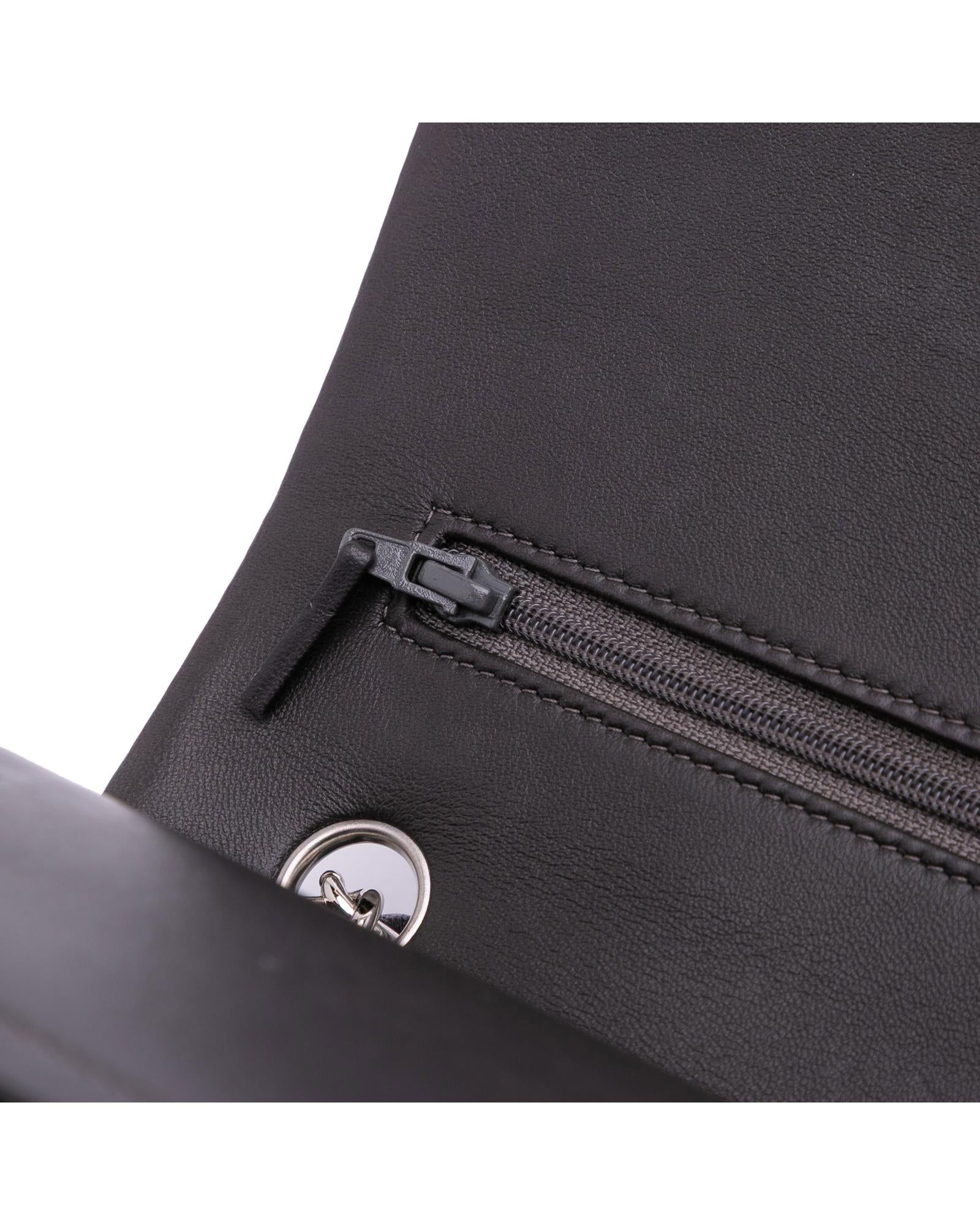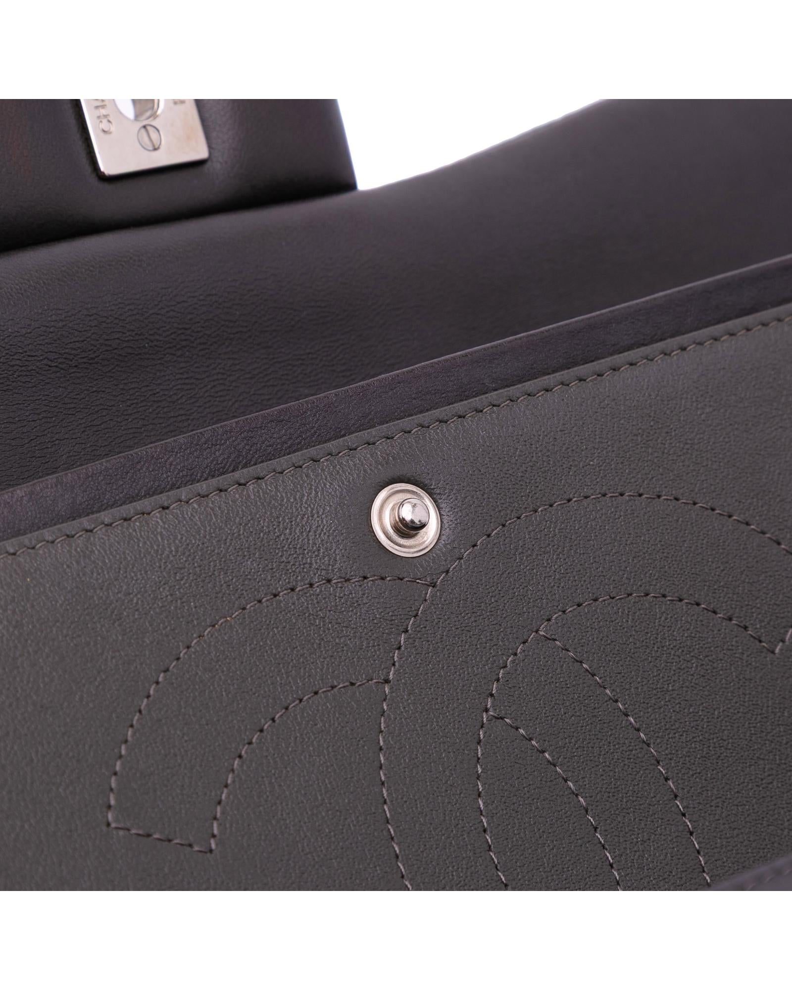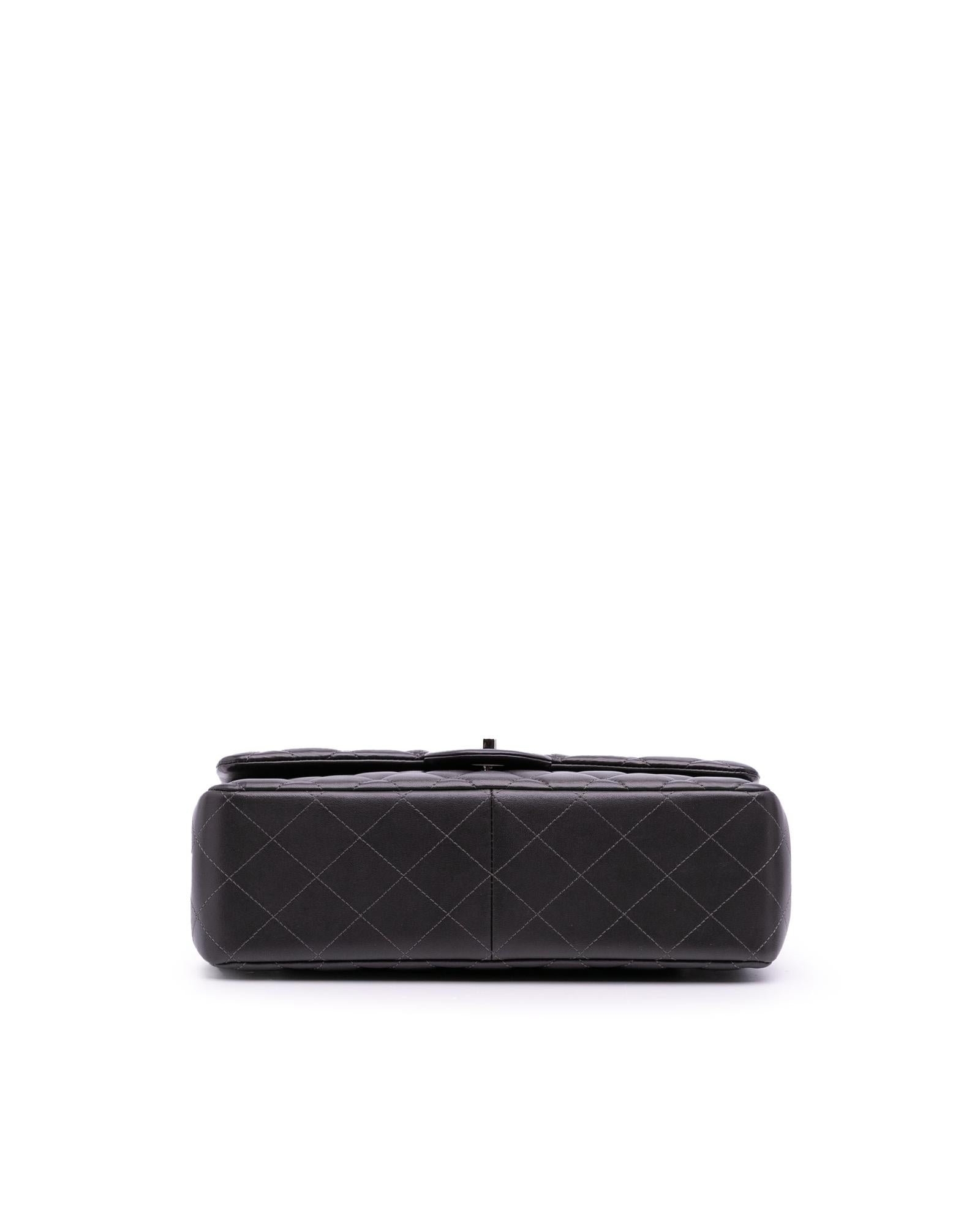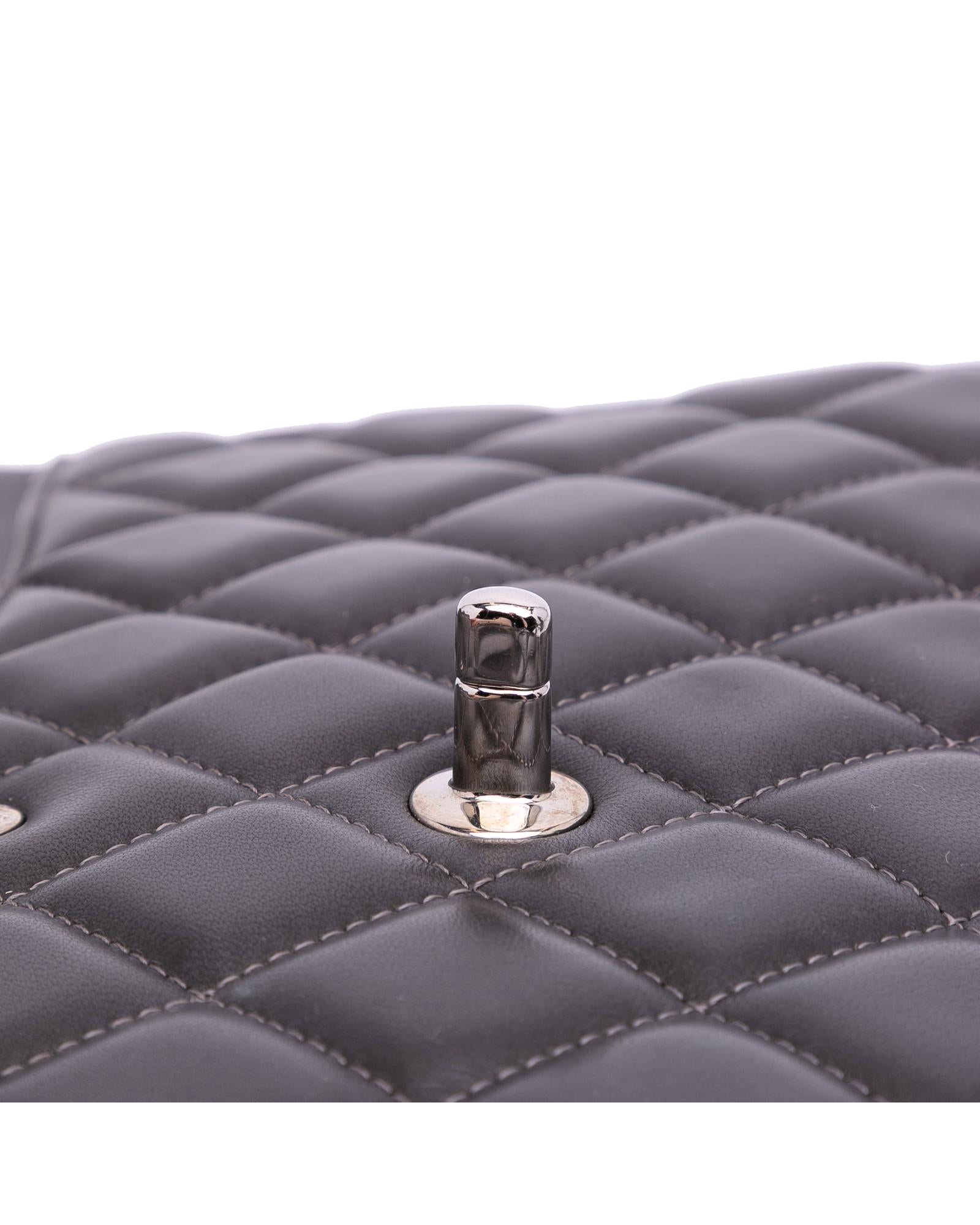 This shoulder bag features a quilted lambskin leather body leather-woven chain straps double front flaps with CC turn-lock closure an exterior back slip pocket and interior zip and slip pockets.Brand: Chanel Vintage