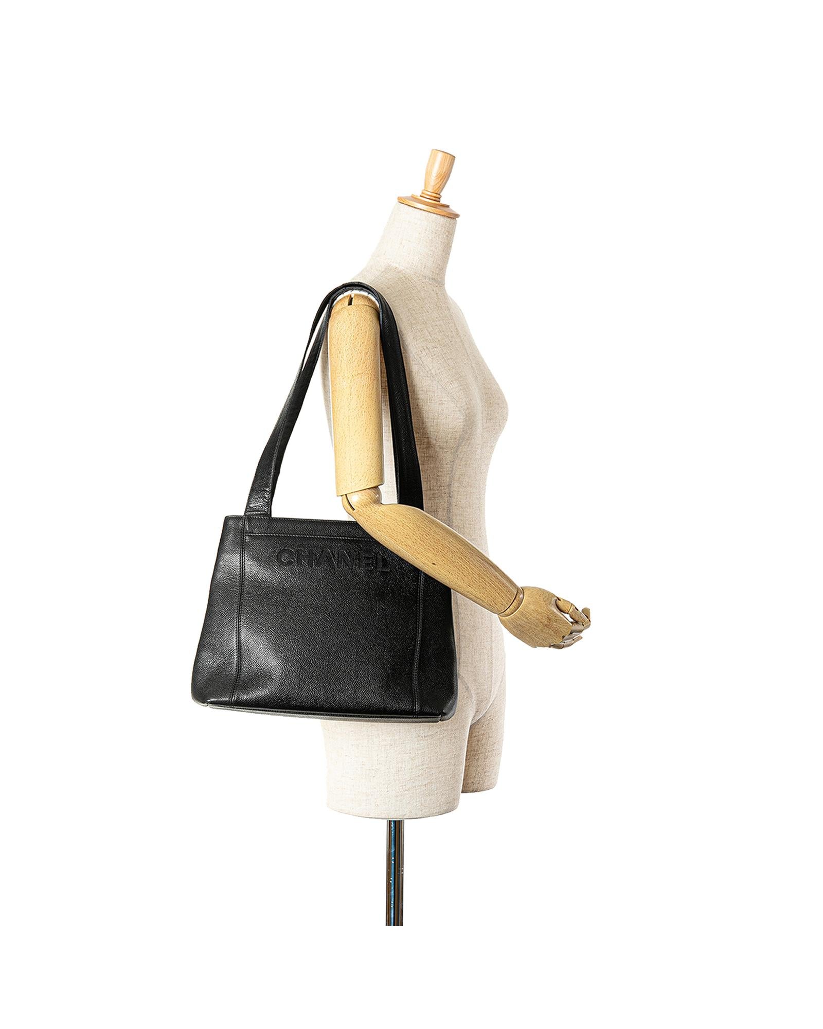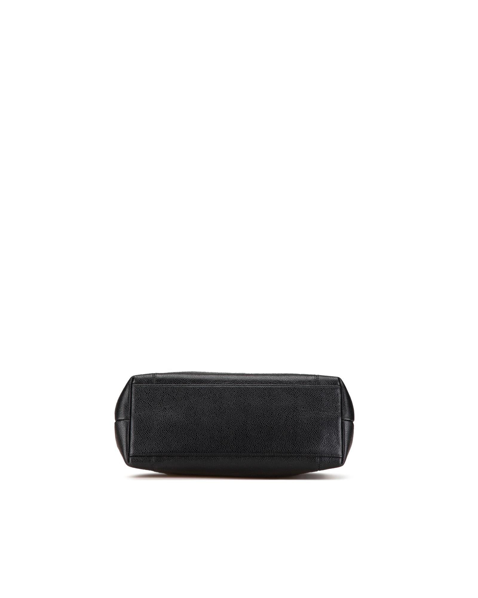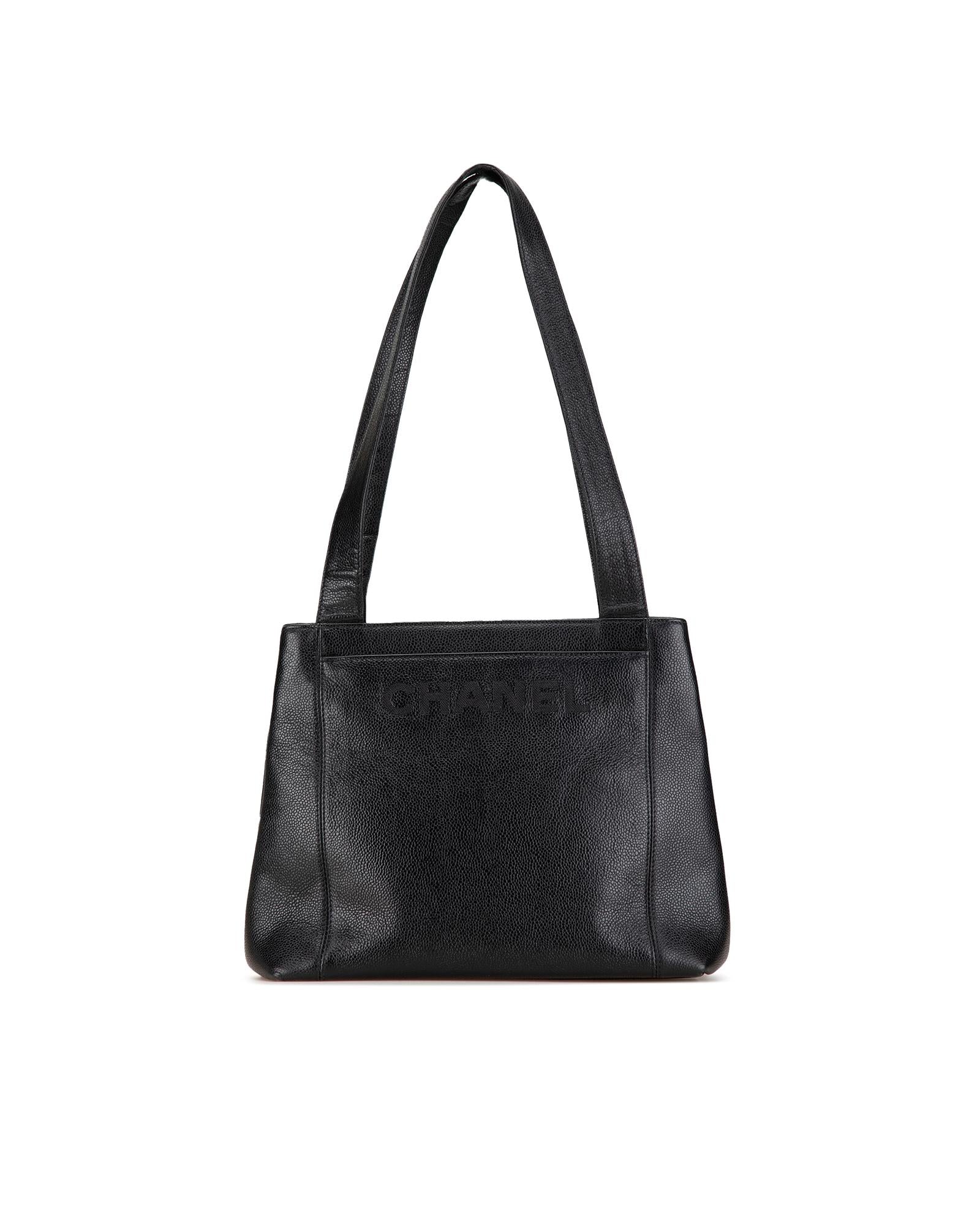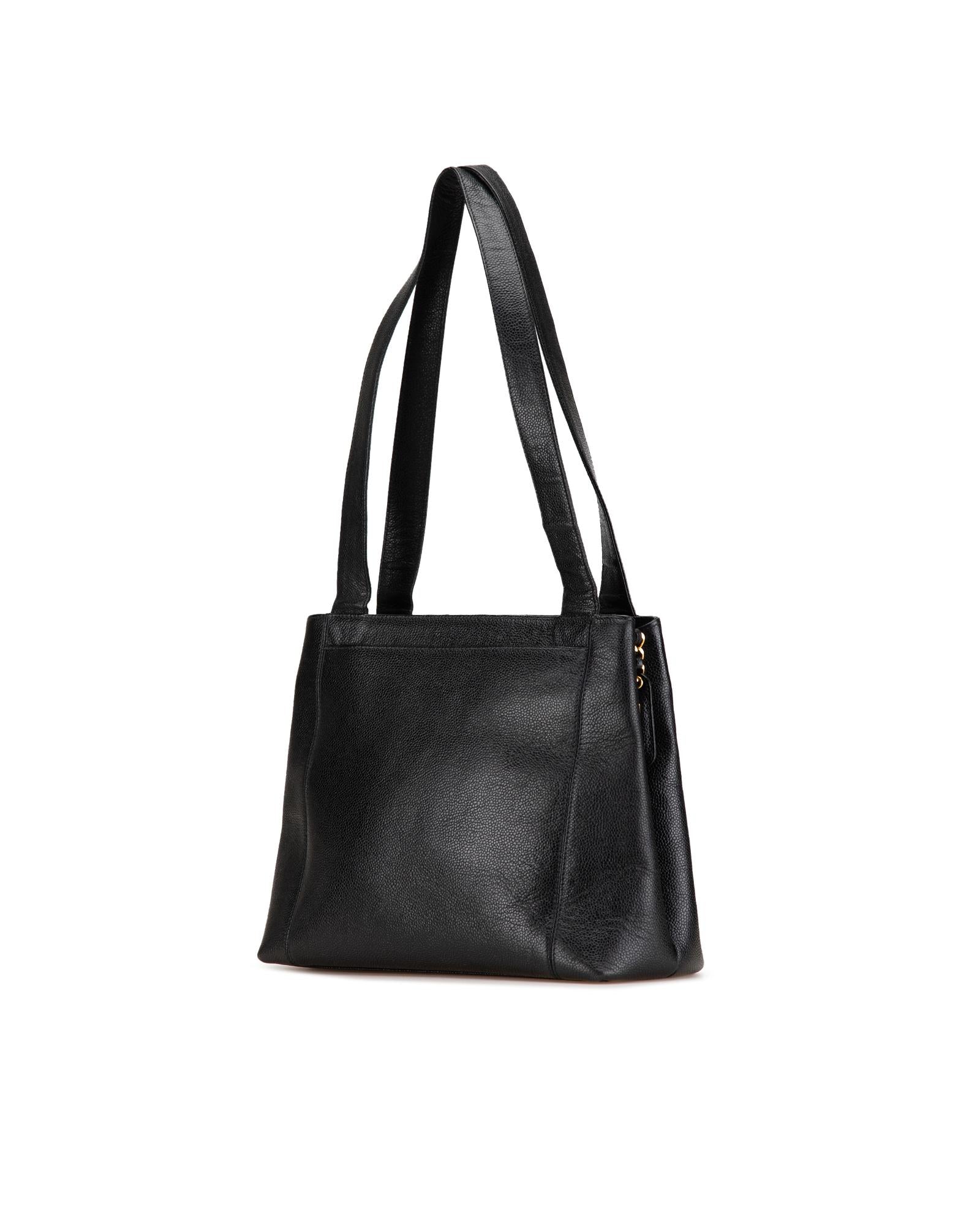 This shoulder bag features a caviar leather body flat leather straps interior zip and slip compartments and interior zip pockets.