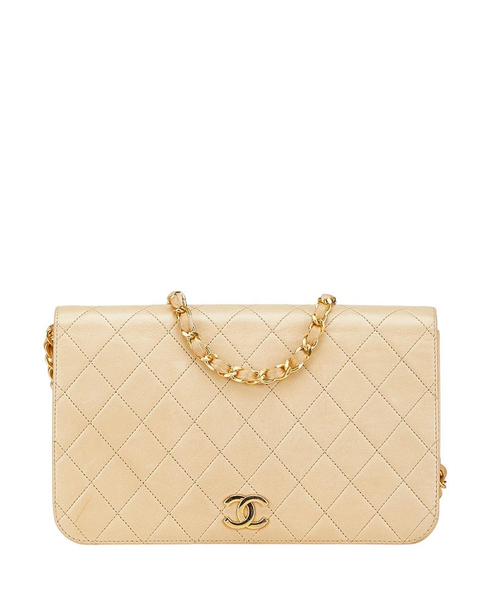 Pre-owned Elegant Quilted Leather Wallet on Chain with Gold-Tone Hardware