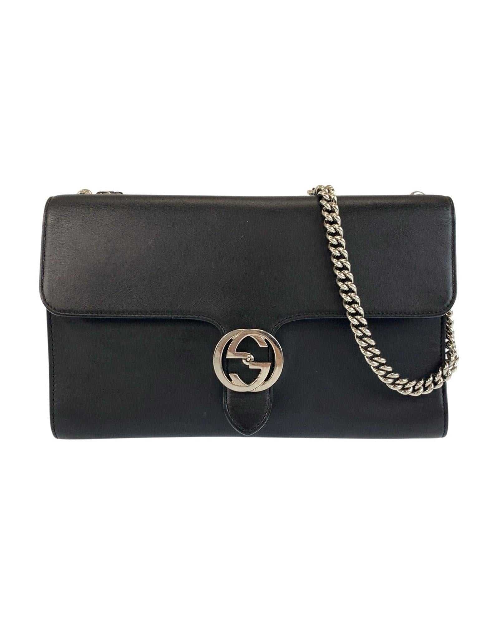 Pre-owned Elegant Leather Shoulder Bag with Chain Strap and Iconic Logo