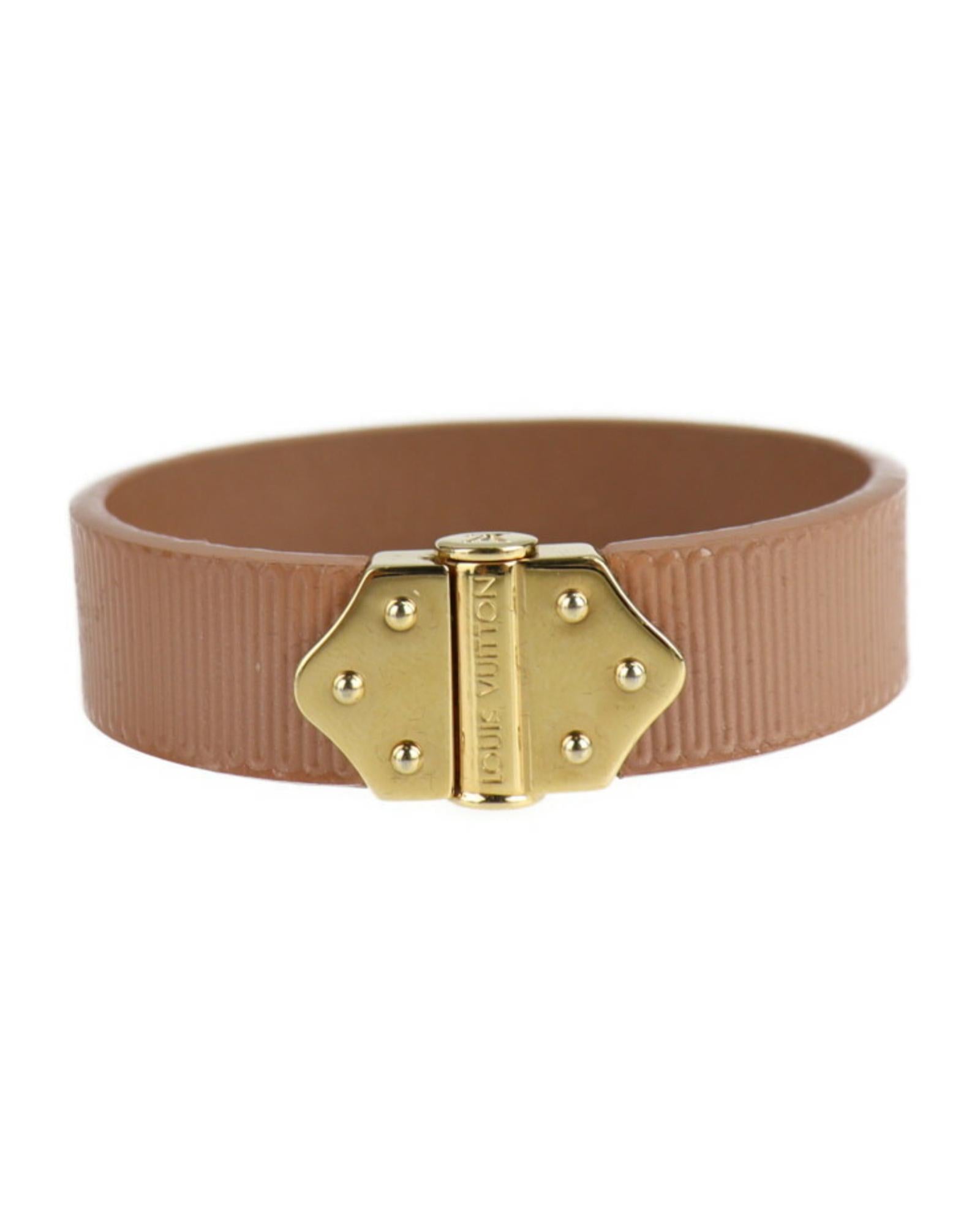 Brand: Louis Vuitton Model: Color: Beige Material: Patent Leather Inclusions: Dust bag Dimensions: Size 17 Length 16.5cm / Width 1.4cm / Total Length 17cm Serial number: CA1113 Country of origin: France Condition: AB - good condition. The Louis Vuitton brand offers the Spirit model a charm bracelet in beige patent leather designed in a fashionable style to be worn by men women or those who prefer a unisex style. A few scratches are noticeable but overall the item is in very good condition. We recommend that you look at all the photos before making your purchase to ensure that you are satisfied with the condition of the item.