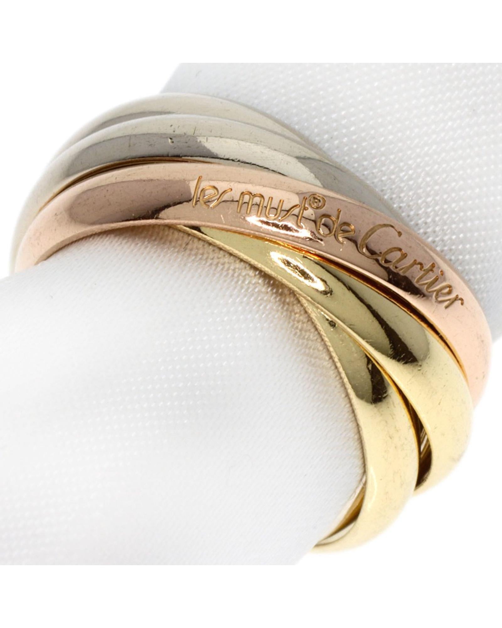 Brand: Cartier Model: Trinity Color: Gold Material: Gold Inclusions: / Dimensions: Size : 48 Material White gold (18K) Yellow gold (18K) Pink Gold (18K) Serial number: N/A Condition: AB - good condition. Let yourself be sublimated by this superb ring "Trinity" of Cartier and feel all its beauty and elegance. Whether as a gift or to wear during your evenings with friends or lovers this ring is perfectly adapted to your needs. The ring is in good condition although it has a slight scratch. We recommend that you look at all the pictures before making your purchase to ensure that you are satisfied with the condition of the bag.