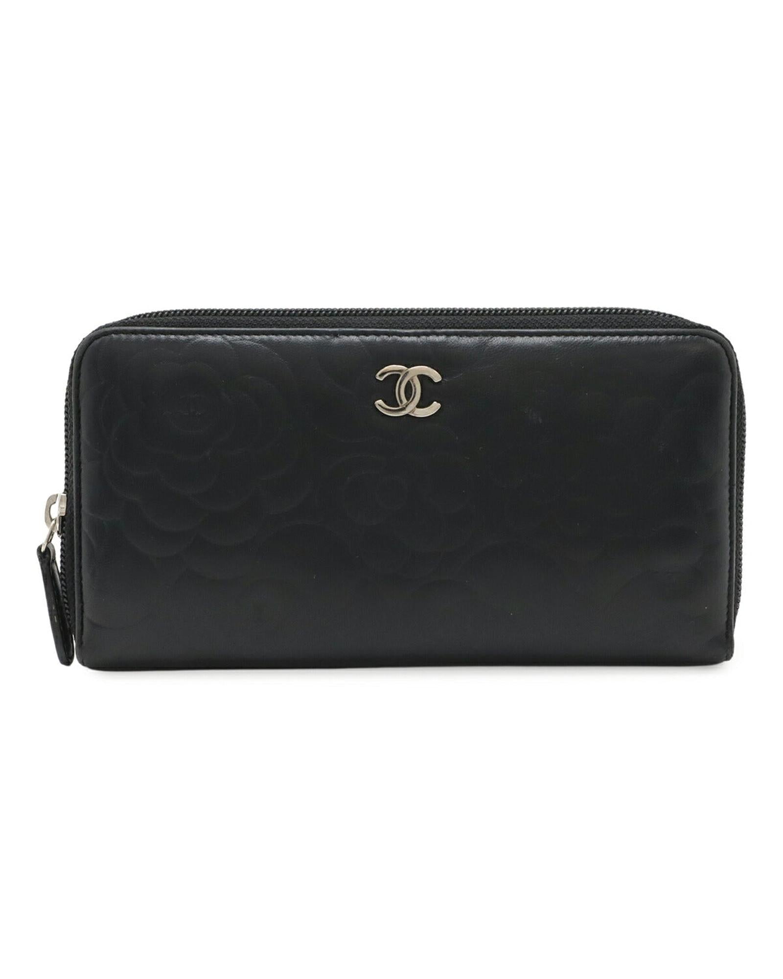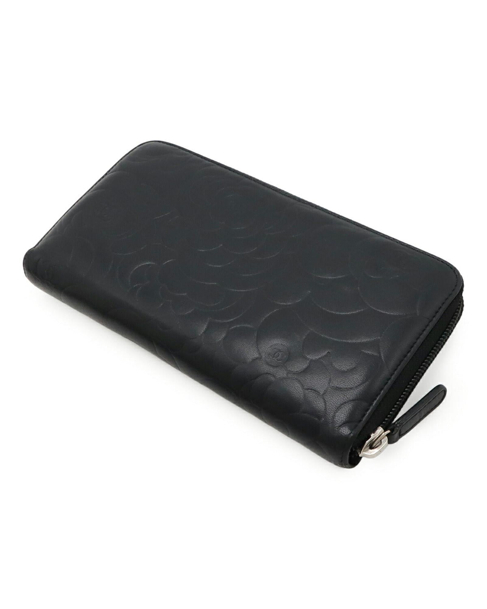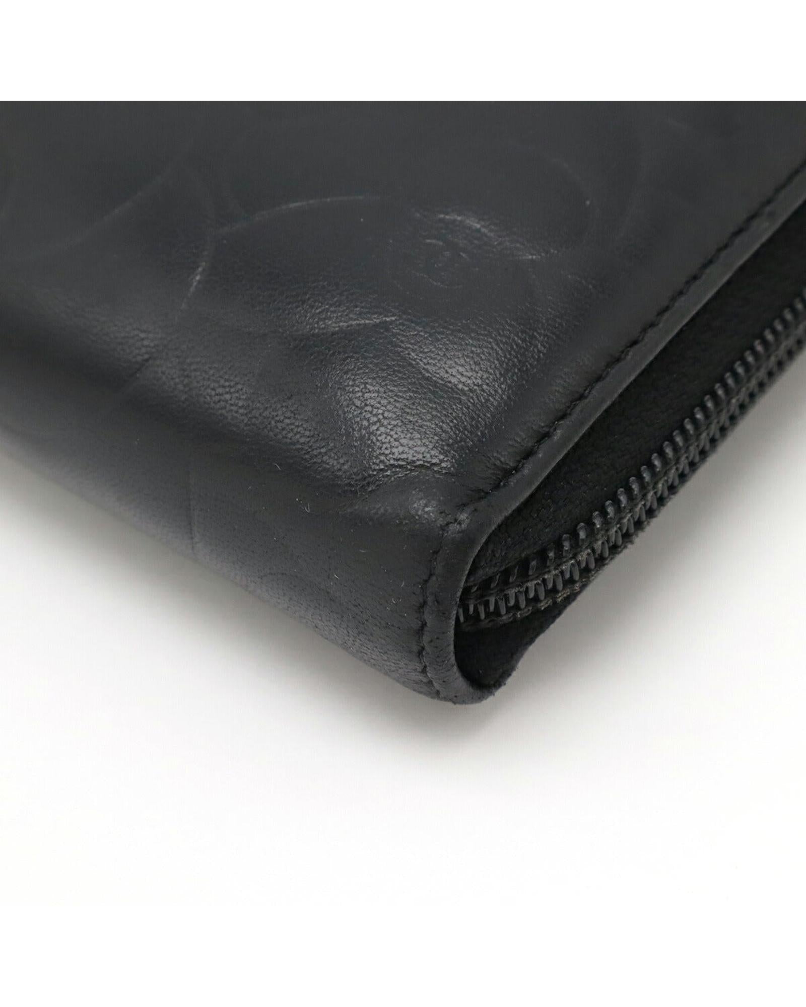 Pre-owned Elegant Continental Zip Around Wallet with Intricate Detailing
