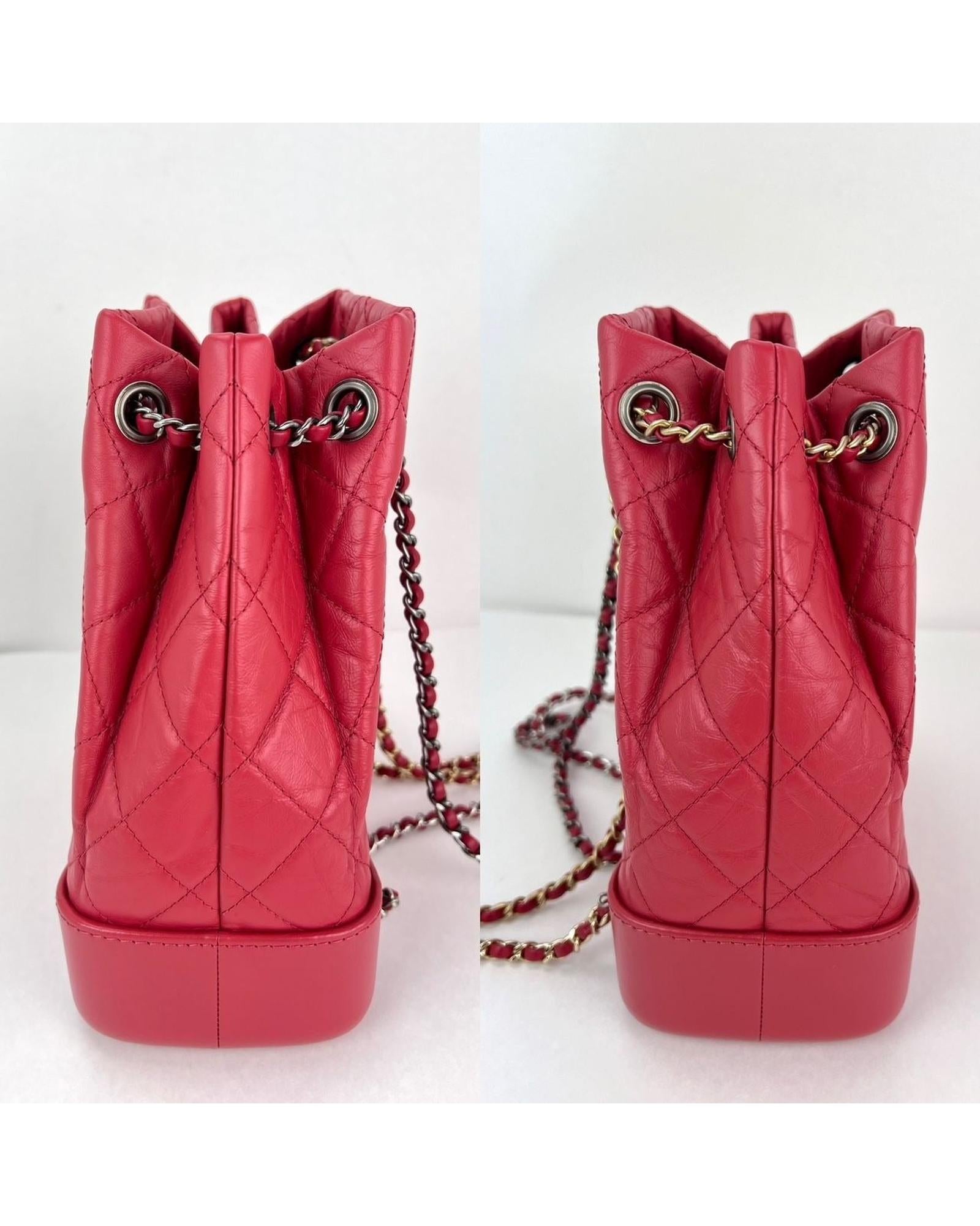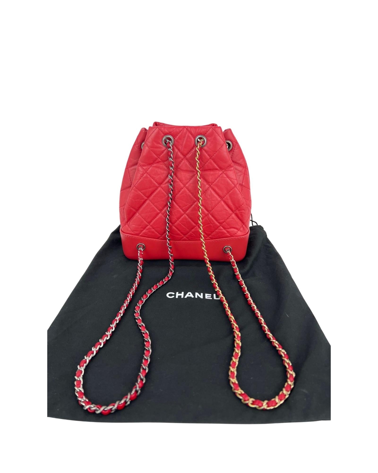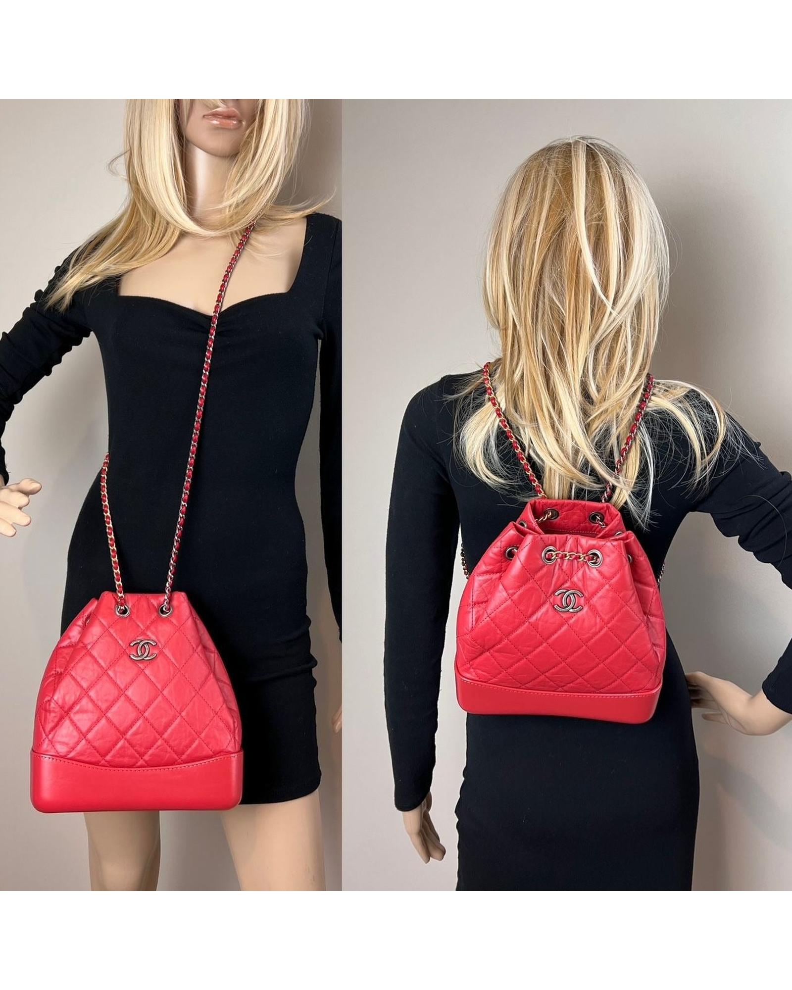 - Owned 100% Authentic Chanel Aged Calfskin Quilted Small Gabrielle Red Backpack