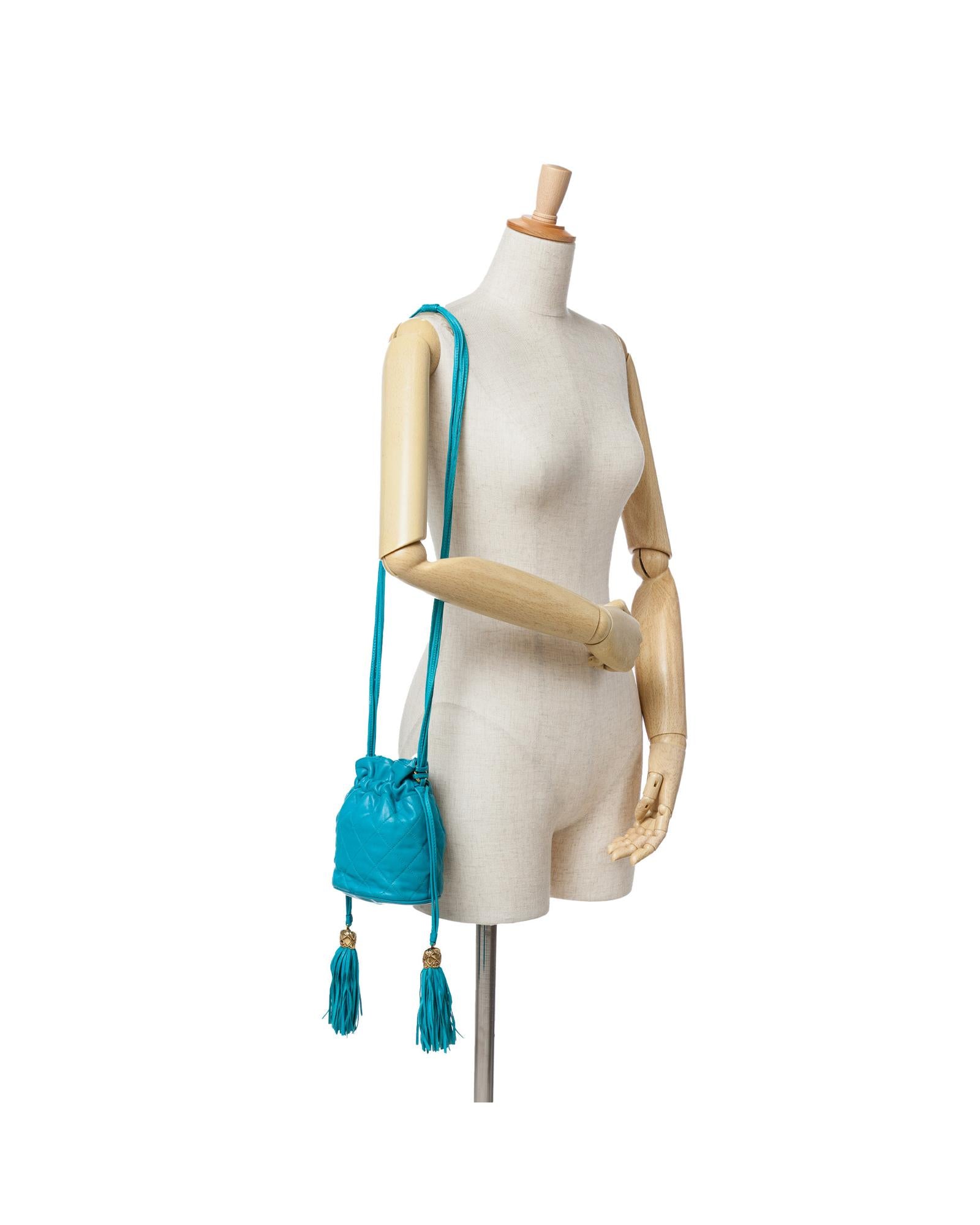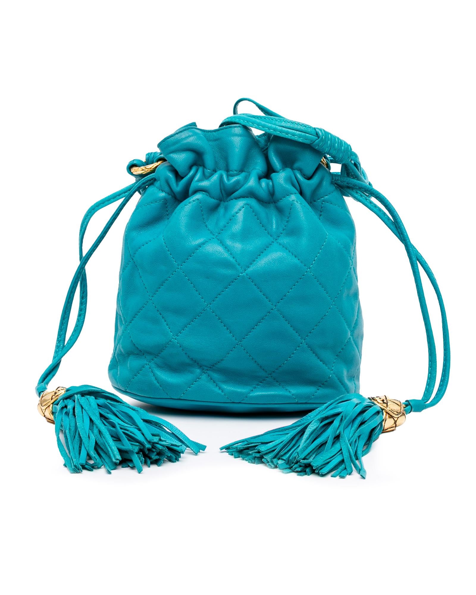 Quilted Lambskin Drawstring Tassel Bucket Bag