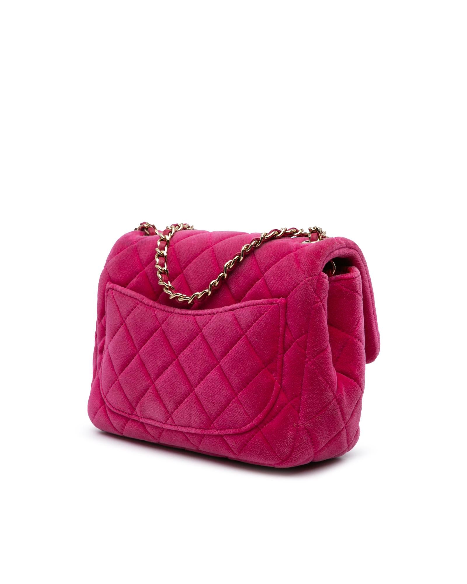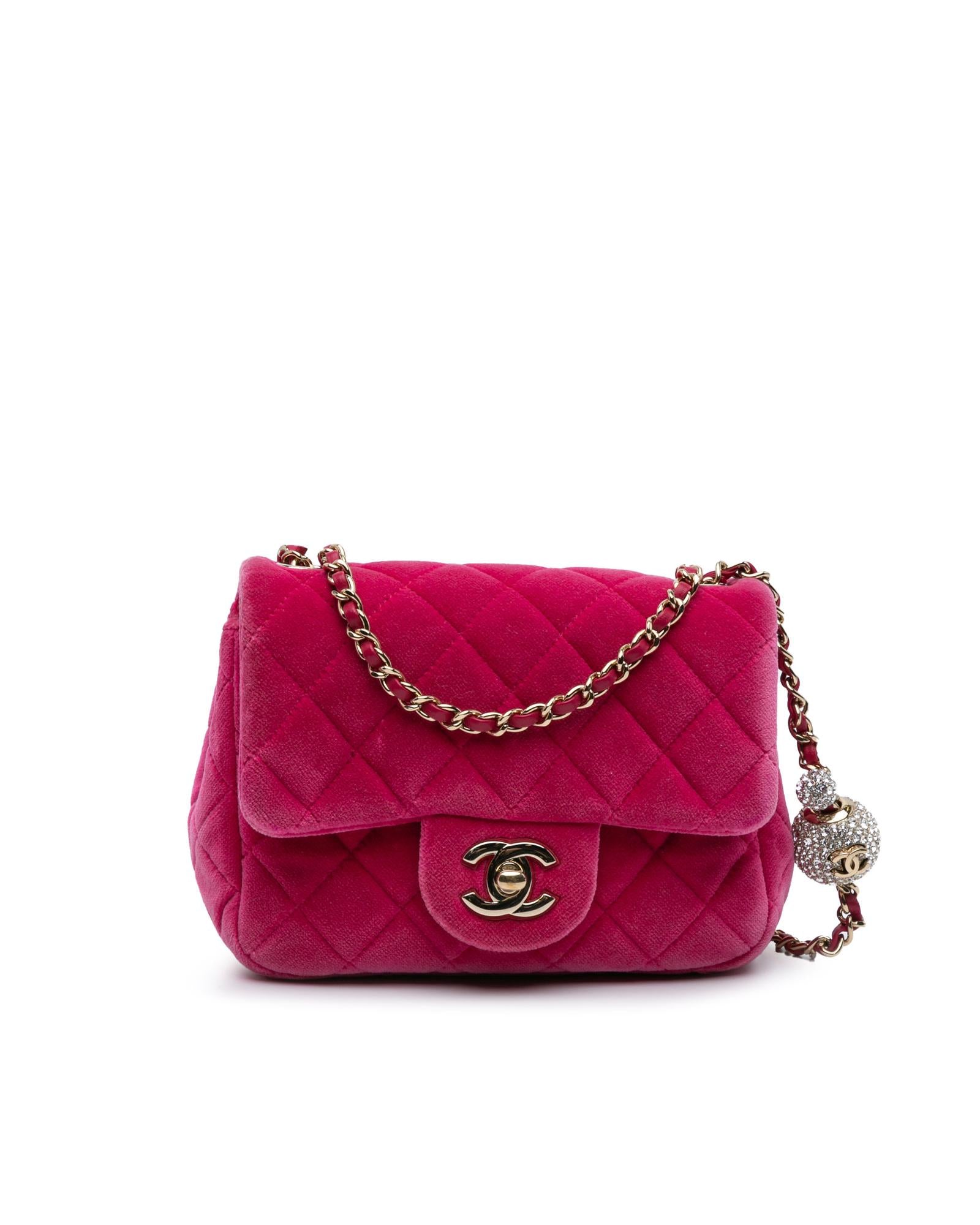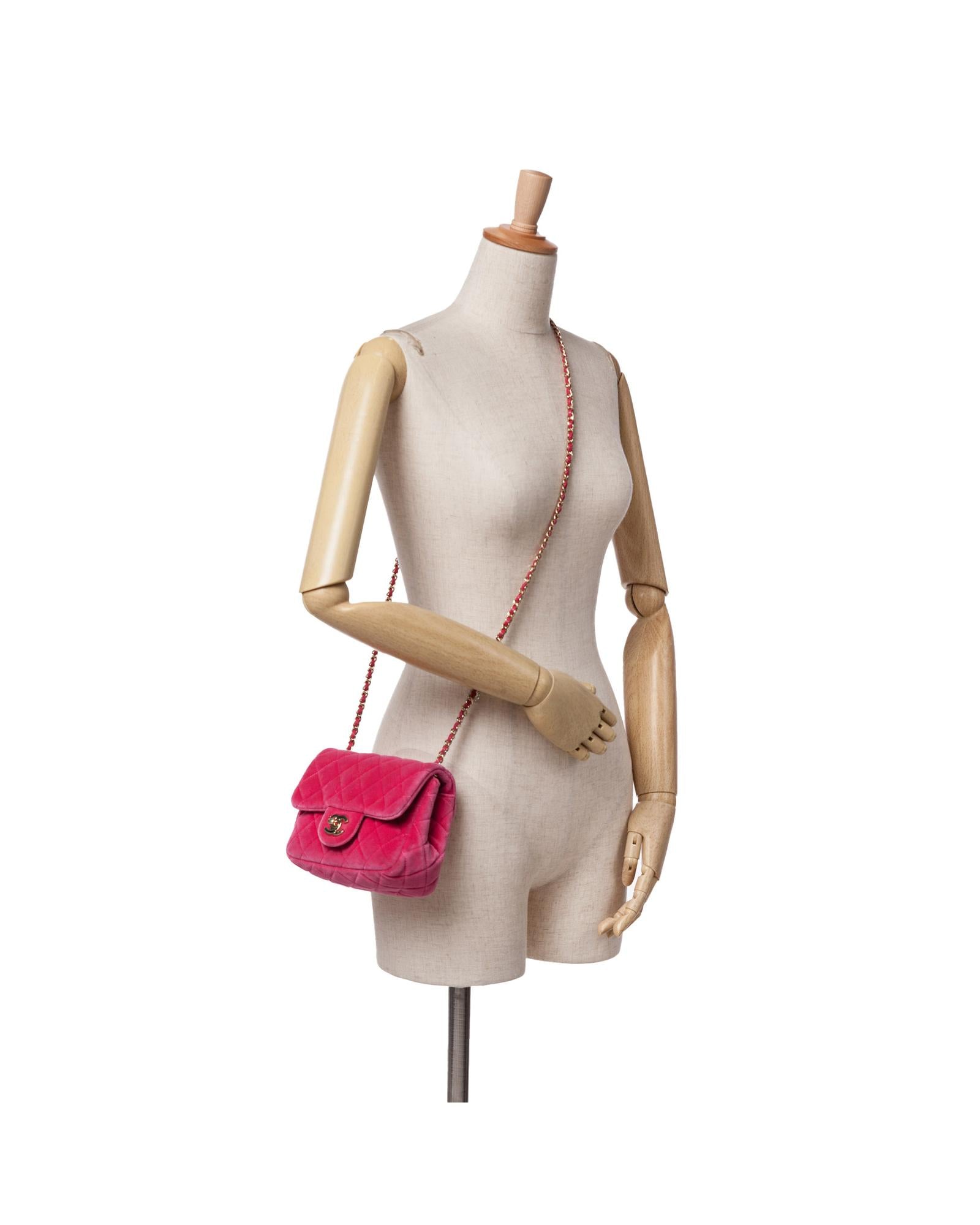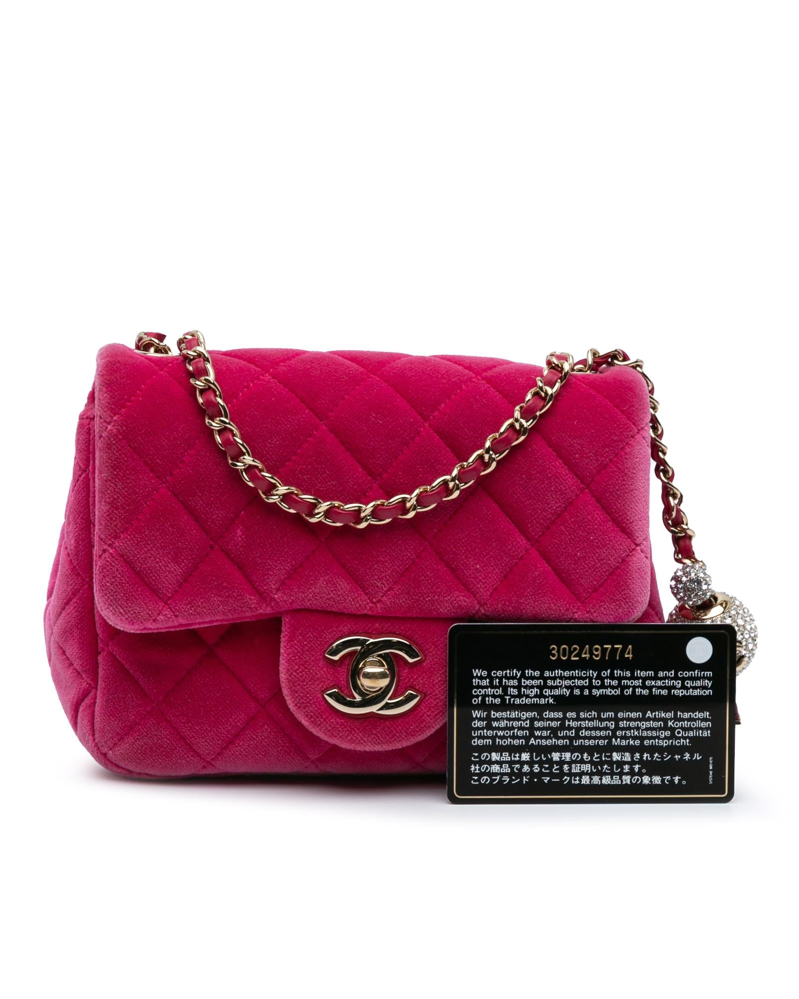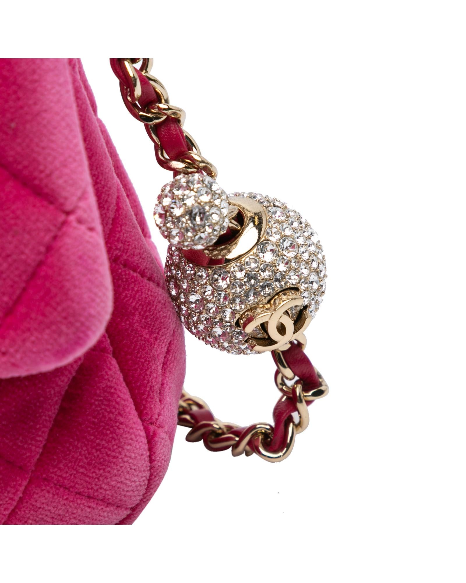 Mini Square Velvet Pearl Crush Flap Quilted Crossbody Bag